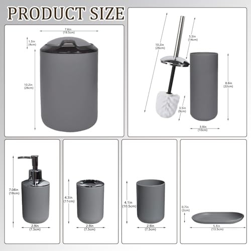 Return Policy Fast Delivery Trusted seller Bathroom Accessories Set 6 Piece Bath Ensemble Includes Soap Dispenser, Toothbrush Holder, Toothbrush Cup, Soap Dish for Decorative Countertop and Housewarming Gift (Light grey-6pcs) Product Description Plastic DURABLE and AMAZING QUALITY: this 6-Piece Bathroom Accessory Set is made of durable plastic that can outlast competing products. It’s also ideal for kids' bath for its durability and not easy to break like ceramic set , not easy to mildew like bamboo set. Our high quality plastic bath accessories will resist to constant use, keeping their look just as elegant and new over time FULLY FUNCTIONAL COMPLETED SET - A completed bathroom accessory set which equips everything you will need to organize your toiletries. Toothbrush holder features 3 - holed openings, 2 small ones allow you to keep your toothbrushes and 1 larger hole to place slim toothpaste, making brushing teeth in one grab PREMIUM QUALITY LIQUID SOAP DISPENSER PUMP – We know how frustrating it can be to use a flimsy pump that leaks or just does not work. No matter how your bathroom set looks like, a bad pump can ruin the experience. That’s why we included a hard plastic pump for the liquid soap dispenser in this set ELEGANT DESIGN: take your bathroom decor to stylish new heights with this bathroom accessories set, very stunning and a great touch of extra elegance to the bathrooms, perfect for giving as a gift for housewarming or a wedding Product description Elegant Design , Set Includes :1 Soap Dispenser, 1 Toothbrush Holder, 1 Toothbrush Cup, 1 Soap Dish, 1 Toilet Brush Holder,1 Trash Can Shipping Returns Payment Shipping Shipping is FREE to all addresses other than APO/PO boxes in the lower 48 states. All our stock ships from US-based warehouses. Shipped via USPS or UPS (depending on location and package weight) Unless stated otherwise, all orders will ship within 24-72 hours of your payment being processed. Check our feedback to see the great reviews of FAST shipping we offer. Returns Seller does not accept returns Payment We currently accept payment via eBay managed payments only. Once payment is cleared, we will dispatch your shipment within 1-3 business days. Please refer to the "Shipping" tab for more information regarding shipping speed to your destination.