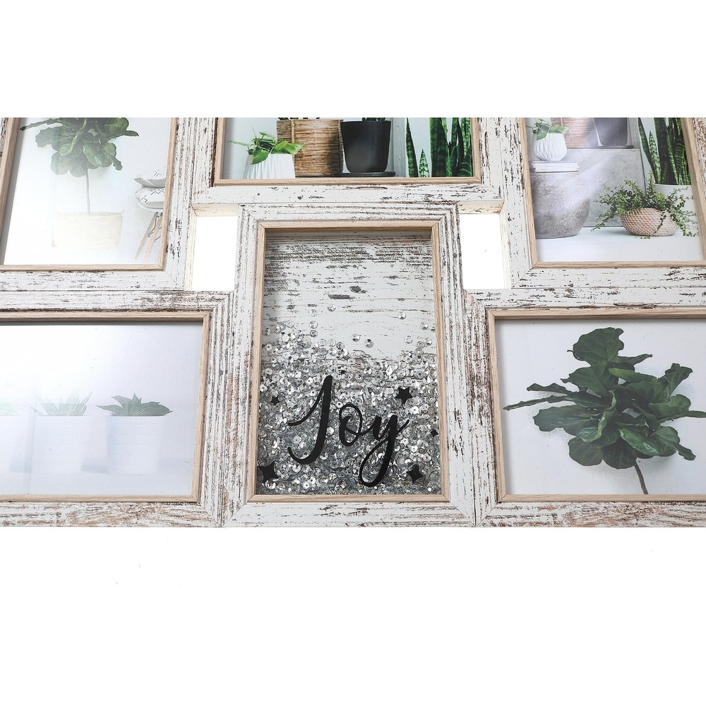 Reminiscent of the beautiful time spent together, this family frame will make everything more special. Add the best pictures of your friends and family members in this sturdy black collage frame. It has five unique frames with sequins and a JOY frame attached for a wholesome look. It has five assorted openings - 5 × 7 (1), 4 × 6 (2), 4 x 4 (2). This frame is also suitable for gifting purposes, especially on anniversaries and marriages. It comes in a single piece.Design: Five opening frames with a JOY messageMaterial: High-quality woodDimensions: 18.1 L × 11.4 W × 0.6 HUse: Indoor decoration and gifting purposesCare Tip: Wipe with a cleaning spray and dry cloth Free Shipping Over $49.99* Details Mdf Collage Frame With Sequin (6 - 4X6) Product Description: Reminiscent of the beautiful time spent together, this family frame will make everything more special. Add the best pictures of your friends and family members in this sturdy black collage frame. It has five unique frames with sequins and a JOY frame attached for a wholesome look. It has five assorted openings - 5 × 7 (1), 4 × 6 (2), 4 x 4 (2). This frame is also suitable for gifting purposes, especially on anniversaries and marriages. It comes in a single piece.DesignFive opening frames with a JOY messageMaterialHigh-quality woodDimensions18.1 L × 11.4 W × 0.6 HUseIndoor decoration and gifting purposesCare TipWipe with a cleaning spray and dry cloth