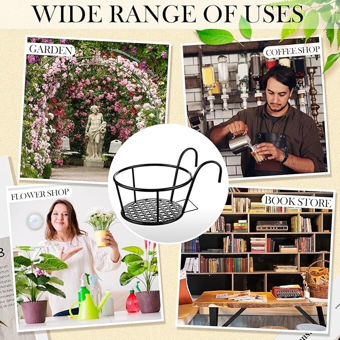 Enough to use and share: You will receive 6 pieces of balcony flower pot railing pendants, designed with double hooks, you can put your favorite plants on them and hang them on the railings indoors and outdoors, the quantity is enough to meet your daily use and replacement needs. Sturdy and stable: Our orchid hanging flower pots are made of high-quality iron material, which is strong and firm enough to resist breakage, deformation and fracture, and the surface is painted black to avoid rust, which can serve you for a long time. Classic appearance: These balcony railing flower pots are in classic black, suitable for a variety of styles, can display indoor plants well, and will not take up too much space, practical and decorative. Wide application: Our plant pot racks can be used to decorate your balcony, garden, courtyard, lawn, fence, home, deck, porch railing, bedroom, living room, office, coffee shop, flower shop, bookstore, etc., suitable for indoor and outdoor decoration.