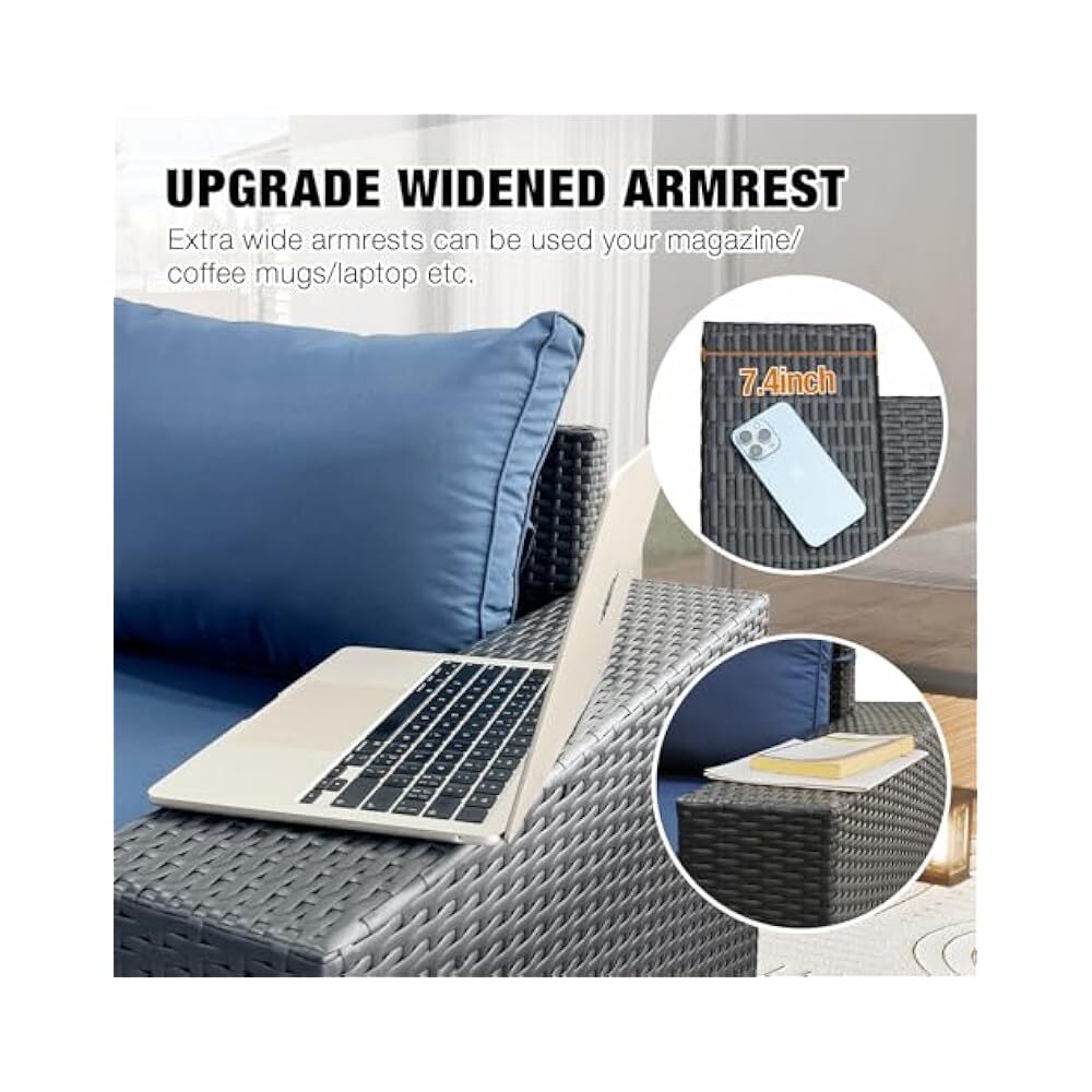 $ 194.45All-Weather Wicker 5-Piece Patio Sectional Sofa Set with Navy Cushions