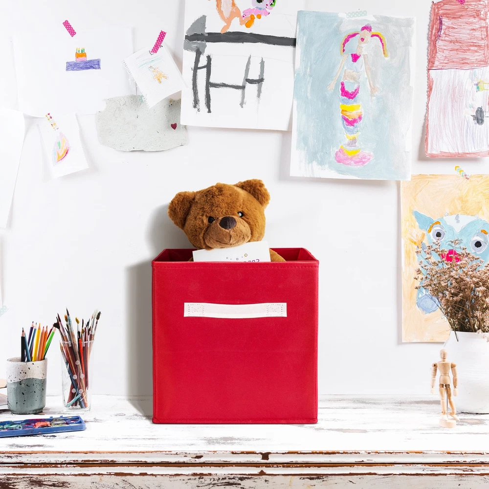 Rainbow Square Storage Cubes come in a set of 6 (10.5x10.5x11 inch). They Will Add A Pop Of Color To Any Room, While Complimenting Your Rainbow Room Decor. Use These Foldable Storage Bins For Organizing Your Life While Brightening Your Nursery, Kids Room, Playroom, Bathroom Closet Or Classroom. Great For Organizing Toys, Stuffed Animals, Baby Supplies, Diapers, Bibs Or Clothes. About Us: We Developed This Colorful Product With The Goal Of Adding Cheer To Any Environment. We Are A Small, Family Run Business Who Has A Passion To Introduce Fun, High Quality Products That Will Pass On A Little Joy To Yours In A Simple, But Powerful Way! Rainbow Decor Cube Storage Bin Set For Organizing Toys, Clothes, Books, Blankets, Towels Or Magazines. With An Open Top For Easy Access, Slide The Cube Basket Onto Any Shelf To Store Craft Supplies And Gift Wrap Essentials. Organizer Bins Will Improve Any Closet Or Cubbie Storage. These Foldable Cube Storage Organizer Brighten Any Classroom, Playroom, Nursery Or Kids Room. The Primary Color Fabric Storage Cubes Are A Perfect Fit For Your Six Cube Storage Organizer. Colors Include Red, Yellow, Orange, Green, Blue, And Purple. Made With High Quality Materials, These Fun Closet Organizers And Storage For Clothes, Household Items, Sports Equipment And Toys Keep Things Out Of Site But Within Easy Reach! Collapsible Storage Bins With Bright White Handles Store Away Nicely When Not Needed. These Folding Bins Are Convenient And Functional Addition To Any Bookshelf.