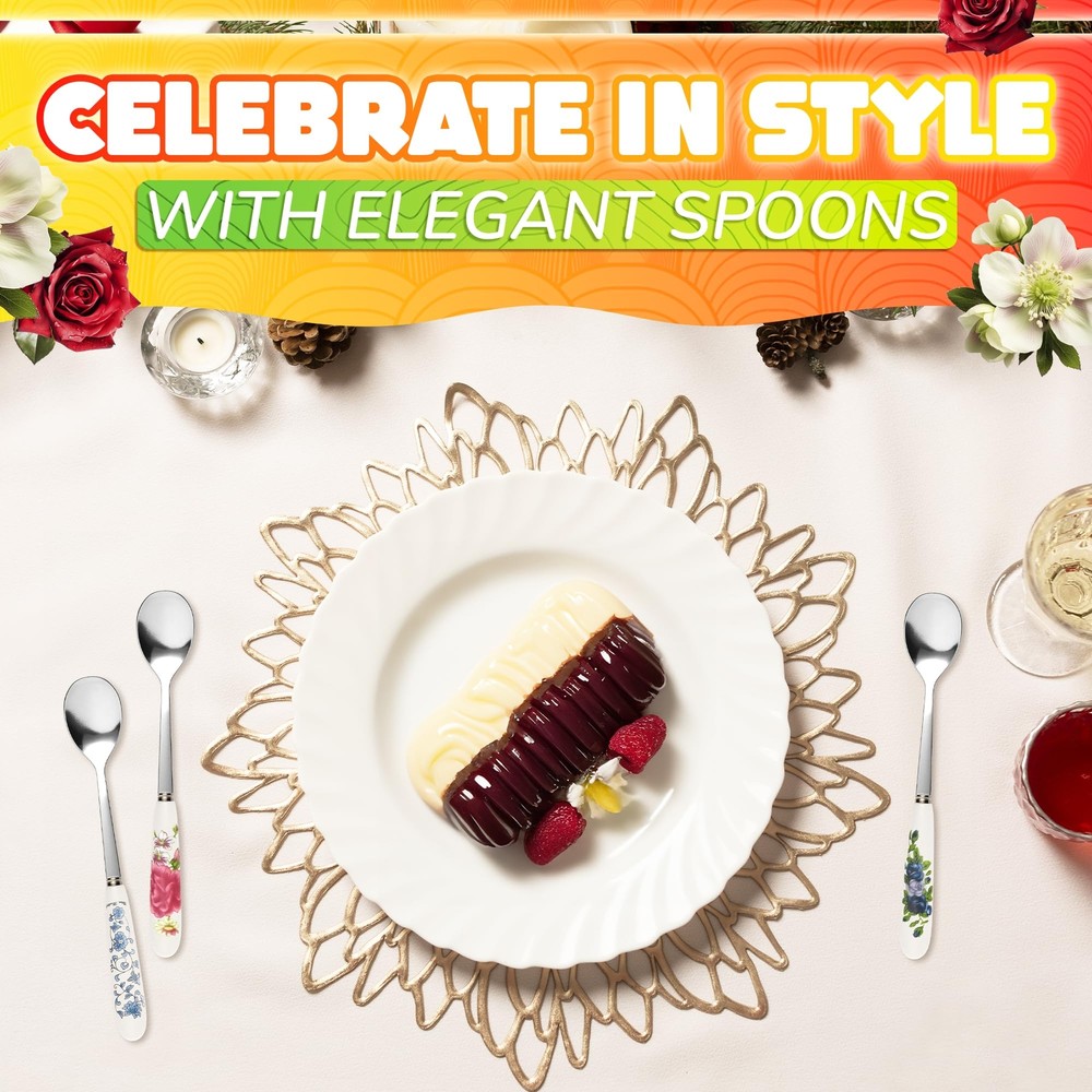 6 Pcs Coffee Spoons Stainless Steel - Tea Spoons for Tea Party Set Small Spoons 🌸Exceptional Durability: Crafted from top-grade stainless steel and ceramic, this small teaspoons set of 6 resists corrosion and wear, ensuring long-lasting durability and style for any occasion 🌸Timeless Design and Elegance: Our cute coffee spoons set features elegant floral artwork on ceramic handles with a mirror-like polished finish, adding a sophisticated touch to any setting 🌸Easy to Clean: These tiny spoons for dessert are dishwasher-safe for effortless cleaning. The ceramic handles wipe clean easily. For best results, hand wash the handles to preserve their designs 🌸Versatile Use of Small Tea Spoons: Perfect for tea, coffee, desserts like puddings, ice creams, etc. Their elegant design and ideal size make them a versatile addition to any cutlery collection 🌸Perfect Gift Our Cute Spoon: Ideal for housewarmings, Thanksgiving, or any occasion. These decorative spoons have a timeless design, making them a thoughtful and cherished gift for years to come Shipping We offer FREE shipping on all orders! We ship within Three business days of payment, usually sooner. We use a selection of shipping services such as UPS, FedEx, USPS etc. We only ship to the lower 48 states, no APO/FPO addresses or PO Boxes allowed. Local pickups and combined shipping options are not provided at this time. Return You can return a product for up to 30 days from the date you purchased it. Any product you return must be in the same condition you received it and in the original packaging. Please keep the receipt. Payment We accept payment by any of the following methods: PayPal Please pay as soon as possible after winning an auction, as that will allow us to post your item to you sooner! Feedback Customer satisfaction is very important to us. If you have any problem with your order, please contact us and we will do our best to make you satisfied. Contact Us If you have any queries, please contact us via ebay. We usually respond within 24 hours on weekdays. Please visit our eBay store to check out other items for sale! Thank you for shopping at our store.