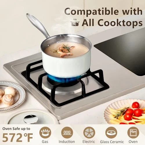 Return Policy Fast Delivery Trusted seller Tri-Ply Stainless Steel Sauce Pan Set with Lids 6PC, 1.5QT & 2.5QT & 3QT, Induction, PFOA Free, Dishwasher Safe,Sauce Pot, Cooking Pot, Tri-Ply Full Body Product Description High-quality Materials: It is a tri-ply full-body stainless steel saucepan with no PFAs, ensuring strength and durability. Layer 1 is 304 food-grade stainless steel for safe and healthy cooking. Layer 2 is an aluminum layer for even and quick heating. Layer 3 is 430 stainless steel for performance on all cooktops. Additionally, t is an outer layer of white high-temperature paint to protect the stainless steel from discoloration due to high heat, making it easy to clean. Thoughtful Design: The 6-piece saucepan set, which includes 1.5QT, 2.5QT, and 3QT suacepans and 3 glass lids, is perfect for everything from sauces to soups, making it an essential addition to any kitchen. With a satin polished interior and a stylish white painted exterior, these pots are not only functional but also serve as a decorative element in your kitchen. Healthy Cooking: Made from food-grade stainless steel that is free from PFAS, PFOA, and PTFE, this saucepan features non-coated materials and a satin finish, ensuring easy cleaning while remaining SGS approved for safe and healthy cooking. The high-quality stainless steel not only s food safety but is also resistant to rust, making it a durable choice for everyday use in the kitchen. Induction Ready: Our stainless steel saucepan set is compatible with a variety of cooktops, including gas, electric, induction, ceramic, and glass. They are oven safe up to 572°F, offering versatility for a wide range of cooking methods. Dishwasher safe. 100% SATISFACTION GUARANTEED: Our scanpans are of exceptional quality, rigorously tested. We also offer 24/7 online customer service to answer any questions you may have, ensuring a worry-free shopping experience. Shipping Returns Payment Shipping Shipping is FREE to all addresses other than APO/PO boxes in the lower 48 states. All our stock ships from US-based warehouses. Shipped via USPS or UPS (depending on location and package weight) Unless stated otherwise, all orders will ship within 24-72 hours of your payment being processed. Check our feedback to see the great reviews of FAST shipping we offer. Returns Seller does not accept returns Payment We currently accept payment via eBay managed payments only. Once payment is cleared, we will dispatch your shipment within 1-3 business days. Please refer to the "Shipping" tab for more information regarding shipping speed to your destination.