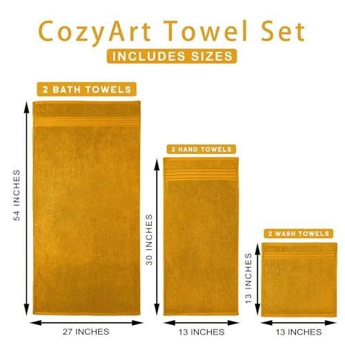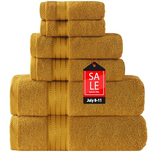 Return Policy Fast Delivery Trusted seller Gold Bath Towel Set 6pcs, Turkish Cotton Bathroom Towel Sets Soft Absorbent and Durable 650 GSM Luxury 6 Pcs with 2 Bath Towels, 2 Hand Towels, 2 Washcloth Product Description EXTREME DURABLE & EXCELLENT QUALITY: This towel sets are made of 100% Turkish cotton, woven to 650GSM, so it is ultra-soft and durable. It comes with a double stitch hem for enhanced durability & strength. Please Enjoy the ultra-soft plush, fluffy premium bath towels. The Hotel & Spa quality hand towels for bathroom decor sets accessories to provide the home a luxurious & elegant bathing design. REMARKABLE ABSORBENCY & QUICKLY DRY: With zero-twist construction --a sophisticated spinning process, our towels set quickly dry, dry 20-29% faster compared to a conventional towel which makes the bath towel set ultra-absorbent! They are perfect bath clothes for adults, kids, and even toddlers and babies who enjoy huge, soft embraces. MULTI-USAGE & CARRY CONVENIENTLY: You can use these towels for bath as beach bathroom decor, bathroom decor sets accessories, etc. in your bathroom, hotel & spa, kitchen, gym, and anyw you need. MACHINE WASHABLE & CARE NOTICE: Bathroom towel set is easy to care for, quick-dry & machine washable for everyday use. It is normal that a slight color fade or small fluff, so please clean it for the first time and wash the towels separately according to the washing instructions. Note that it is normal for natural materials to shed, and high temperatures and softeners can increase the occurrence of shedding. PACKAGE INCLUDES & COLOR VARIETY: 2 extra-large bath towels (27 inches x 54 inches), 2 Hand Towels (13 inches x 30 inches), 2 Washcloths (13 inches x 13 inches). All the towels are generously extra-large. Shipping Returns Payment Shipping Shipping is FREE to all addresses other than APO/PO boxes in the lower 48 states. All our stock ships from US-based warehouses. Shipped via USPS or UPS (depending on location and package weight) Unless stated otherwise, all orders will ship within 24-72 hours of your payment being processed. Check our feedback to see the great reviews of FAST shipping we offer. Returns Seller does not accept returns Payment We currently accept payment via eBay managed payments only. Once payment is cleared, we will dispatch your shipment within 1-3 business days. Please refer to the "Shipping" tab for more information regarding shipping speed to your destination.