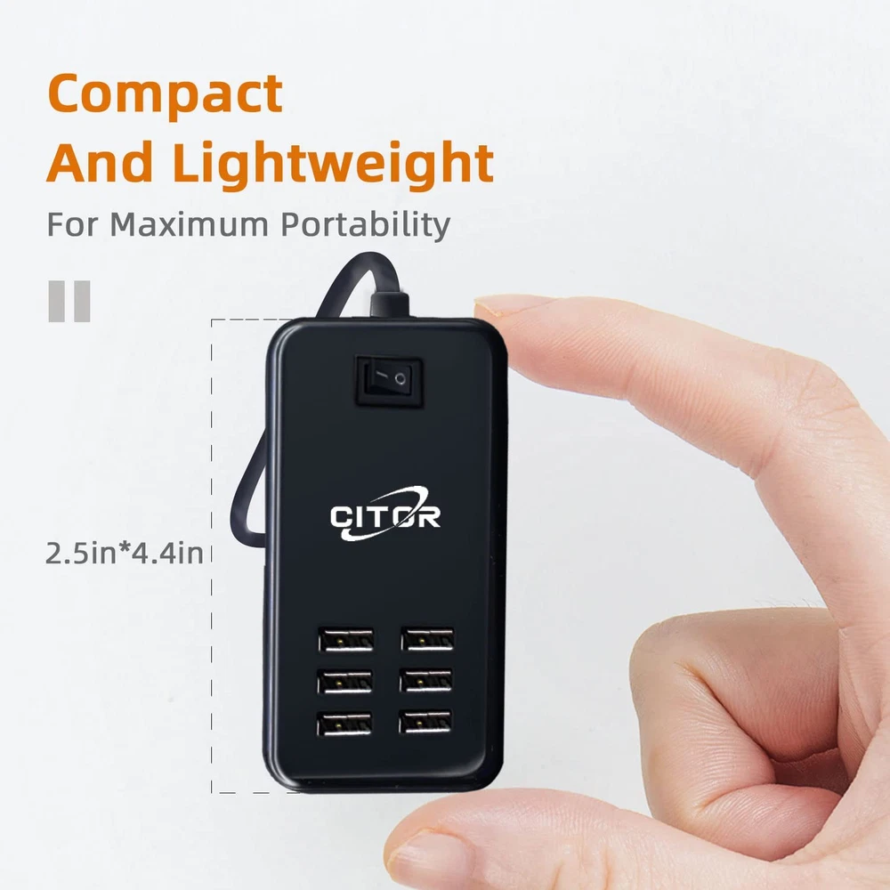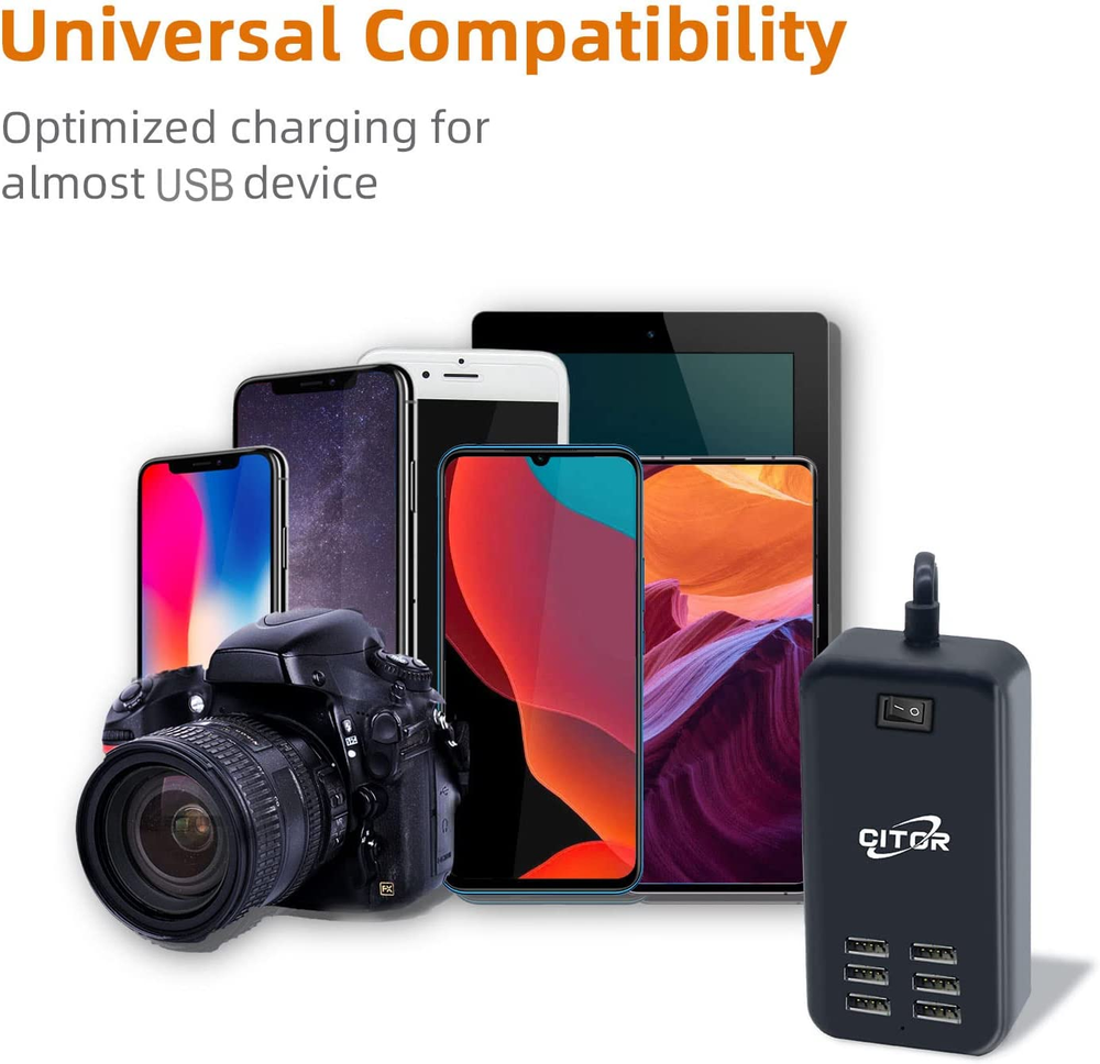 Neighborhood service Multiport USB Charger, 6 Port USB Charging Station for Multiple Devices, Phone, Tablet, Power Strip with On/Off Switch (Black) ENJOY THE FEATURES 6 Ports USB Charger - Multi-Port USB charger hub to charge up to 6 of your devices simultaneously at full speed, outputs up to 2.4 amps for each port ON/OFF Power Switch - There is a switch to control power supply so that you could plug continuously. The 5ft cord made it convenient to use. Multiple Protection - The USB charger hub features surge protection, over-current and over voltage protection, 100% protect your smart devices securely. Compatible with almost USB Devices - USB charging station is compatible with cellphones, tablets, Bluetooth speakers, headsets, cameras, PSP and more. Best Service - 12 Months Worry-free Warranty & dedicated email customer support. Product Description 6 Port USB Input AC 100-240V 50-60Hz Output: DC 5V 6A Dimension 4.4*2.5 in Weight: 7oz Simultaneous and Intelligent Charging With a premium chip, each port of the charging station detects the exact current requirements of a connected device and stably distributes the right amount of current. Just enjoy fast and stable charging at the same time. Space-Saving and Worldwide Travel Design Compact size is easily stored into a bag or suitcase to charge essential electronics on the move. Input voltage AC 100-240V 50/60Hz, suitable for most countries' standard voltage, ideal for international travel. Item model number KK-1 Whats in the box charging station Connectivity technologies Bluetooth,Usb Color black Other display features CE Compatible Devices Cellular Phones แตงčers Item Weight 5.9 ounces Special features Travel Hardware Interface USB Special Feature Travel Package Dimensions 5.98 x 3.98 x 1.46 inches 3.98 inches x 5.98 inches x 1.46 inches. Weight: 5.9 oz PAYMENT We accept all payments via Ebay using Credit Cards , PAYPAL , Apple Pay and many others SHIPPING We are always working hard to ensure your package arrives as soon as possible. Please understand that some factors like weather, high postal traffic, and the performance of shipping companies are outside of our control. We offer free shipping to the lower 48 states and ship within 3-5 business days of payment, usually sooner. We do not accept P.O. Boxes. Please provide a physical address. We do not ship internationally at this time. DELIVERY & RETURN POLICY We do not offer returns unless the item violates eBay policies. Please be aware these polices only make sellers accept returns if the item violates eBay's Buyer Guarantee. If you would like to learn more about this please visit eBay's Help Page. Thank you for your business