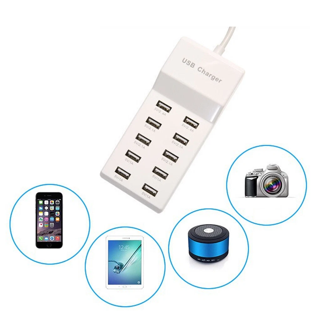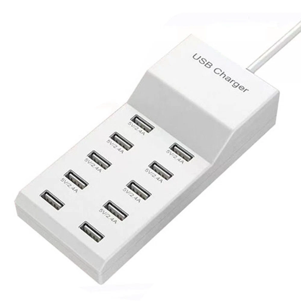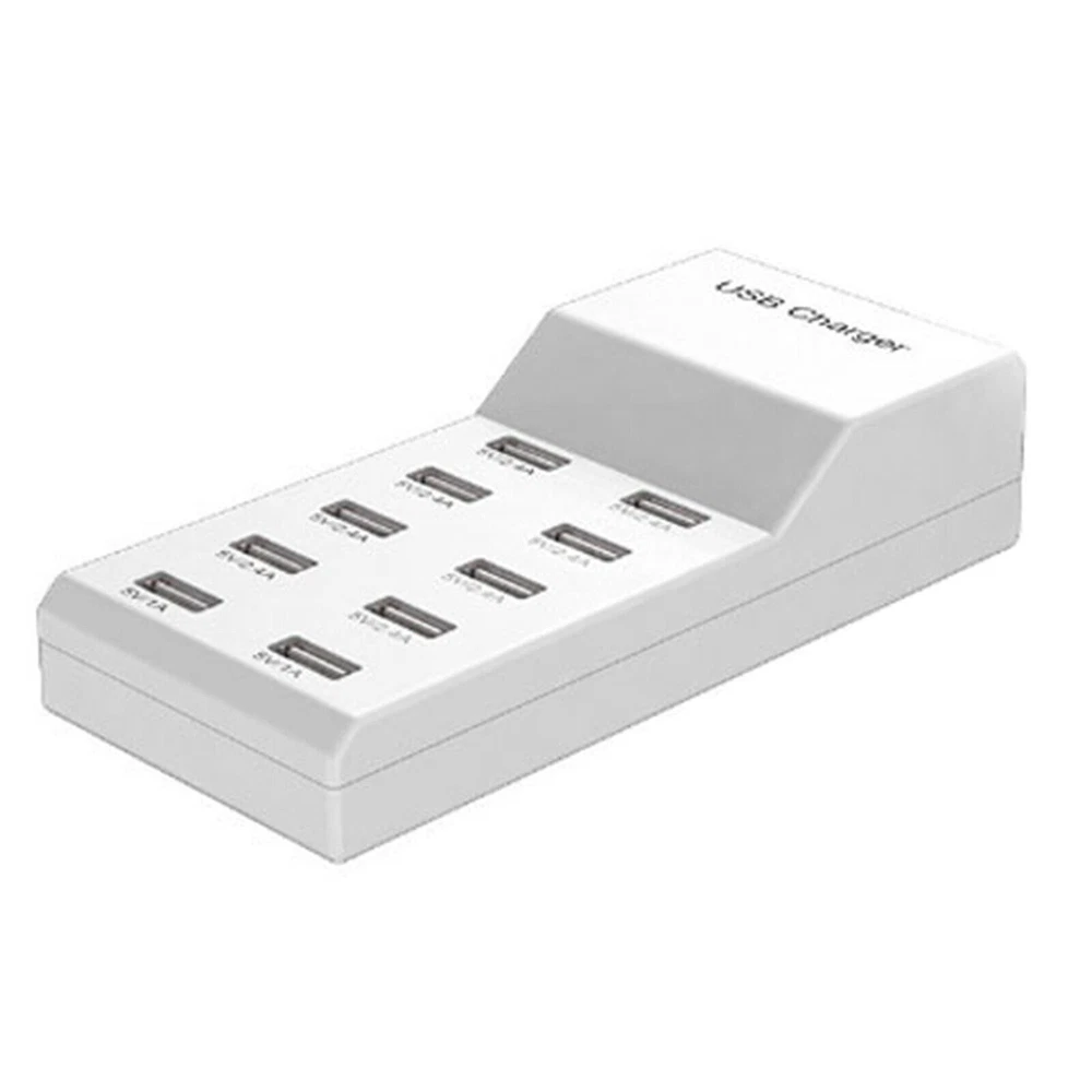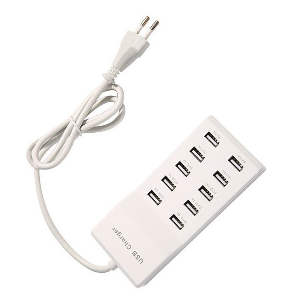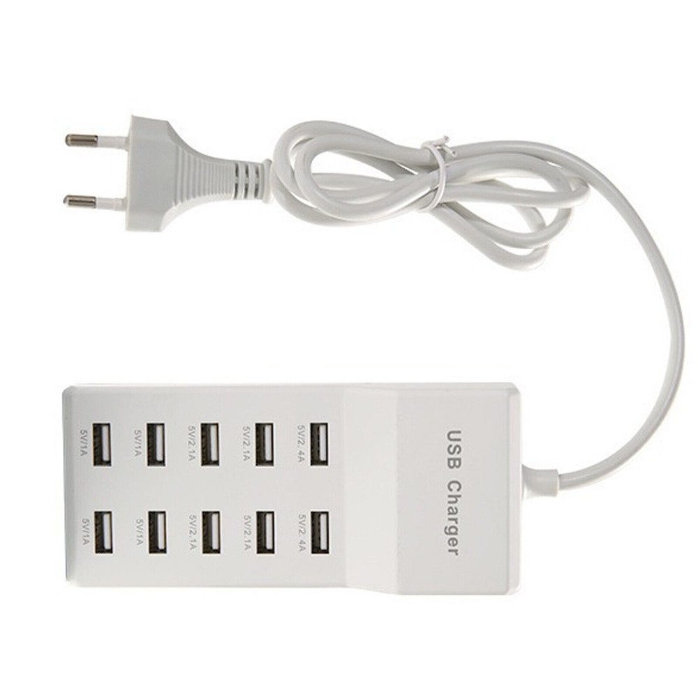 Main Parameters 1. Dc input: 5V AC input: 110-240V 2. Output: 5V 1000mA / 2400mA 3. Power: 5V-50W 4. The white 5. Built-in safety tube 6. Integrated IC control circuit, including overload, over-voltage, over-current, short-circuit protection, over-temperature protection, etc 7. Double USB interface output 8. CE, FCC, certification 9. It is suitable for most mobile phones, tablets, MP3, PDA, Bluetooth headset, PSP, digital camera, navigator, quick charge tablet PC, etc 10. The shell is made of PC+ABS fire-resistant material, environmentally friendly material and surface highlighting treatment. 11. Exquisite design, easy to carry, travel rechargeable plug Product features 1, suitable for all kinds of mobile phones, MP3, MP4, camera, iPod, Iphone series...To produce products such as 2, including timely guard against overload and output short circuit protection measures, so that the product is safer, so that you feel at ease Ii. Product specifications 1. Input voltage: AC100-240V 50/60Hz 2. Output: DC 5V/10A (5-port USB, maximum support for single port 2.4a, it is recommended to use within 8A on A regular basis) 3. Line length: 1.2m 7. Material: fire-retardant ABS+PVC material 8. Color: white Usage 1. Before use, please check whether the charger corresponds to the device parameters. 2. Insert the power cord into AC100-240V. 3. Connect the USB A common pair plug (different plugs for each device) with the adapter to the charger output terminal, and then connect the corresponding plug Electrical equipment (such as mobile phone, MP3, camera, iPod series, etc.) for power supply or charging Package included: 1*10-Port Multi USB Charger