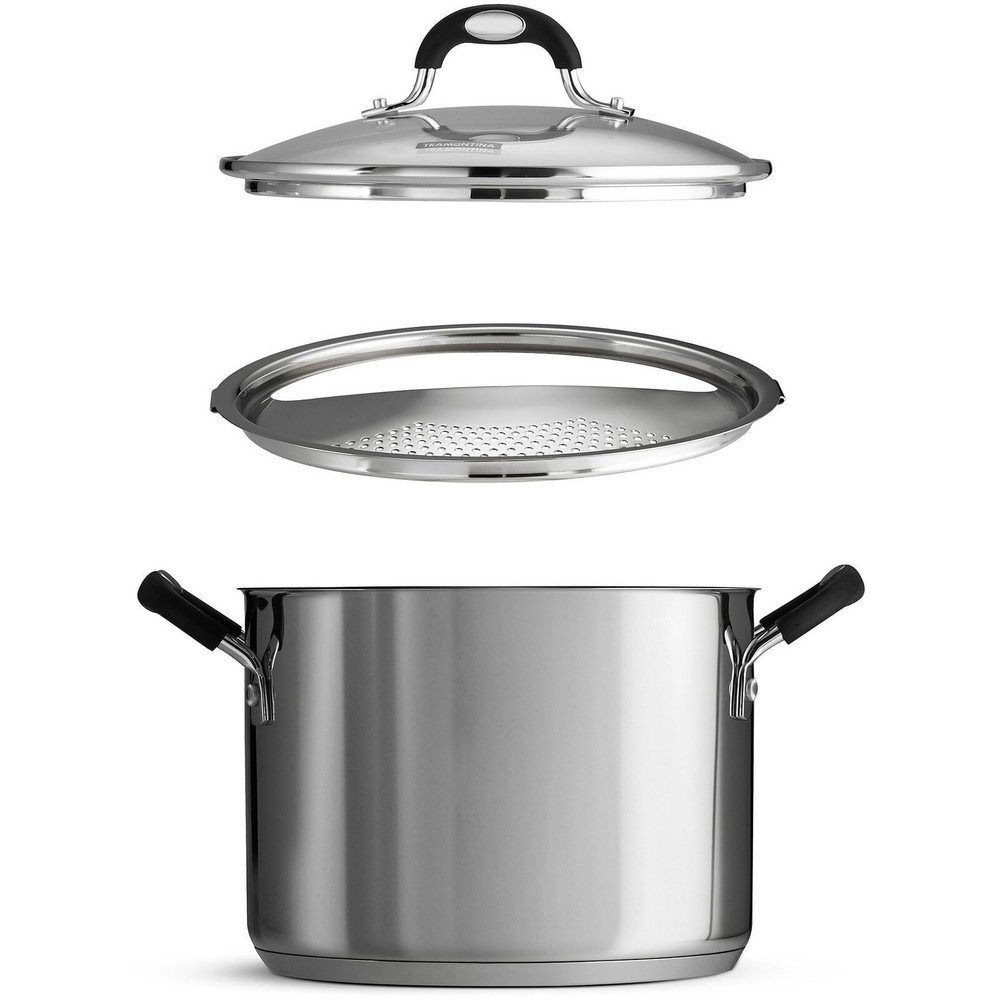 You may also like Nonstick Saucepan Pot W/ Swiss Granite Coating Induction Comptable PFOA Free 39.74 USD 41.83 USD Free shipping 5% off This 3-Piece, 6-Quart Tramontina Stockpot can be used with or without its locking strainer. The pot is made from stainless steel for a stylish look with durability and excellent heat conductivity. The tri-ply base layer produces consistent heating and is ideal for preparing pasta, vegetables, stock, sauces and more. The stainless-steel stockpot comes with a glass lid so you can easily check on your cooking progress. It also has ergonomically designed handles with a soft grip. These are riveted onto the pot for extra strength. The Lock-N-Drain covered stockpot features a stainless-steel strainer that can be locked onto the cooking pot to drain water from pasta or vegetables. It is attractive, versatile and functional, so you can enjoy using it with or without the unique strainer. This 3-Piece 6-Quart Tramontina Stockpot is ideal for the serious cook or homemaker. Superior heat conductivity and durability makes it ideal for preparing pasta, vegetables, stock, sauces and more Stainless-steel locking strainer assists with straining cooking water from pasta and vegetables Stainless-steel stockpot can be used with or without the locking strainer Tri-ply base construction ensures efficient, even heating Glass lid provides easy monitoring of cooking progress Ergonomic, soft-grip handles are riveted onto the stockpot for strength and durability Compatible with induction, electric, gas and ceramic cooktops Dishwasher Safe You may also like Wingback Sherpa Accent Armchair Lightweight Foam Cushion Cozy Living Room Chair 168.57 USD 177.44 USD Free shipping 5% off Outdoor Square Coffee Table Glass Top Patio Side Table Rustproof Steel Frame New 81.32 USD 85.6 USD Free shipping 5% off 3-Step Folding Stool Heavy-Duty Portable Ladder W/ Tool Bag Non-Slip Design New 87.17 USD 91.76 USD Free shipping 5% off Heavy Duty 48 Inch Wall Shelf Adjustable Storage Rack Indoor Home Office New 106.0 USD 111.58 USD Free shipping 5% off Wood Entryway Console Table W/ Drawers & Shelf Indoor Storage Home Decor New 171.52 USD 180.55 USD Free shipping 5% off 5 Drawer Fabric Storage Organizer Unit Furniture Bedroom Clutter Free Solution 59.61 USD 62.75 USD Free shipping 5% off Ultra Compact Toddler Stroller Lightweight Foldable W/ Cup Holder Storage Basket 141.34 USD 148.78 USD Free shipping 5% off 4 Drawer Dresser Soft Close Drawers Stylish Bedroom Storage Organizer Unit New 140.18 USD 147.56 USD Free shipping 5% off Adjustable 1 Light Pendant Lamp Modern Crystal Illumination Home Lighting New 72.83 USD 76.66 USD Free shipping 5% off 14-Cup Rice Cooker Stainless Steel One-Touch Keep Warm Dishwasher Safe New 48.71 USD 51.27 USD Free shipping 5% off Indoor Ceiling Fan W/ LED Lights & Barnwood Blades Aged Bronze Finish 52-Inch US 143.97 USD 151.55 USD Free shipping 5% off Mobile Filing Cabinet Lockable Drawer File Organizer Letter Legal Size New 76.79 USD 80.83 USD Free shipping 5% off