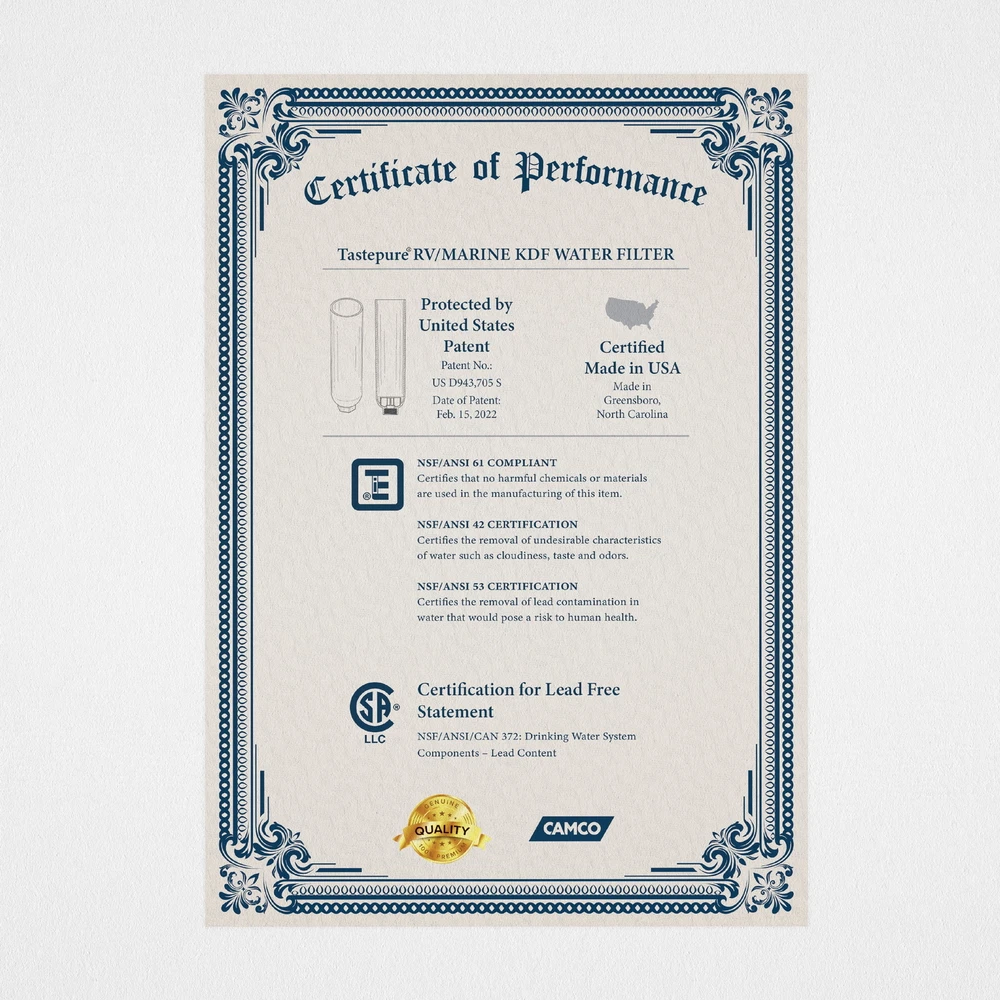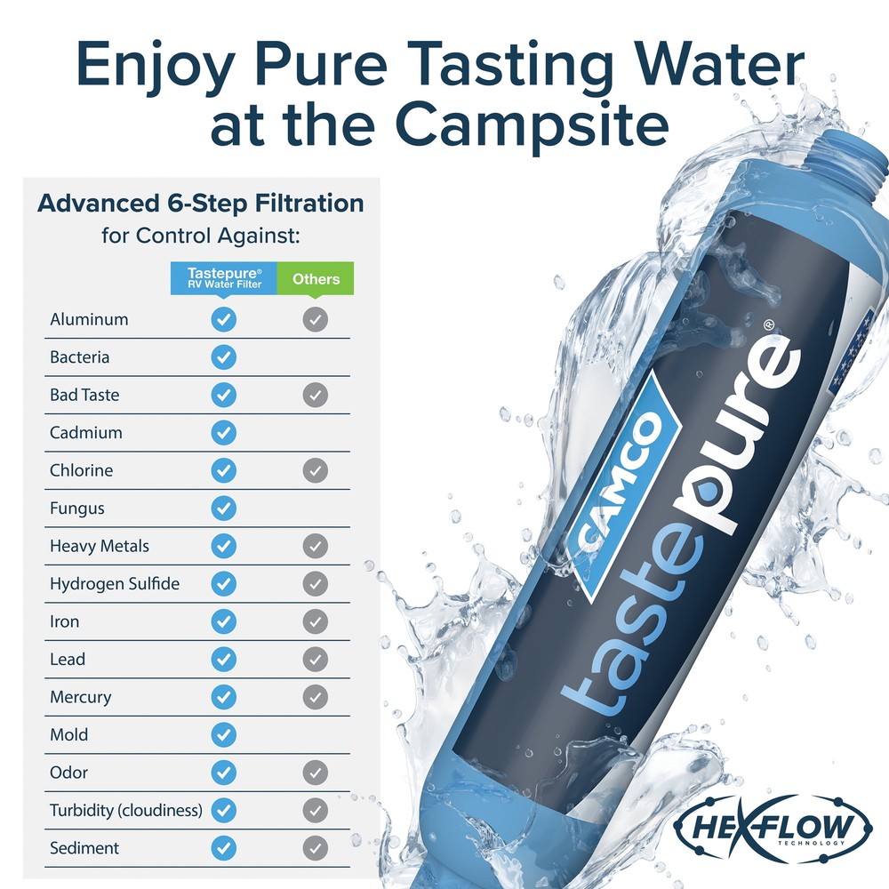 Experience pure and clean water on your journeys with RV/Marine Water Filters. These reliable filters easily attach to any water supply for clean drinking water wherever you go. The RV water filters are a camper must-have! With their high water-flow design, you can stay hydrated without compromise. Rest assured that these RV water filter systems exceed industry standards and have undergone rigorous testing. Their certifications speak to their quality and reliability, making them a trusted choice for adventurers worldwide. Enhance your camping experience to the fullest! Upgrade to Marine/RV Water Filters and discover the difference. Your thirst for adventure deserves nothing but the best. ADVANCED 6-STEP FILTRATION TECHNOLOGY: Experience the extraordinary power of Hex-Flow Technology & its remarkable 6-step filtration process. Every layer works together to provide you with water that is exceptionally clean. CERTIFIED LEAD-FREE: These camping water filters are independently tested & listed to standards NSF/ANSI 42 & NSF/ANSI 53. They are CSA lead-free content certified to NSF/ANSI 372 & compliant with all federal & state-level lead-free laws. ACCESS TO PURE, GREAT-TASTING WATER: Enjoy clean water wherever you go! These RV inline filters reduce unpleasant tastes, odor, chlorine, sediment, etc. GAC filtration, combined w/ KDF controls bacteria & mold growth when the filters aren’t in use. PATENTED TECHNOLOGY: These in-line water filters are proudly made with top-notch materials and expert craftsmanship. The patented design has undergone rigorous testing and quality control to meet the highest standards. VERSATILE APPLICATIONS: Easily attach these multi-purpose filters to any standard garden or drinking water hose to receive cleaner drinking water. They’re great for campers, boats, pets, gardening, car washes, car detailing, & more. 20-MICRON PROTECTION WITH HIGH FLOW: A 20-micron internal sediment filter protects against silt, sediment, etc. that may enter your fresh drinking water supply. The wide body design provides increased flow, so your water runs efficiently. 2-PACK: This essential RV accessory includes (2) inline water filters. Color: Blue; Model#: 40045; Brand: