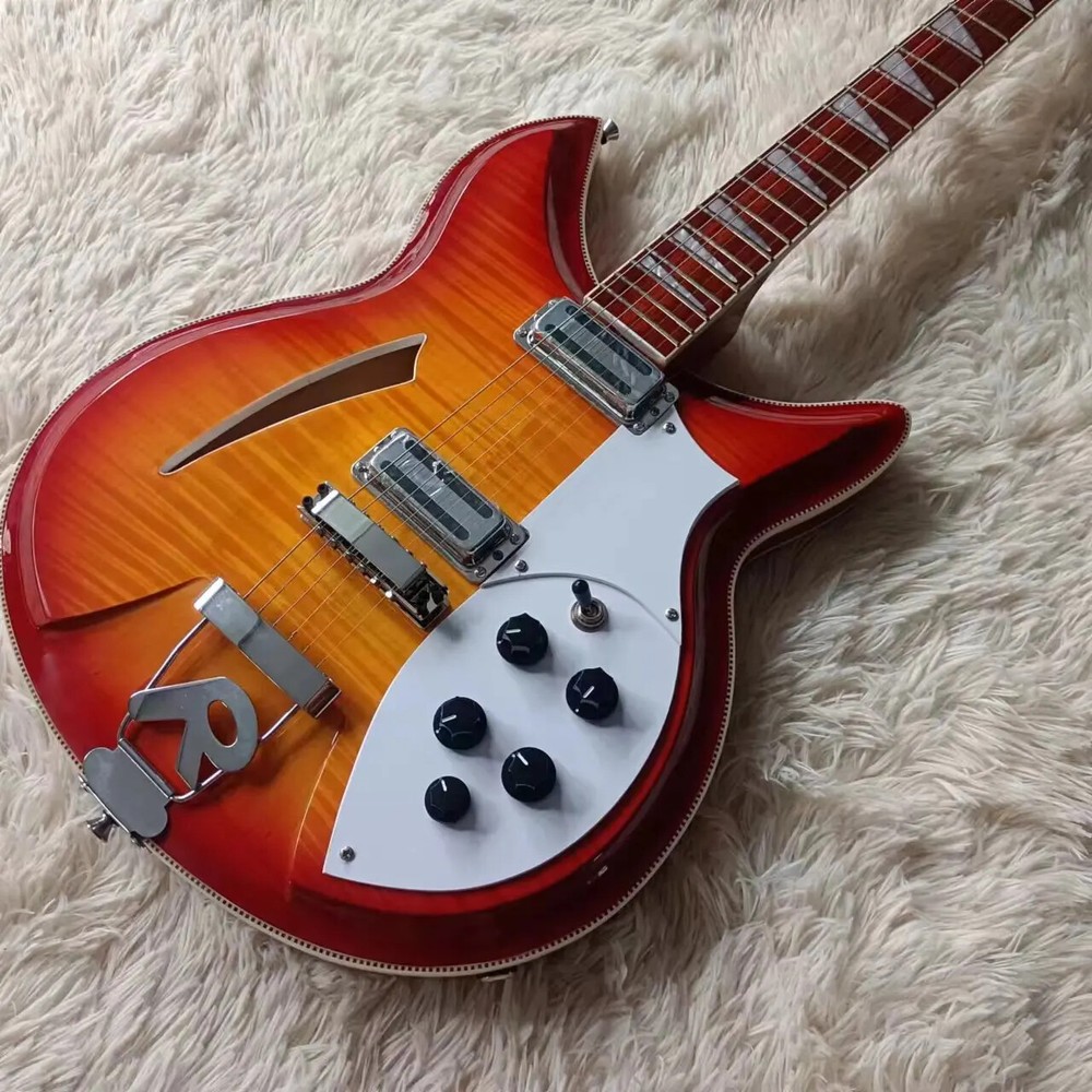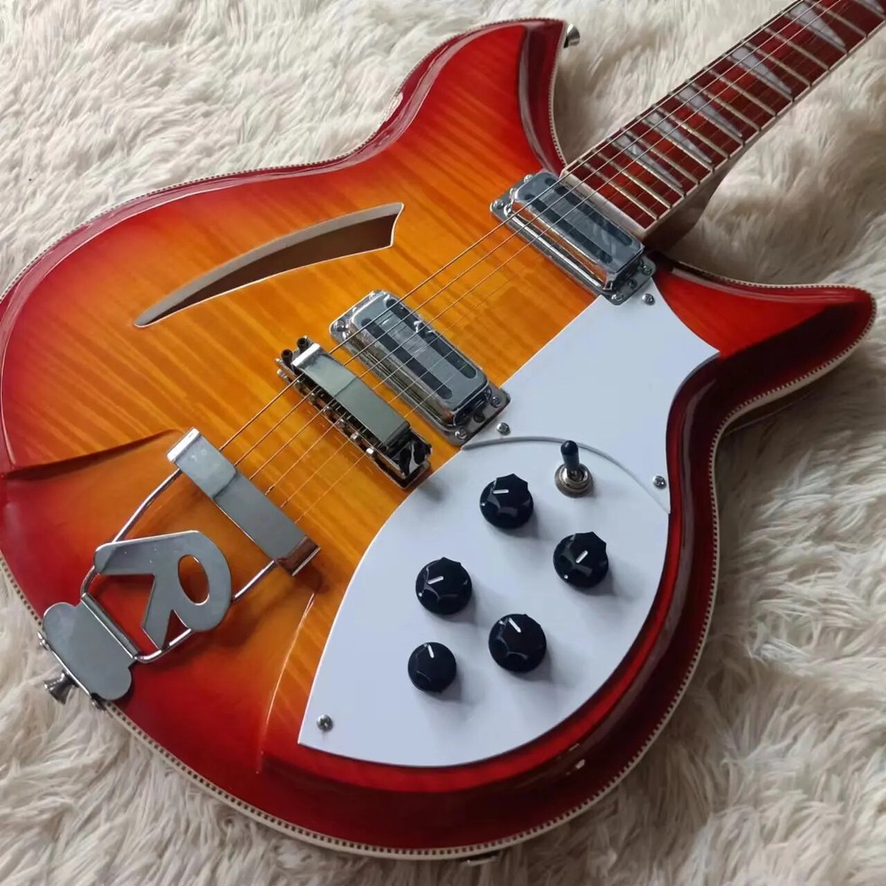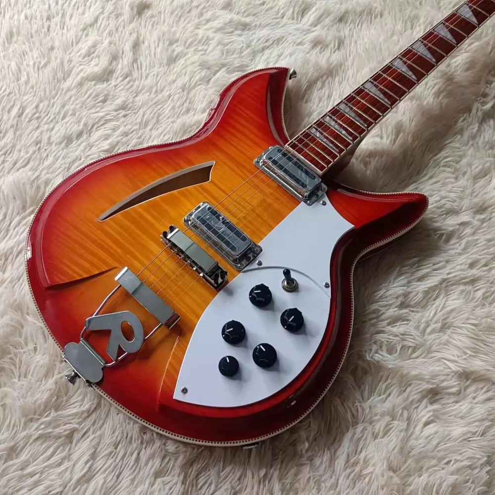 In Stock Oem 6 Strings Semi-hollow Electric Guitar Top Quality , Double Flame Maple,Free Delivery Home Add $20 For Nitro Paint