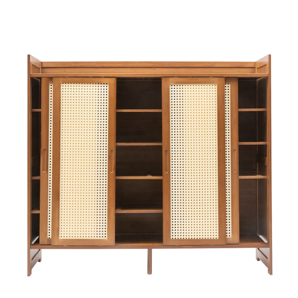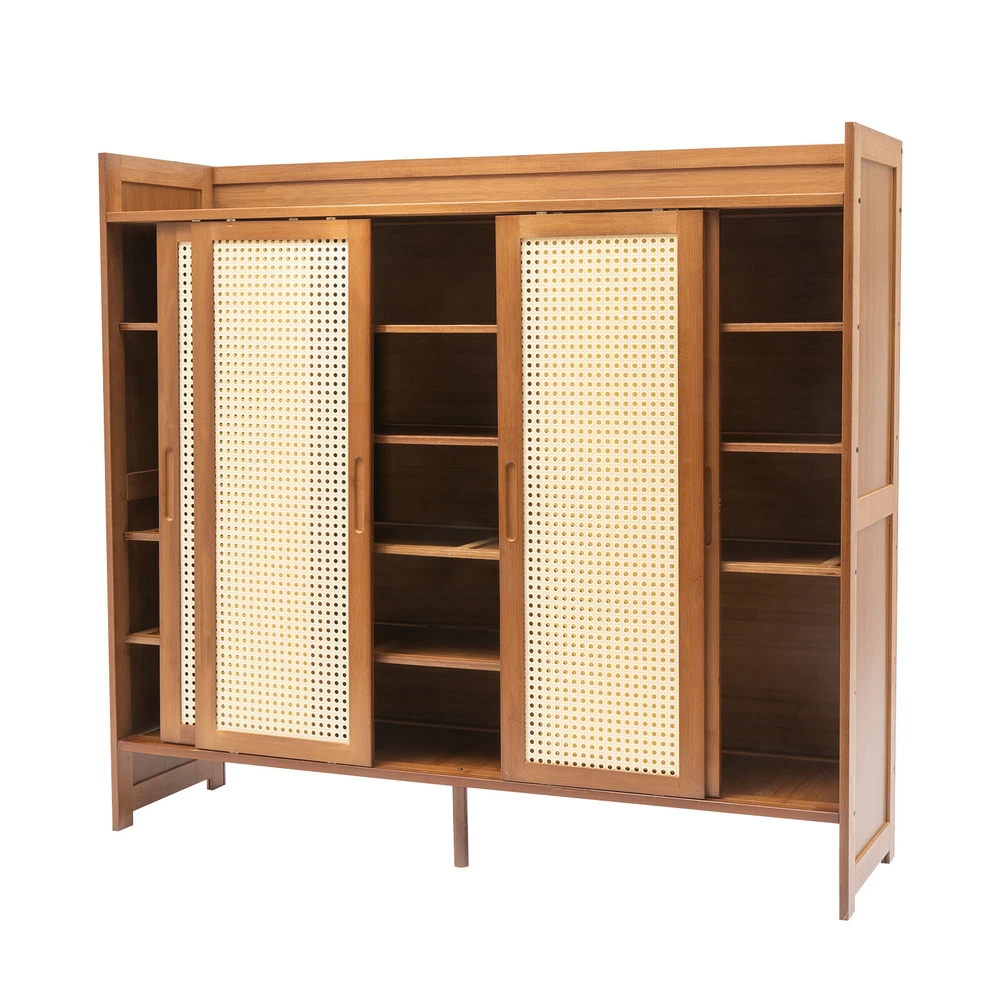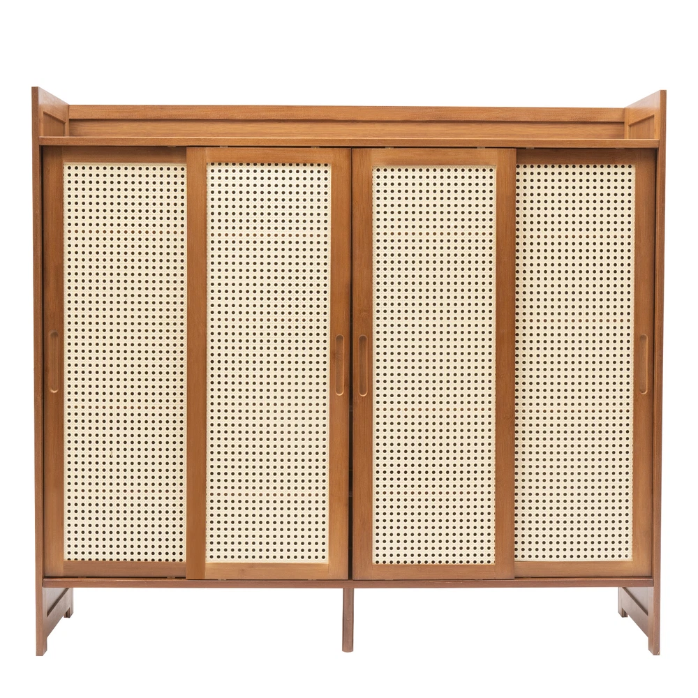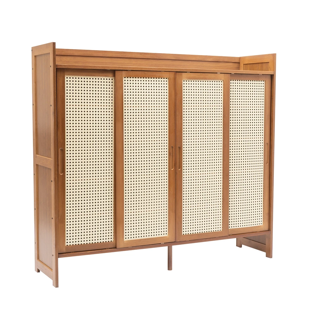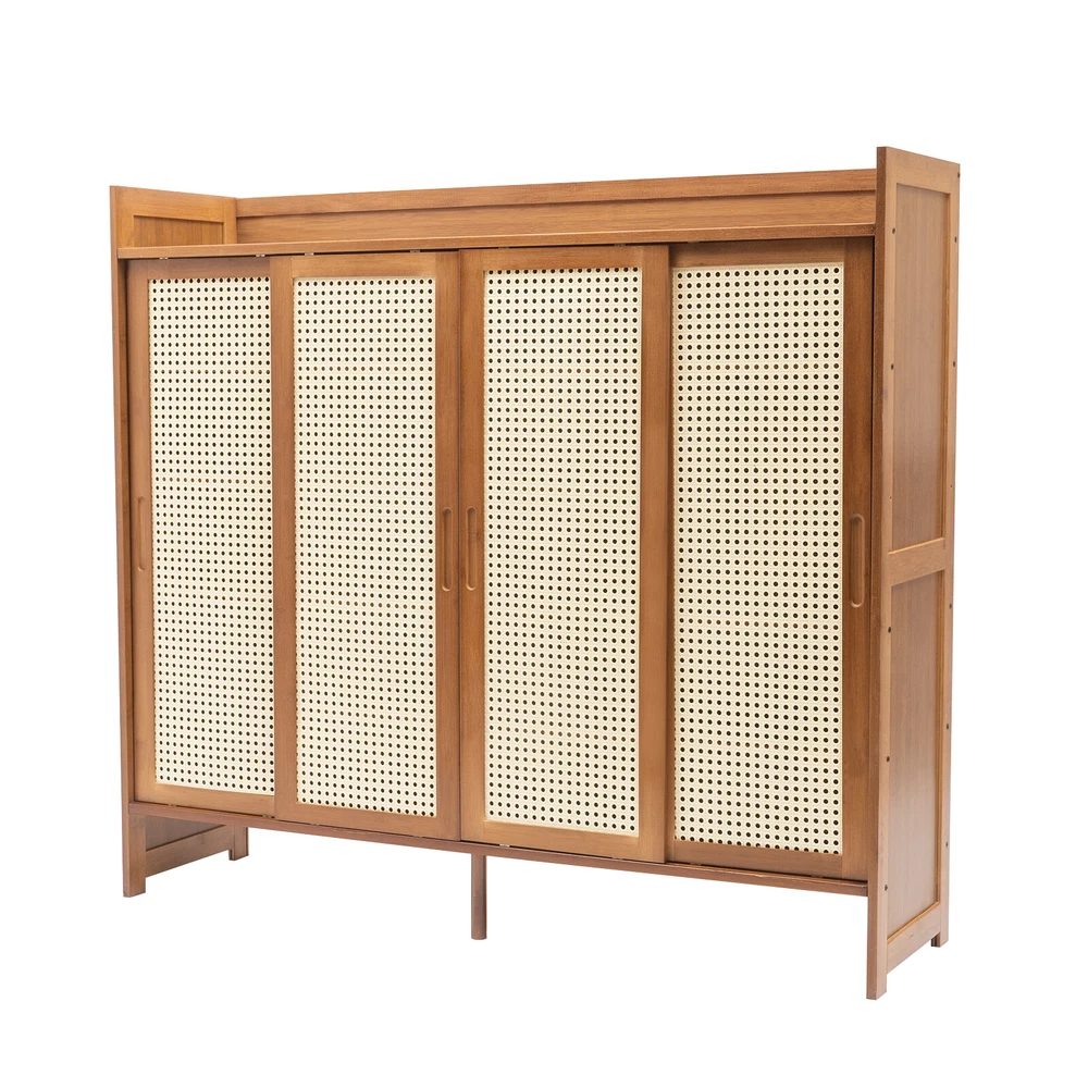 Natural Rattan Shoe Cabinet with 2-Tier Flip Drawers Free Standing Shoe Rack
