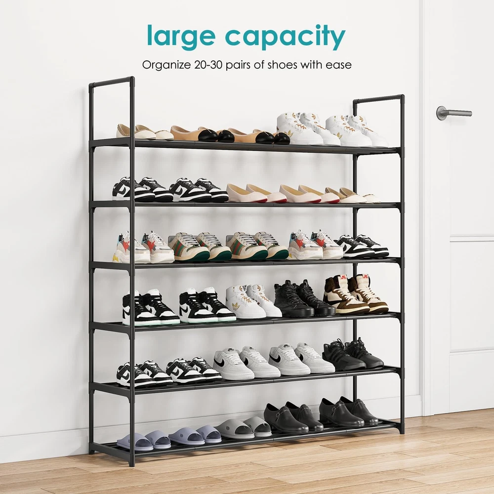 A shoe rack is an essential storage solution for any entryway or closet, providing an organized and tidy way to your footwear collection. These versatile racks come in various designs, from sleek and minimalist to rustic and decorative, to complement any home decor style. With multiple tiers or shelves, you can neatly arrange your shoes, keeping them off the floor and easily accessible. Constructed from durable materials like metal, wood, or plastic, a quality shoe rack offers sturdy support and ample space to accommodate numerous pairs. Whether you have a modest assortment or an extensive collection of shoes, a well-designed rack can transform cluttered chaos into an orderly display. Elevate your home organization and keep your shoes in pristine condition with this practical and space-saving solution. [Ample Storage Capacity]Efficiently organize your footwear with this spacious shoe rack measuring 11.2"D x 38.5"W x 42.5"H. Accommodates up to 16 pairs of men's shoes or 20 pairs of women's shoes, keeping them easily accessible. [Sturdy and Reliable]Constructed with robust thick metal tubes and quality plastic connectors, this shoe organizer supports up to 22 lbs per tier, ensuring your footwear is stored safely and securely. [Hassle-Free Assembly]Forget the tools! Our user-friendly design features numbered parts and clear illustrated instructions, making assembly quick and easy for anyone. [Low Maintenance Cleaning]Designed with a smooth, easy-to-clean surface, this shoe storage organizer wipes down effortlessly with a damp cloth, helping you maintain a tidy space with minimal effort. [Versatile & Stylish Design]With its sleek design and compact dimensions, this metal shoe shelf fits seamlessly into any room, including your closet, entryway, bedroom, or living room, enhancing your decor while providing functional storage.