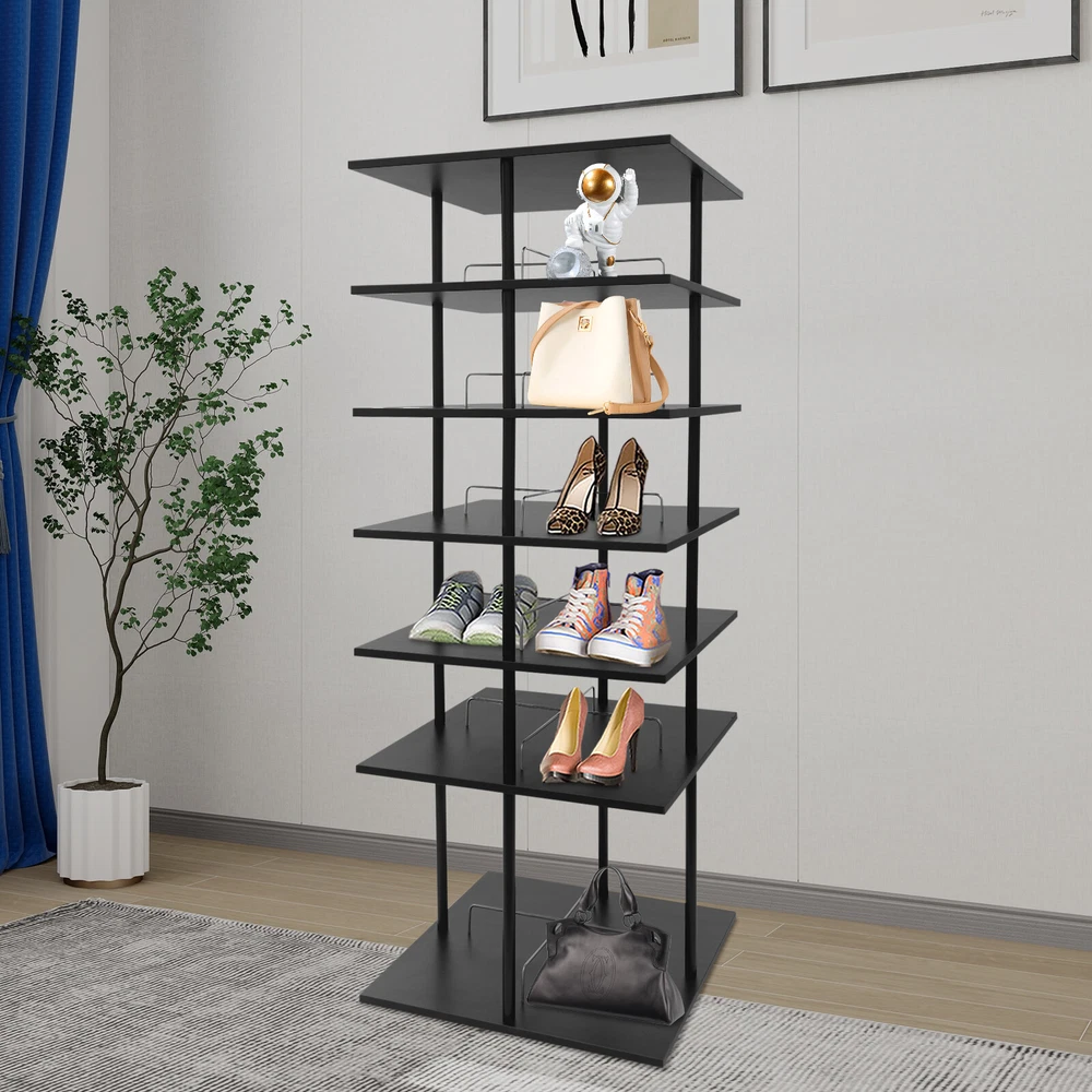 Specifications Color: Black Material: Paintless Board, Metal Process: Spray Coating, Baking Paint Style: Modern Shape: Rectangular Assembly Required: Yes Mount Type: Floor Mount Feature: 360° Rotatable Product Care Instructions: Wipe with a Soft Cloth Number of Tiers: 6 Number of Shoes Applicable Each Tier: 4 Pairs(For Reference) Total Load-bearing Capacity: About 19.5kg/42.99lbs Gross Weight: 19kg/41.89lbs Net Weight: 18.05kg/39.79lbs Tier Spacing: 21cm/8.26in, 44cm/17.32in Product Size: 57*57*155cm/22.44*22.44*61.02in Package Included 1* Shoe Storage Rack All Accessories for Assembly 6-Tiers Vertical Shoe Rack, Shoe Storage Organizer Shoe Display Rack Black Key Features Build to Last: It is made of high-class paintless board and metal with spray coating and baking paint processes, which makes it wear-resistant , e nvironmentally friendly, and not easy to deform, so you can use it for years and years. Large Capacity: The 6-tier design, each tier can accommodate 4 pairs of regular shoes(for reference), makes this product spacious enough for a family's shoe storage needs. You can also place small potted plants, handbags, umbrellas, etc.(not included) on the top tier. Strong Load-bearing Capacity: The square base and the solid connection between the parts allow this product to hold up to 42.99 lbs , so you can use it to store shoes or bags (not included) with confidence. Display Assistant: With it, you can neatly arrange different types of shoes. The 8.26-inch and 17.32-inch tier spacing accommodates different heights of shoes such as trainers and tall boots. In addition, the bottom of this shoe rack can be rotated 360° for easy selection, access, and storage of shoes or other items. Thoughtful Design: The open design allows you to see your shoes at a glance for easy access while still allowing for effective ventilation. Elegant Appearance: The simple black color finish creates a touch of elegance and casualness. It blends well with a variety of interior styles, bringing functionality and aesthetics to your space. Space Saving: It utilizes vertical space wisely and has a small footprint( 22.44*22.44 inches), which won't make the room congested. Simple Cleaning: Thanks to its smooth surface and simple structure, you can easily clean it with a soft rag (not included). Ideal Gift : This quality and practical product is a nice housewarming gift for your family and friends. Buy with Confidence: We stand behind all our guests and look forward to assisting you with your purchase. It is our pleasure to answer your confusion and questions. The end of the story between us is not "we sell and you buy". Details Stable Base: The square base measuring 22.44*22.44 inches and with non-slip feet can effectively stabilize the product and prevent it from shaking. Center Crossbars: They can be good for dividing up placed items and making them neater. Smooth Edges: The rounded and smooth edges not only add to the aesthetics of the product but also improve the safety of use. Application It can be used in homes, stores, clothing stores, hotels, gift stores, or factory warehouses to hold various styles of shoes, hats, handbags, and so on. Specifications Color: Black Material: Paintless Board, Metal Process: Spray Coating, Baking Paint Style: Modern Shape: Rectangular Assembly Required: Yes Mount Type: Floor Mount Feature: 360° Rotatable Product Care Instructions: Wipe with a Soft Cloth Number of Tiers: 6 Number of Shoes Applicable Each Tier: 4 Pairs(For Reference) Total Load-bearing Capacity: About 19.5kg/42.99lbs Gross Weight: 19kg/41.89lbs Net Weight: 18.05kg/ 39.79lbs Tier Spacing: 21cm/8.26in, 44cm/17.32in Product Size: 57*57*155cm/22.44*22.44*61.02in Package Size: 60*60*24cm/23.62*23.62*9.45in Package Included 1* Shoe Storage Rack All Accessories for Assembly Notes Please confirm the product size before purchasing. Please note that this product does not include display items such as shoes. Please note that the number of shoes that can be stored will vary depending on the size and height of the shoes. Please allow the slight color difference caused by the shooting light and 1-3cm error due to manual measurement, and make sure you do not mind before you order. Payment Delivery details Terms of sales About us Contact us Payment We accept ebay payment 。 Fees such as import duties, taxes are not included in the item price or shipping costs. These charges are the buyer's responsibility. Delivery details Shipping: 2-9 working days to: USA Terms of sales We maintain high standards of excellence and strive for hundred percent customer satisfaction. Feedback is very important to us. We hope that you contact us immediately before you give neutral or negative feedback, so that we can address your concerns. It is impossible to address issues if we do not know about them! About us Your satis faction is our ultimate goal. We work hard to earn your trust and future business. Our certified technicians have tested each item before shipping. The unit comes with 1 year limited warranty on all manufacturing defects. a) If you receive a defective item, you may return it or ask for a discount. Please contact us within 14 days after you receive the package. b) What you returned must be intact and in its original packaging as re? u. Customer is responsible for shipping costs of the returned item. c) We will cover the cost of shipping back t with the shipping rate indicated in the registration page. We will send you a new unit or refund the full payment you paid. Thank you. Contact us Business Hour Business Hour: Monday To Friday: 8:30 AM to 5:00 PM (Beijing China time) Due to time zones, our reply to your questions may not be immediately. But within above working time, we will reply your email within 24 hours. If it's non-workdays, please kindly be patient and wait till Monday. Please contact us with ebay message. Please feel free to contact us if you have any questions. Monday To Friday: 8:30 AM to 5:00 PM (Beijing China time)