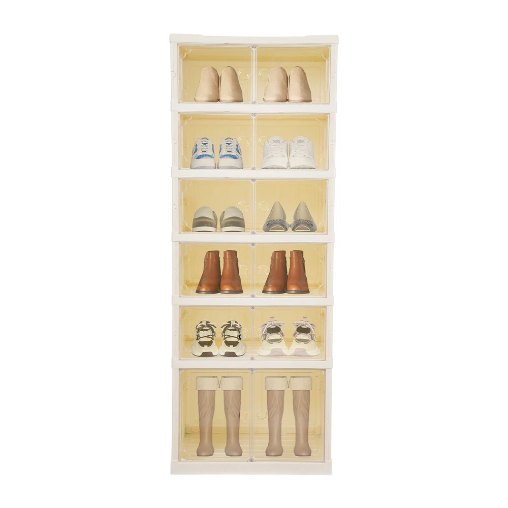 6 Tiers-12 Pairs Shoe Box Foldable Shoe Rack Shoe Storage Organizer with Doors Description In our daily lives, a neat and organized space can make us feel relaxed and happy. The feeling of coming home starts from entering the door and changing shoes. Choose the foldable shoe rack that you like to store your shoes. With its large capacity and elegant appearance, this item makes you feel warm, giving you a sense of pleasure and comfort from the moment you walk in the door. Key Features Last and Durable: It is made of high-quality PP+PET+ABS, which makes this item non-toxic , environmentally friendly , and sturdy, so it can provide good performance for a long time. Storage Assistant: With 6 tiers and wide compartments, there is plenty of space above and below to store shoes or other items in an organized manner, and the platform on top can hold potted plants, lamps, alarm clocks, etc. for a more tidy and warm environment. Thoughtful Design: The double-opening magnetic door makes it easy to access and place your shoes, the clear design allows you to display your shoes well while facilitating positioning for quick access , and the ventilation holes on the back ensure air circulation and prevent moisture from entering your shoes. Excellent Load Capacity: The rectangular construction and high-quality materials ensure that it can hold up to 220lbs, allowing you to place your belongings with confidence. Easy to Clean: The smooth surface and simple structure allow you to easily remove dust an d residues w ith a wet towel. Ready to Go: The product is already assembled, once you receive it, just lay it flat and unfold the skeleton, then pull the panels apart and snap them on to use it, it's very time-saving and convenient! Space-saving: With its compact footprint (17.32*13.58 inches) you can fit it nicely against a wall, and the collapsible design makes it easy to store or take it with you when not in use. Protective Package: To prevent the product from being damaged and bumped during transportation, we packed it with foam to protect your products to the maximum extent possible. Details Practical Wheels: The wheels on the bottom make it easy for you to move the product. Top Panel Depressions: They provide anti-slip protection and also allow you to place umbrellas with confidence. Round Hole: Each door comes with a round hole for you to open and close the cabinet door. Protective Pads: They can prevent the product from scratching your walls or floors and prevent the sharp points of the product from accidentally injuring your family members. Application It is suitable for office, hallway, attic, garage, bedroom, living room, closet or study to store and display your sneakers, flats, high heels and so on. They are also suitable for storing and sorting underwear, socks, scarves, ties, gloves, puzzle sets, stuffed animals, jigsaw puzzles, toy cars, towels, toilet paper, skin care products, cosmetics, files, books or other office supplies such as pens, glue or snacks. Specification Material: PP+PET+ABS Color: Cream White and Yellow Style: Modern Shape: Rectangular Mounting Type: Floor Standing Storage Capacity: 12 Pair of Shoes Number of Tiers: 6 Load Capacity: Within 100kg/220lbs Bottom Tier Height: 30cm/11.8in Height of Each Remaining Tier : 18cm/7.08in Product Size: 44*34.5*118cm/17.32*13.58*46.46in Product Size(Folded): 44*34.5*20cm/17.32*13.58*7.87in Package Size: 45.5*21*37cm/17.91*8.27*14.57in Gross Weight: 6.2kg/13.67lbs Net Weight: 5.4kg/11.9lbs Package Included 1* Foldable Shoe Rack All Accessories for Installation Notes Please note that this product does not include shoes, etc. Please allow the slight color difference caused by the shooting light and 1-3cm error due to manual measurement, and make sure you do not mind before ordering. Payment Delivery details Terms of sales About us Contact us Payment We accept ebay payment 。 Fees such as import duties, taxes are not included in the item price or shipping costs. These charges are the buyer's responsibility. Delivery details Shipping: 2-9 working days to: USA Terms of sales We maintain high standards of excellence and strive for hundred percent customer satisfaction. Feedback is very important to us. We hope that you contact us immediately before you give neutral or negative feedback, so that we can address your concerns. It is impossible to address issues if we do not know about them! About us Your satis faction is our ultimate goal. We work hard to earn your trust and future business. Our certified technicians have tested each item before shipping. The unit comes with 1 year limited warranty on all manufacturing defects. a) If you receive a defective item, you may return it or ask for a discount. Please contact us within 14 days after you receive the package. b) What you returned must be intact and in its original packaging as re? u. Customer is responsible for shipping costs of the returned item. c) We will cover the cost of shipping back t with the shipping rate indicated in the registration page. We will send you a new unit or refund the full payment you paid. Thank you. Contact us Business Hour Business Hour: Monday To Friday: 8:30 AM to 5:00 PM (Beijing China time) Due to time zones, our reply to your questions may not be immediately. But within above working time, we will reply your email within 24 hours. If it's non-workdays, please kindly be patient and wait till Monday. Please contact us with ebay message. Please feel free to contact us if you have any questions. Monday To Friday: 8:30 AM to 5:00 PM (Beijing China time) Due to time zones, our reply to your questions may not be immediately. But within above working time, we will reply your email within 24 hours. If it's non-workdays, please kindly be patient and wait till Monday. Please contact us with ebay message. Please feel free to contact us if you have any questions.