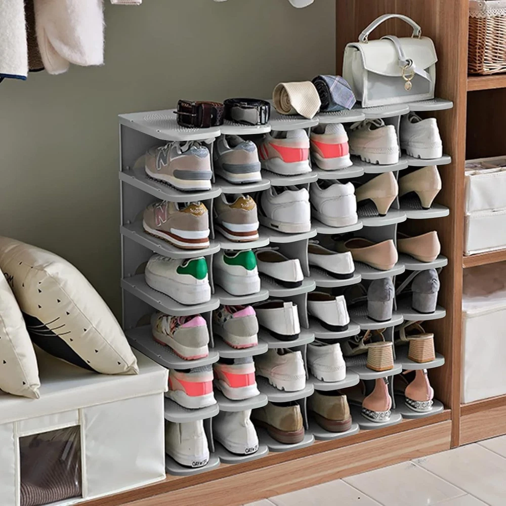 This shoe rack is a game-changer for my closet! The thickened PP material makes it super sturdy, and the non-slip surface keeps my shoes from sliding. Love that I can combine multiple sets to fit any space—perfect for sneakers, heels, and even boots. Super easy to assemble and saves so much room. Highly recommend for anyone needing smart, durable shoe storage!