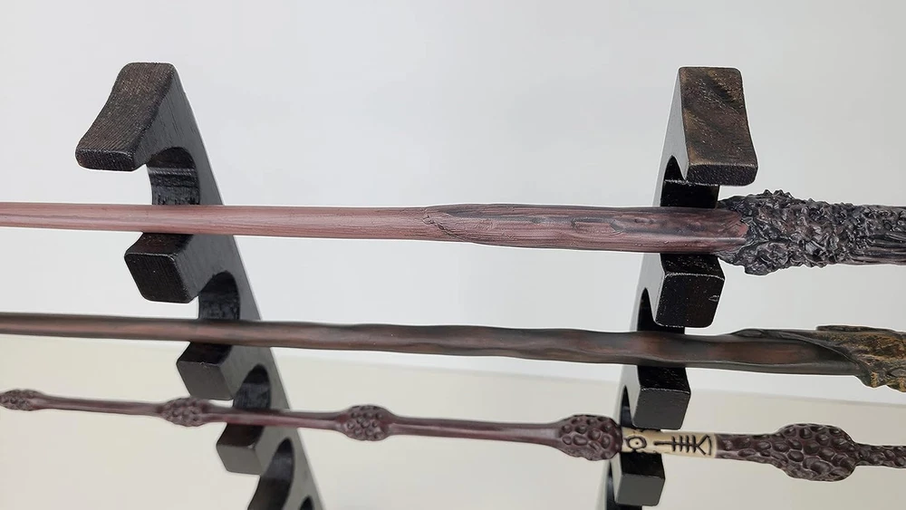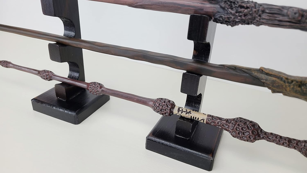 Business is our speciality NEW Wizard Wand Stand Display - 6 Tiered Wood Magic Wand Holder for Table Display, Holds Six Wands FEATURES ELEGANT DISPLAY - The way this wand stand displays provides an amazing decoration for your home or office SOLID & STURDY - Made of high quality solid wood, with big base, it's very stable to hold 6 wands MULTI-PURPOSE STAND - Comes with 2 separated parts, it perfectly fit long or short wands and swords SIZE MATTERS - Measuring 2.5"x2.5"x12.5", holes size 1", compact and nicely display your wands Amazing Gift Idea for Wands Enthusiast. Material: Pine Wood with dark finish. Wands not included Are you tired of putting your fancy wands in their box that you can't use to decorate your room? We are. This is a decent wand stand made of solid wood with a nice dark brown painting, unlike its cheap unsteady plastic counterparts, it will proudly display your wizard wands on your table or cabinet. It comes with two separated parts, you can adjust the distance between to fit different length magic wands and it will be very sturdy thanks to its big base. Arrives Ready-to-Use (No assembly required), measuring 2.5"x2.5"x12.5", holes size 1", this is a compact size wand display stand so people will always focus on the wands other than the stand. It also displays different things like pens, makeup brushes, katanas, samurai swords, knives, native American flute whistles and more. You can show off your interesting and creative style with it. This wand holder will add a perfect wizard touch to your home decor, it's also a great gift idea for people who love magic wands. Get your magic wand stand today and enjoy a wizard decor piece. Assembly required No Batteries required No Product Dimensions 12 x 2.5 x 2.5 inches Country of Origin China Item Weight 7 ounces Finish types Painted Size 6 tier 2.5 inches x 12.0 inches x 2.5 inches. Weight: 7.0 oz Ask us anyhting Free shipping PAYMENT We accept all payments via Ebay using Credit Cards , PAYPAL , Apple Pay and many others SHIPPING We are always working hard to ensure your package arrives as soon as possible. Please understand that some factors like weather, high postal traffic, and the performance of shipping companies are outside of our control. DELIVERY & RETURN POLICY We offer a 30-Day Return Policy on items in which you are not completely satisfied with. You have the option of a full-refund or an exchange of the item. No returns are available on items shipped outside of the USA.