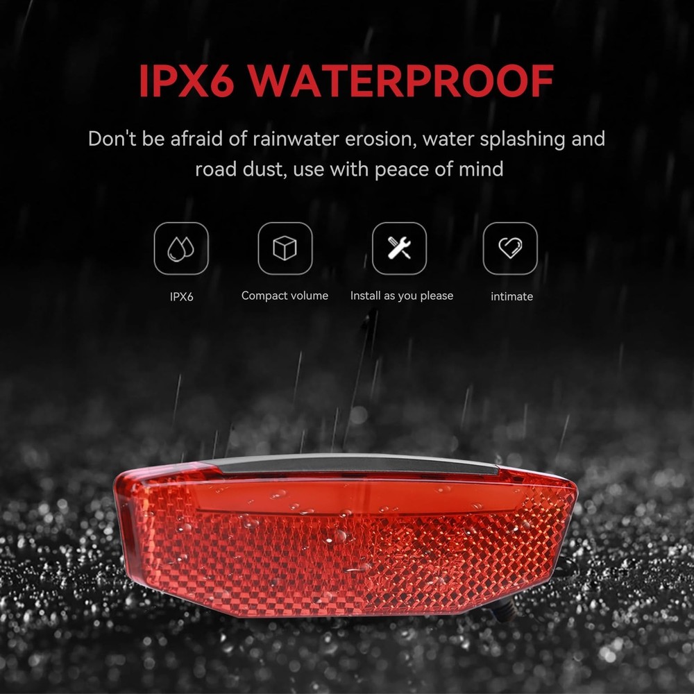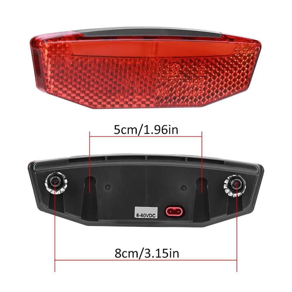EBike Tail Light, 6V-60V LED Warning Light High Brightness Bike Rear Light Night Riding Equipment Waterproof Connector Electric Bike Accessories for Night Riding Cycling - Buy Now with Fast Shipping! EBike Tail Light, 6V-60V LED Warning Light High Brightness Bike Rear Light Night Riding Equipment Waterproof Connector Electric Bike Accessories for Night Riding Cycling Product Details Color: red Brand: Frdhee Material: Plastic Power Source: Battery Powered Water Resistance Level: Waterproof Mounting Type: Frame Mount Number of settings: 1 Auto Part Position: Rear International Protection Rating: IPX7+ Manufacturer: Frdhee Color: ‎red Brand: ‎Frdhee Material: ‎Plastic Power Source: ‎Battery Powered Water Resistance Level: ‎Waterproof Mounting Type: ‎Frame Mount Number of settings: ‎1 Auto Part Position: ‎Rear International Protection Rating: ‎IPX7+ Manufacturer: ‎Frdhee Item Package Dimensions L x W x H: ‎5.31 x 4.02 x 1.1 inches Package Weight: ‎0.07 Kilograms Brand Name: ‎Frdhee Warranty Description: ‎NO Model Name: ‎M Suggested Users: ‎unisex-adult Included Components: ‎Tailight Date First Available: March 14, 2024 Key Features ✅ WIDE BEAM ANGLE: With a large beam angle of 180 degrees, you can see the tail lights of electric bicycles in different directions. The taillight keeps you visible at night but also in the daytime. ✅ EASY TO USE: The tail light can be connected to the controller or directly to the battery, waterproof, and can be used with confidence in rainy days. ✅ EXCELLENT RIDING ACCESSORIES: Bike LED warning lights, wonderful riding equipment for night riding, increase the safe of night riding. Suitable for most Bike, electric Bike ✅ HIGH QUALITY MATERIAL: The bicycle rear light is made of high quality plastic materials, durable and easy to use.Waterproof and dust proof. ✅ SATISFACTION GUARANTEE: All our product offer return policy or money back guarantee, if you have any problem about your purchase, pls communicate with us by Email, we are always here to make everything right for you Product Description