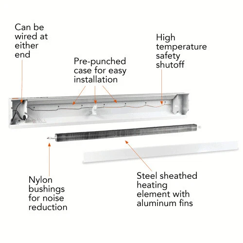 Metal Storage Cabinet with Doors and Shelves 5 Tier Metal Pantry Closet Cupboard 122.19 USD 129.99 USD Free shipping 6% off 118" Wide Baby Gate Metal Safety Playpen Fireplace Fence for Toddler/Pet/Dog 83.19 USD Free shipping Ergonomic Gaming Recliner Adjustable Footrest PU Leather Comfortable Sofa Chair 158.83 USD 168.97 USD Free shipping 6% off 10 Gallon Glass Aquarium Starter Kit LED Lighting Filtration System Fish Tank US 65.54 USD 69.72 USD Free shipping 6% off Ergonomic Gaming Chair w/ Footrest Reclining Video Game High Back Computer Chair 97.75 USD 103.99 USD Free shipping 6% off Outdoor Storage Shed Galvanized Steel Tool Storage Water Resistant Lockable Door 122.19 USD 129.99 USD Free shipping 6% off Mallard Floaters Decoy 12 Pack Rugged One-piece Design 73.32 USD 78.0 USD Free shipping 6% off Pink Cute Kawaii Gaming Chair for Girl Ergonomic Desk Racing Office Adjustable 91.03 USD 96.84 USD Free shipping 6% off Portable Training Kit for 9mm Dry Fire Laser Training System for Target Practice 121.72 USD 129.49 USD Free shipping 6% off Mini Fridge with Freezer 2.9 Cu.Ft Fridge Energy Saving Adjustable Thermostat 135.57 USD 144.22 USD Free shipping 6% off 10 Pack Folding Chairs Portable Stackable Seating Events 350lbs Capacity New 157.63 USD 167.69 USD Free shipping 6% off 5X3X6.1FT Outdoor Steel Storage Shed with Frame Floor and Lockable Doors Patio 158.8 USD 168.94 USD Free shipping 6% off The Cadet Electric Baseboard Heater utilizes convection heat to provide efficient warmth. The quiet operation and low cost installation make it a perfect choice for a bedroom or any area of your home that requires additional warmth. Designed for ease of installation with pre-punched mounting holes along 1" intervals, this hardwired heater can be wired at either end. Rugged U.S.A. steel construction with powder coated white paint for a durable, premium finish. A thermostat is required and sold separately. No cords - requires hard-wired installation for a permanent, safe, reliable heating solution Thermostat sold separately - choose a line voltage wall thermostat or BTF unit-mount thermostat for temperature control Operates 1500-Watt at 240-Volt or 1125-Watt at 208-Volt Convection heating helps circulate air to heat a space up to 175 square feet Timeless and proven fin construction maximizes surface area to funnel heated air and aid convection of air flow Contemporary baseboard design is built to industry standard lengths to easily replace your current baseboard or match any new construction footprint A high-temperature safety device switches heater off if normal operating temperatures are exceeded Powder coating provides a smooth finish resistant to corrosion, scratches, fading and wear Steel-sheathed element offers excellent heat transfer and high quality durability Pre-punched case at 1 inch intervals and accessible front caps provide easy installation of heater Adult Oversized Mesh Camp Chair with Cooler Camping Foldable Portable Chairs New 33.72 USD Free shipping Non-Slip Velvet Adult Clothes Hangers 100 Pack Space Saving Household Hangers 37.77 USD Free shipping Big Catch Trotline Fishing Kit 76pc Stainless Steel Clips Hooks Reliable Set New 24.26 USD Free shipping Recycled Canopy Vented One-Touch Auto Open Golf Rain Umbrella with Sunguard 22.95 USD Free shipping 6-In. Fry Pan with Stainless Steel Handle Grill Pans Kitchen Cookware Yellow 21.46 USD Free shipping Weekly Shower Cleaner No Scrub Spray Safe All Surfaces Vanilla Scent 64 Fl Oz US 31.05 USD Free shipping 80/20 Quilting Batting 96" X 9 Yards Natural Blend Batting for Hand Quilting NEW 63.53 USD Free shipping Metal 18 Pair Over The Door Shoe Rack Shoe Storage Organizers Convenient New 37.79 USD Free shipping Sausage Stuffer 2.5LBS/1.5L Capacity Homemade Sausage Maker Stainless Steel 77.48 USD Free shipping Home 5-Piece Coral Damask Reversible Comforter Set Full/Queen Bedding Unisex 45.06 USD Free shipping White 8 Foot Easy Fold Folding Plastic Table Heavy Duty in/Outdoor Tables New 106.9 USD Free shipping 18" Deep 2 Drawer Letter Width Vertical File Cabinet Office Filing Organizer US 77.5 USD Free shipping