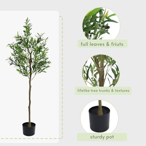 Return Policy Fast Delivery Trusted seller 6ft Faux Olive Tree, Olive Tree Artificial Indoor Fake Potted Olive Silk Tree with Planter for Indoor Home Decor Product Description Size - 6FT tall artificial olive tree with black pot (5.9"Dia.×4.9"H.) Realistic Looking - Tall faux olive tree with natural wood trunks, silk leaves, full fruits, and long stems, it bring the authentic look and airy feel of real plants. The attractive shape bring a touch of nature indoors. Assemble & Adjustable - The easy installation and adjustable branches allow you to customize the tree to fit perfectly into your space and match your aesthetic preferences. You can shape the branches just the way you like it. These adaptable features make faux olive trees a versatile and user-friendly choice for any room. Maintenance Free - This fake olive tree stays looking vibrant and fresh all year round, regardless of the temperature. No watering or sunlight required. With a faux olive tree, you get the beauty of a lush, green plant without any of the hassle. Versatile Decoration - Faux olive trees, with their lifelike appearance, can add a touch of greenery and elegance to various spaces such as office, hotel, home office, awkward corners, kitchen, living room, bedroom, patio and more. Shipping Returns Payment Shipping Shipping is FREE to all addresses other than APO/PO boxes in the lower 48 states. All our stock ships from US-based warehouses. Shipped via USPS or UPS (depending on location and package weight) Unless stated otherwise, all orders will ship within 24-72 hours of your payment being processed. Check our feedback to see the great reviews of FAST shipping we offer. Returns Seller does not accept returns Payment We currently accept payment via eBay managed payments only. Once payment is cleared, we will dispatch your shipment within 1-3 business days. Please refer to the "Shipping" tab for more information regarding shipping speed to your destination.