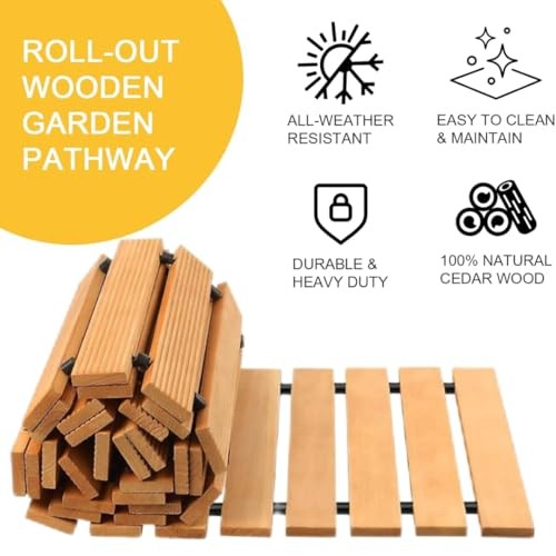Reliancer 8ft Cedar Wooden Garden Pathway Outdoor Roll Out Walkway