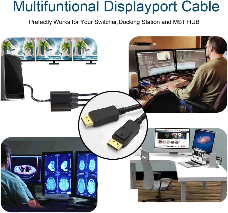 DisplayPort to Displayport Cable 6 feet 10-Pack, Display PortDP to DP Cord 6ft [1440P@144Hz, ] DisplayPort cable (Displayport , Displayport , Dispalyport , Displayport , DP, DP++). Compatible with computer equipped to HD monitor/display, projector or gaming graphics card with DisplayPort input Supports High-quality 3D, HDR, 4K @ 60Hz (3840x2160, Ultra HD), 1440p @ 144Hz (2560x1440, QHD), 3440x1440@100Hz, 1080P @ 144Hz (1920x1080, Full HD), and flawless audio pass-through for uncompressed digital , or 2 channels Active displayport to displayport cable support AMD Eyefinity Multi-Display Technology. Such as DisplayPort PC, Docking station, Display Port Swich, Display Port Splitter, DisplayPort MST Hub (UL 20276) gold-plated connectors, bare copper conductors, and foil & braid shielding combine together to provide both superior cable performance and reliable connectivity Display Port connector with latches provides a secure connection with a release button that must be depressed before unplugging Displayport Cable 6ft 10-Pack DisplayPort to DisplayPort Cable is an indispensable companion for your laptop or desktop with DisplayPort for video streaming with this dp cable. Connect and configure your monitor for an Extended Desktop or Mirrored Displays.
