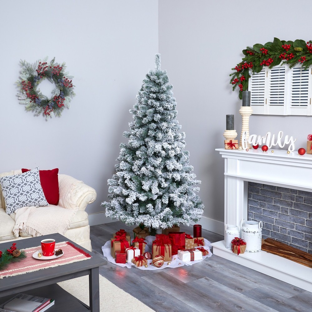 Evoke a winter wonderland this holiday season with the help of this Flocked West Virginia Fir Artificial Christmas Tree. Entirely maintenance-free, this winter-inspired Christmas tree boasts soft looking foliage with 550 easy-to-bend branches for showcasing your own personalized ornaments and holiday accents - all lightly frosted with faux snow, creating a picture-perfect Christmas. Carefully stabilized on an accompanying stand, this handsome 6' tall frosted artificial Christmas tree will undoubtedly transform any home or office into a joyous holiday setting for years to come. Free Shipping Over $49.99* Details 6' Flocked West Virginia Fir Christmas Tree - Green Product Description: Evoke a winter wonderland this holiday season with the help of this Flocked West Virginia Fir Artificial Christmas Tree. Entirely maintenance-free, this winter-inspired Christmas tree boasts soft looking foliage with 550 easy-to-bend branches for showcasing your own personalized ornaments and holiday accents - all lightly frosted with faux snow, creating a picture-perfect Christmas. Carefully stabilized on an accompanying stand, this handsome 6' tall frosted artificial Christmas tree will undoubtedly transform any home or office into a joyous holiday setting for years to come.