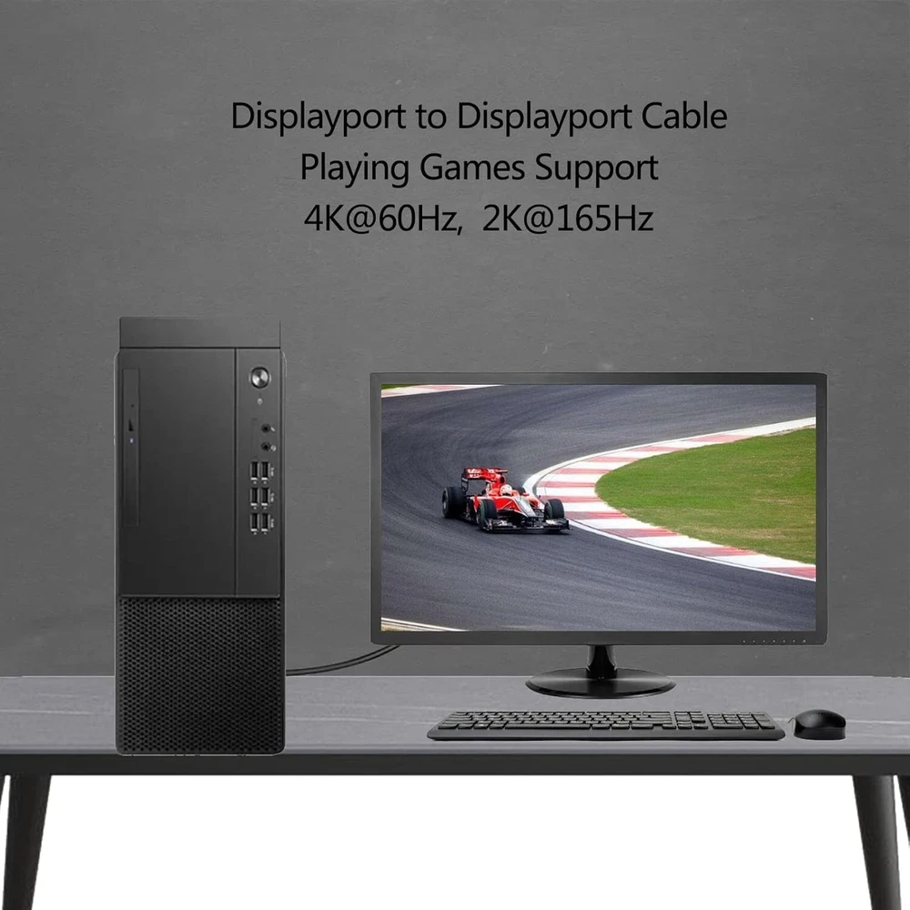 DisplayPort to Displayport Cable 6 Feet, Gold Plated Display Port to Display Port Cable 4K@60HZ ResolutionMale to Male for DisplayPort Enabled Desktops and Laptops to Displays 10 Pack Convenient cable directly connects a DisplayPort (DP, DP++, DisplayPort++) equipped computer to a HD monitor or projector with DisplayPort input Supports video resolutions up to 4K@60HZ (3840x2160, Ultra HD) and 1080P (Full HD), and flawless audio pass-thru for uncompressed digital , or 2 channels Transmits high definition audio and video from your computer to a monitor for video streaming or gaming; Connect and configure your monitor for an Extended Desktop or Mirrored Displays DisplayPort connector with latches provides a secure connection with a release button that must be depressed before unplugging Gold-plated connectors, bare copper conductors, and foil & braid shielding combine together to provide both superior cable performance and reliable connectivity.