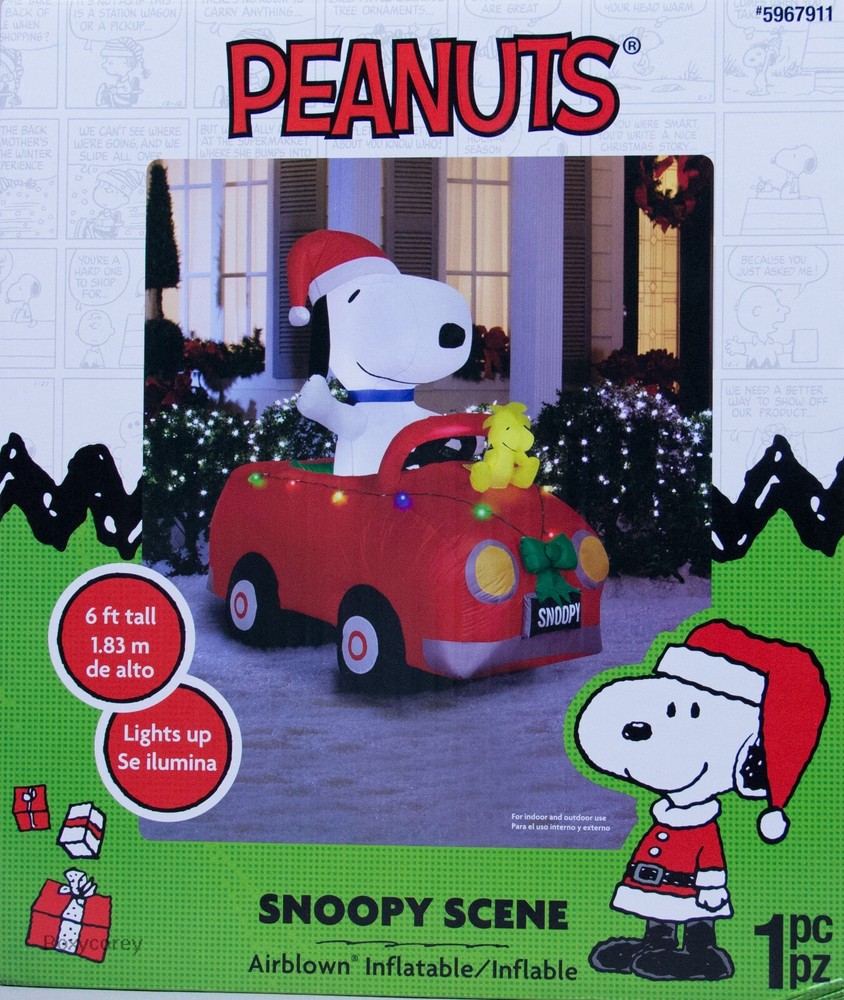 DESCRIPTION: Christmas Gemmy Peanuts 6 ft Lighted Snoopy Woodstock Red Car Scene Self inflates in seconds Indoor/outdoor New in box *All Electronics sold in our store use a US plug and are designed to run on the US 120v standard.* All international buyers are asked to consider this before purchasing because an adaptor will be required. RETURNS: Your satisfaction is important. Please contact us via eBay regarding any problems before leaving negative feedback. Any defects, damages, or material differences with your item, must be reported to us within 7 days of receipt of the item or 30 days from date of shipment Returned merchandise must be postmarked within 30 days of the shipment notification Return shipping will be paid by the buyer We will contact you within 14 days after receiving the item Refund will be given as money back or exchange if available