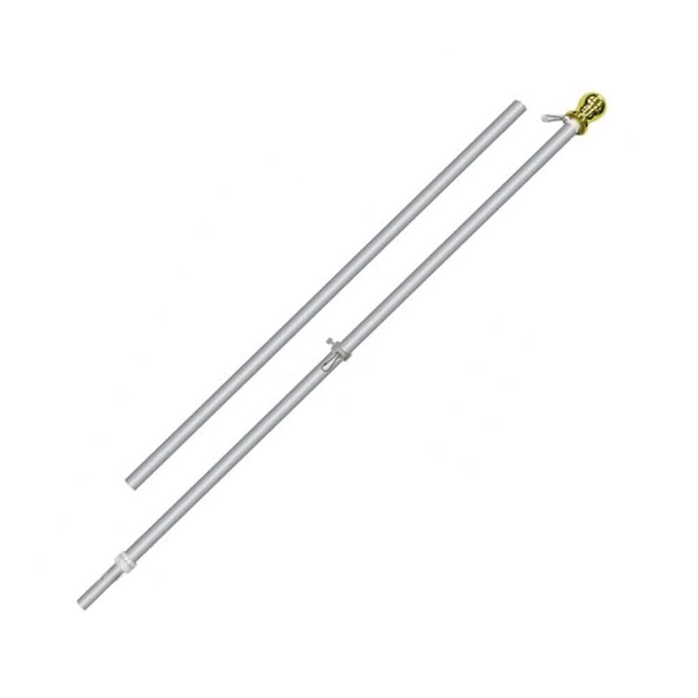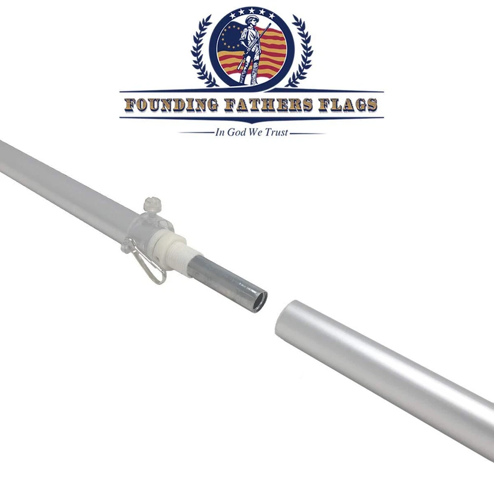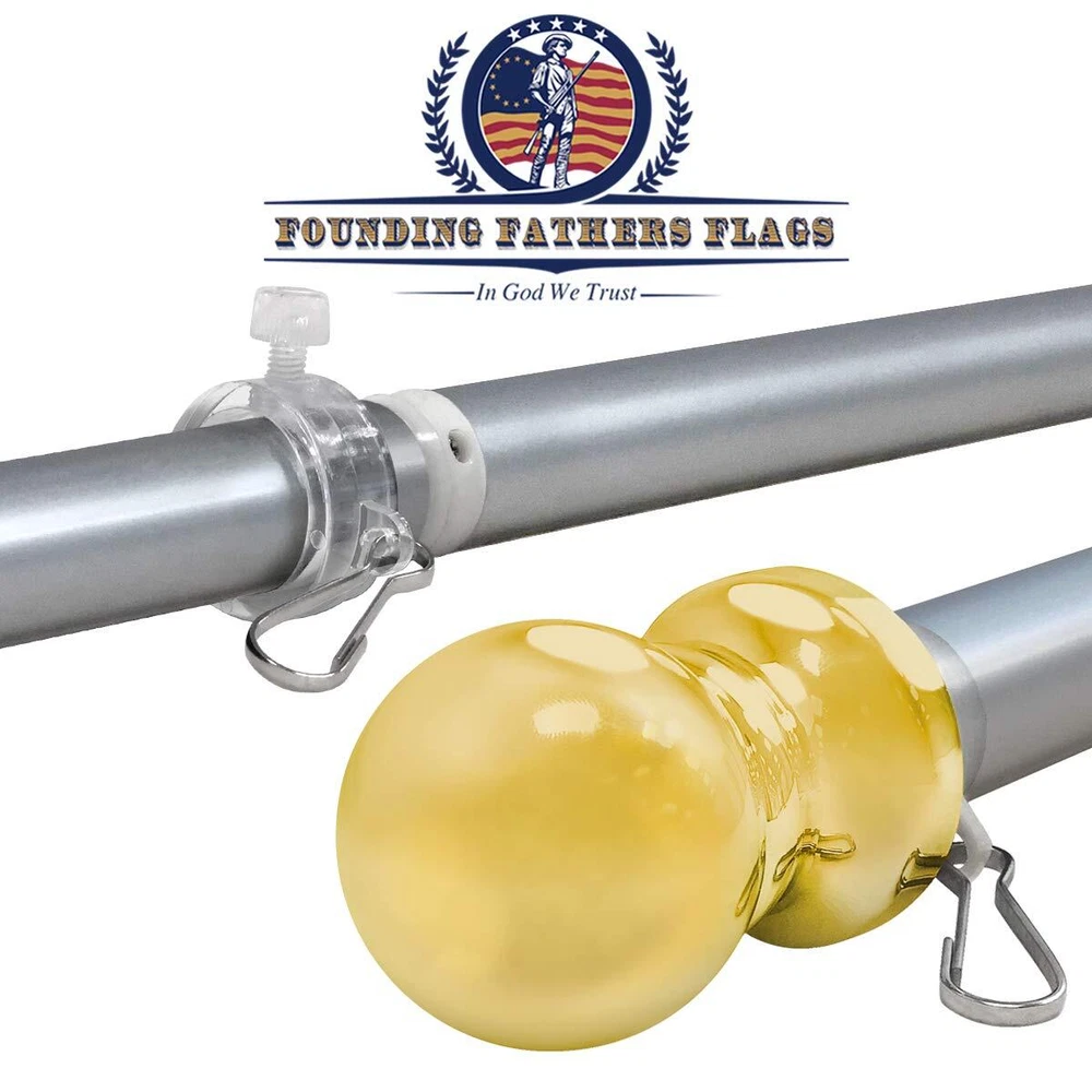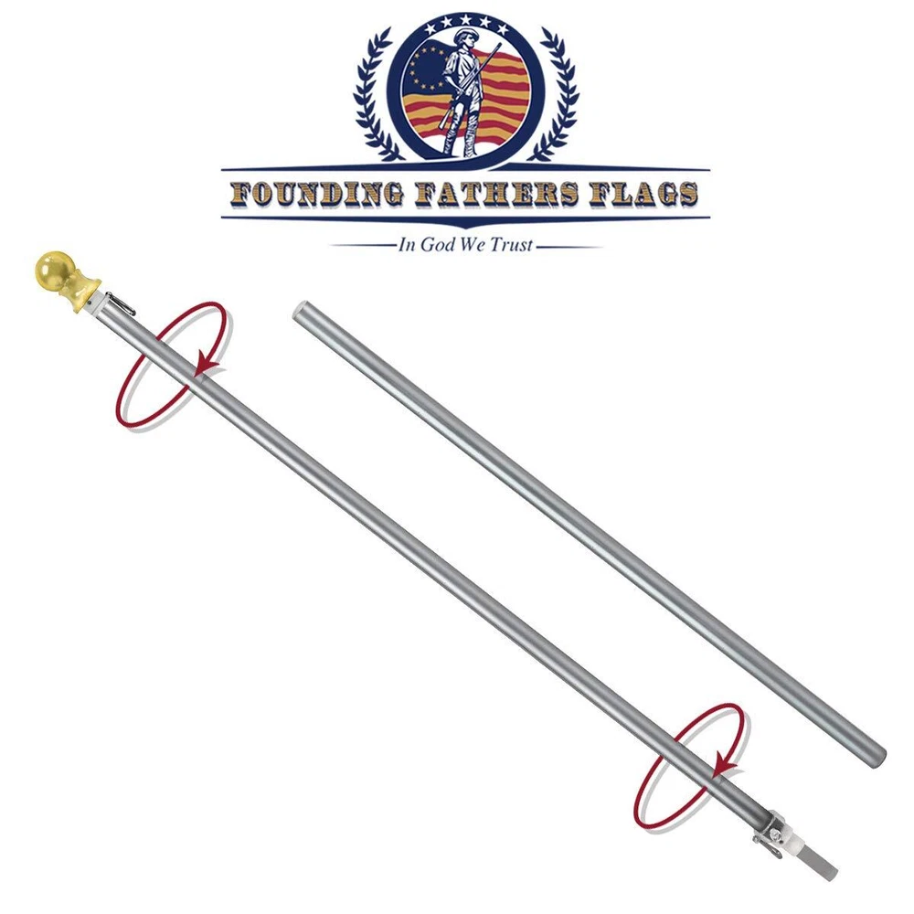Our 6ft spinning stabilizer Black Label edition silver pole is perfect to hang your most prized flags, showing your patriotic spirit, holiday spirit, or hobbies! Comes with instructions for easy assembly to hang your flag within minutes. π’πˆπ‹π•π„π‘ πŸ” π…πŽπŽπ“ π’ππˆπππˆππ† π’π“π€ππˆπ‹πˆπ™π„π‘ 𝐅𝐋𝐀𝐆 ππŽπ‹π„ - Our 1-inch flag pole has been upgraded with a double-layer interior and brushed aluminum for extra strength and durability to protect your flag from strong wind and rust. π€π”π“πŽπŒπ€π“πˆπ‚π€π‹π‹π˜ 𝐔𝐍𝐓𝐀𝐍𝐆𝐋𝐄𝐒 - The midsection ball joint allows the pole clip to spin freely protecting the flag from getting tangled, preserving the life of the flag. π’πŒπŽπŽπ“π‡ 𝐁𝐑𝐔𝐒𝐇𝐄𝐃 π…πˆππˆπ’π‡ - Completed with a silver brushed finish and a shiny golden ball, our flag pole is the perfect eye catcher for any occasion in your home and business. πŽππ„ π’πˆπ™π„ π…πˆπ“π’ 𝐀𝐋𝐋 - Our pole fits perfectly with any of our flags and any flags on the market. No matter embroidered, printed, or nylon, our pole will fit your flags perfectly.