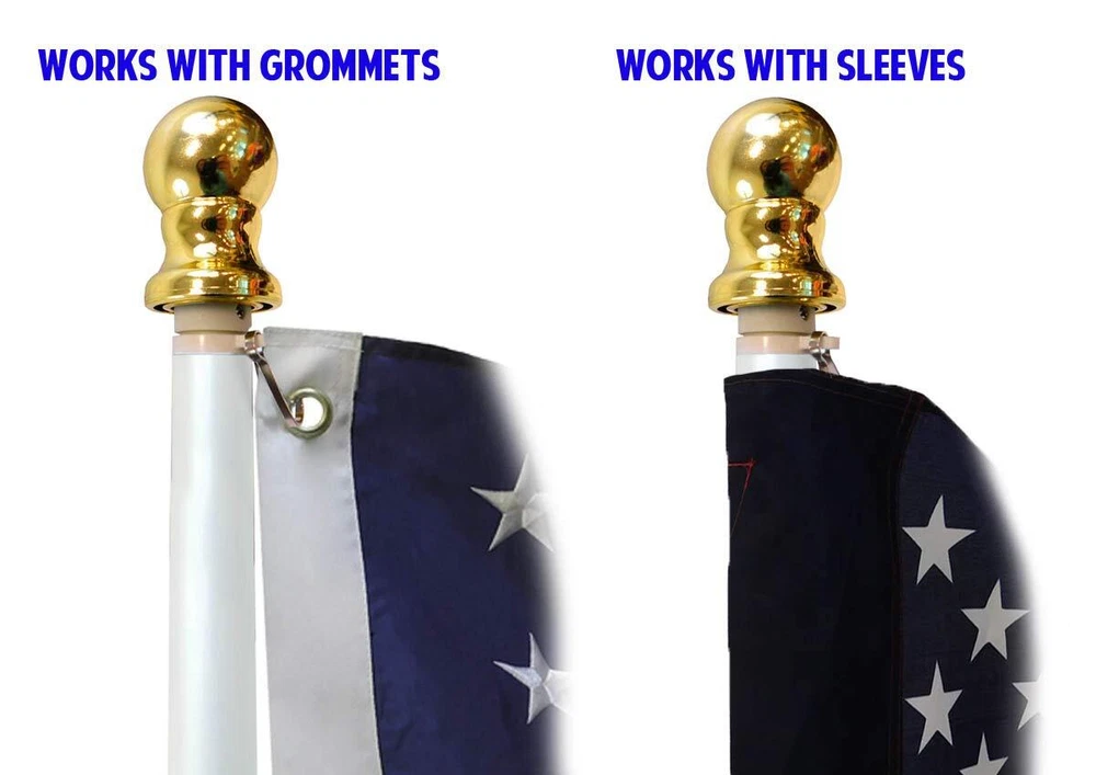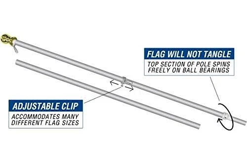 6ft Spinning Stabilizer Pole – Silver 2 Section Aluminum Spinning Stabilizer Pole is 6 feet long with a 1-inch diameter and gold ball top and silver finish. These poles were recently upgraded from our previous model for strength and durability. they now include a mid-section ball joint so that the pole spins freely, and the flag never tangles. These Poles are for Wall mounting Only -- NOT for Flag Bases. Flag and mounting bracket sold separately.