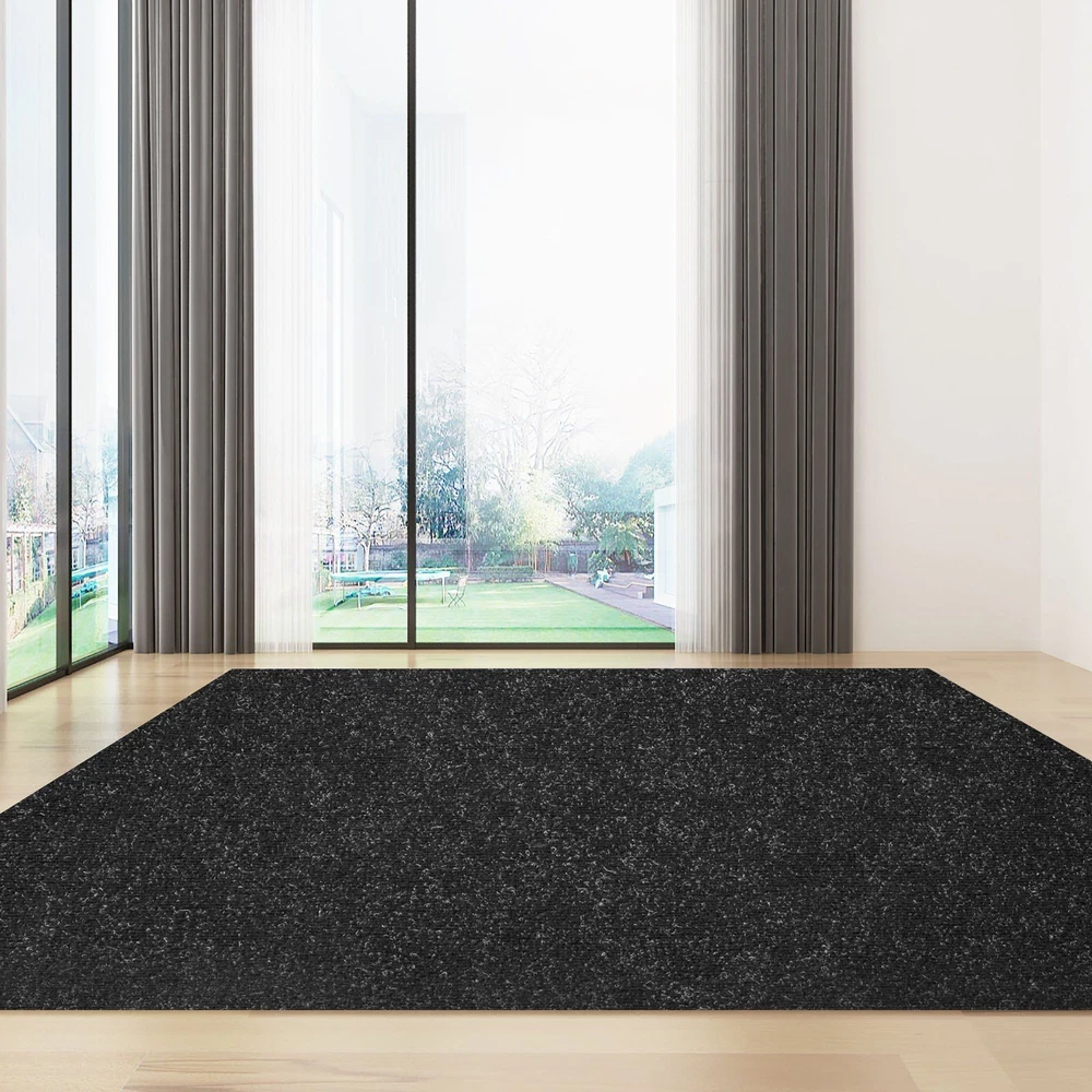 Feature: Premium Marine Carpet: Color: Black; Size: 6 x 29.5 ft (1.8 x 9 m); Carpet Thickness: 0.18 in (4.6 mm); Covering Area: 177 sq.ft (16.2 m²). Upgraded polyester fiber ensures our advanced marine carpet remains durable for years to come. Note: Different visual angles and lights would make the color looks various on the carpet. Non-slide Surface: Ribbed texture on the surface will add friction. With 0.17 in (4.5 mm) low pile height, this boat carpet not only avoids sliding but also keeps a soft feeling even when you walk on your bare feet. Water-proof Back: The backing of the outdoor carpet roll adopts soft rubber material, efficiently prevents water penetration, and doesn't scratch the floor. Thus, you no longer need to worry about corrosion after long-term use. Effortless Cleaning & Installation: Stubborn stains can be quickly cleaned with a vacuum machine. Thanks to its only 0.18 in(4.6 mm) thickness, you can easily cut the bass boat carpet into any shape to fit any space with scissors or utility knives, and then use glue to finish the installation. Indoor & Outdoor Use: Ideal for kitchens, bathrooms, living rooms, patios, porches, decks, boats, sun-rooms, basements, garages, etc. Our soft boat carpeting becomes a necessity for your daily decorations.
