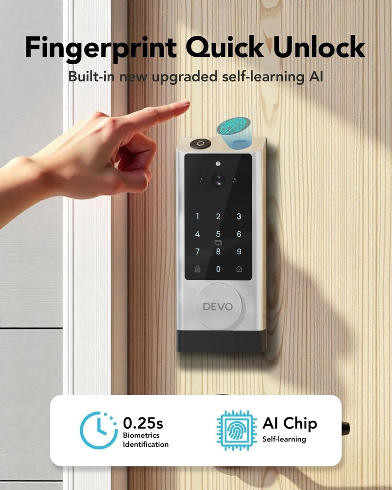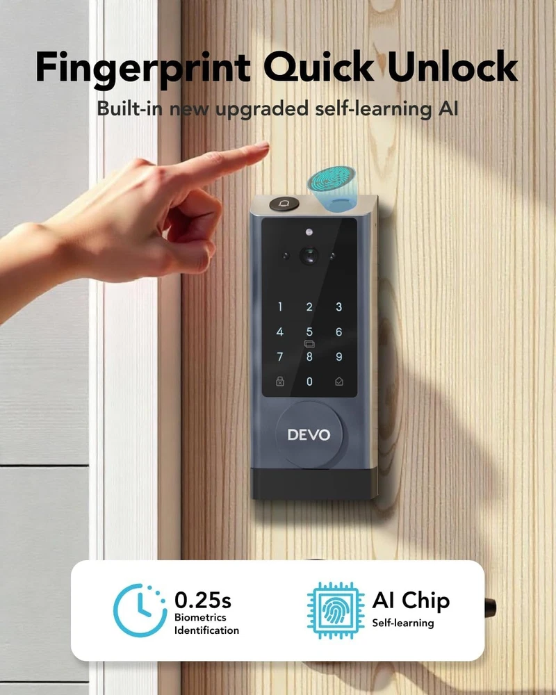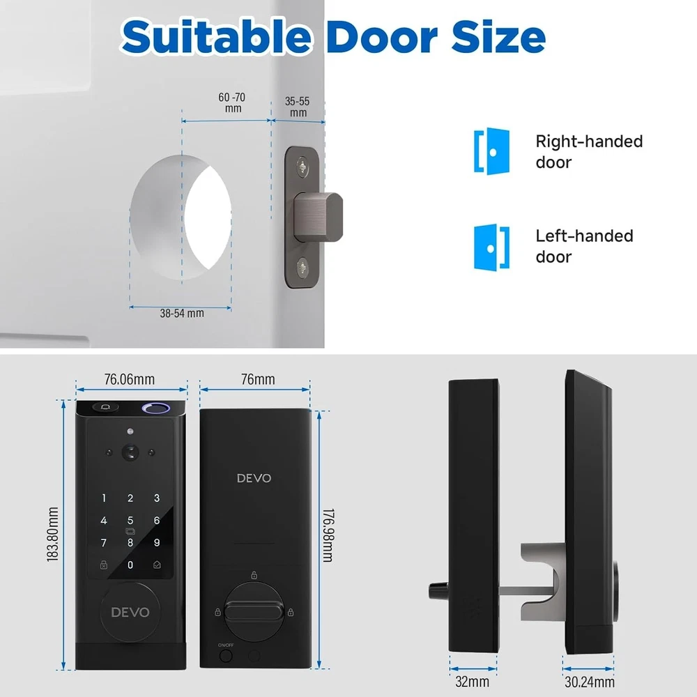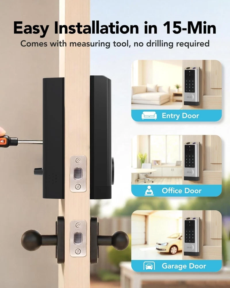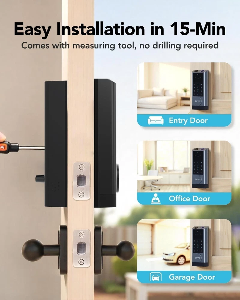 The 6-in-1 Upgraded Smart Lock is a keyless entry electronic lever door lock that allows you to program up to 30 user access codes that can be customized for family, friends or guests. It is easy to install, program and use, and it also features smart key security as a backup key slot. This entry lever can be locked or unlocked using a keypad or key on the outside and a rotary button on the inside. Combine the convenience of keyless entry with the highest residential security ratings and leading designs and finishes to enhance any door in your home. Perfect for a home office, storage room or interior garage door, the 6-in-1 Upgraded Smart Lock provides the right access solution to make your life more convenient, stylish and secure. Our smart locks are available in two styles - traditional and modern to match your home decor. In addition to this, our smart locks are available in three colors: Metallic Black, Premium Gray, Silver Gray. 【Wi-Fi Enabled】:6-in-1 Smart lock is a Wi-Fi-enabled door lock that connects directly to your home Wi-Fi network and smartphone for a secure smart home that does not require a third-party smart home hub, panel, or subscription 【APP Remote control】 Tuya APP, support Google Assistant, Amazon Alexa,Support remote unlocking and authorization, convenient for managing visitors or temporary users,Increase convenience.Receive notifications of your lock's activity and view the lock event history from your smartphone using the app for easy query and management 【Improve security】: Multiple unlocking methods (such as fingerprint, password, mobile phone App, etc.) Intercom, human body detection, automatic capture and upload to APP, automatic lock (timed anti-lock). Independent door Bell button, approach light reminder, automatic recognition of left and right door opening,reduce the safety hazards of traditional keys 【Multi-user management】: Support fingerprint, password or mobile phone authorization for multiple users, convenient for family members or employees,Switch between three entry modes: Multiple locking settings include ""Auto Lock"" (locks after every entry and exit), ""Passage"" (stays unlocked and no key or code required), and ""Disable Passage"" (for property managers, auto-locks every time and a key or code is always required for entry). 【SecureScreen&Digit Keypad&】Patented security feature for touchscreen deadbolts that prevents on-screen fingerprint user code identification by employing random digits prior to entering a personal user code,eypad deadbolt is backlit and comes with a dedicated one-touch locking button for keyless convenience"