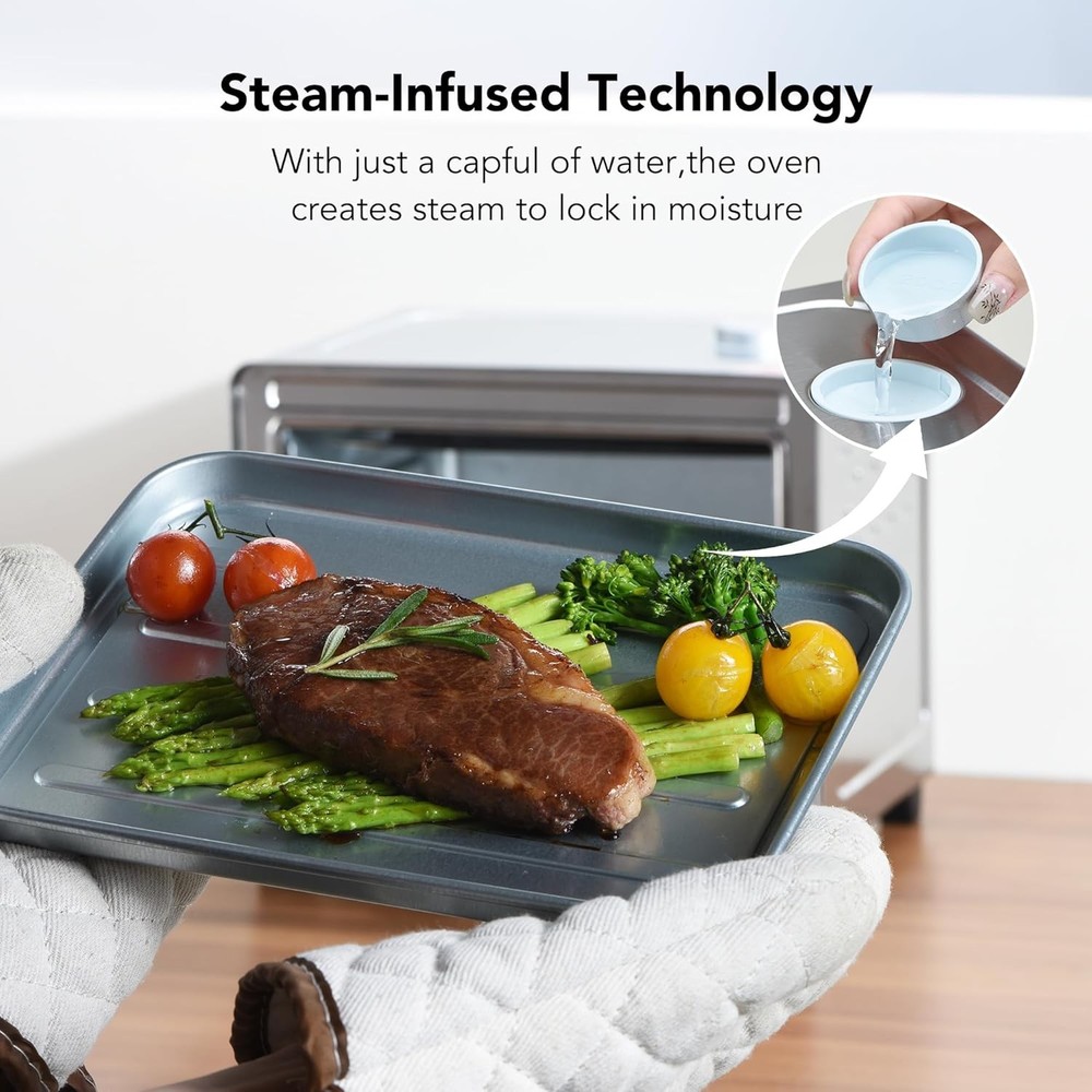 6-in-1 Air Fryer Toaster Oven Combo, 12.7 QT Stainless Steel Air Fryer with Steam Infusion, Mild Steaming Convection Toaster Oven with Fast Preheat, Air Fry, Grill, Bake, Broil, Heat Item Description About this item Multi-Purpose Cooking: The 6-in-1 air fryer combines air frying, baking, grilling, roasting and heating, along with steam technology, to achieve a crispy exterior and tender interior, perfecting the cooking of food Efficient Air Frying Technology: With all-round fast heat circulation technology and powerful fan, it reduces 75% of fat and oil in your food while maintaining its crispy texture, allowing you to enjoy healthy and delicious food with less fat intake Precise Temperature Control: The maximum temperature can reach 450℉, and the time setting range is 60 minutes, ensuring that you can set the right cooking temperature and time for a variety of foods Fast Preheating and Cooking: Reducing preheating time by 75% and cooking speed by 30% reduces waiting time and makes your meal time easier and faster Light Steam Injection Technology: The unique light steam injection function locks in the moisture of the food, enhancing the taste, aroma and texture of the food, bringing you a richer cooking experience Convenient Observation: The large transparent window design makes it convenient for you to observe the cooking status of the food at any time to ensure the cooking effect › See more product details Payment We accept payment only through PAYPAL Shipping We ship products worldwide through standard express courier service, it will reach within 7 to 10 days to abroad buyers, we ship the product after recieved clear payment and give full information about shipment to the buyer Return We accept product return within 14 days from delivery date but product should be in original condition, and the return shipping charges will be buyer responsibility.
