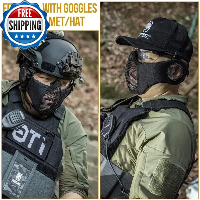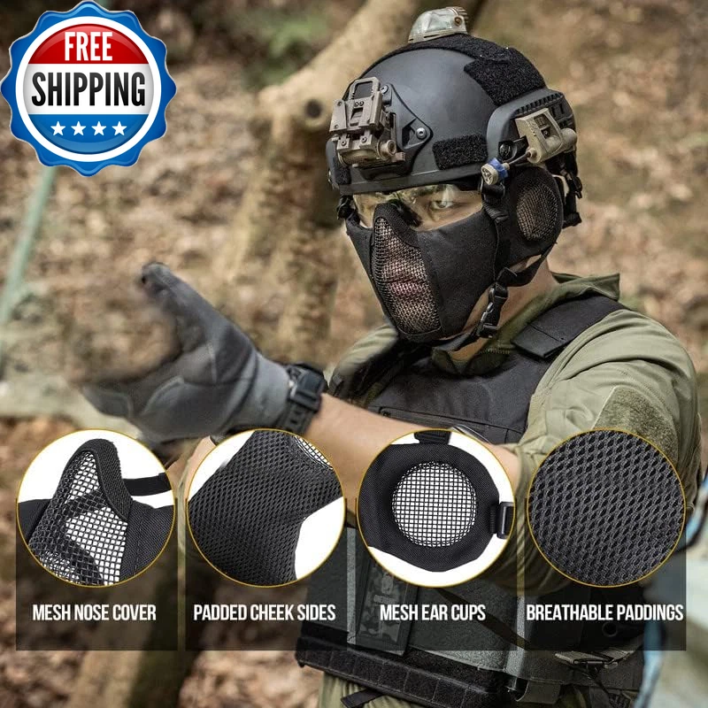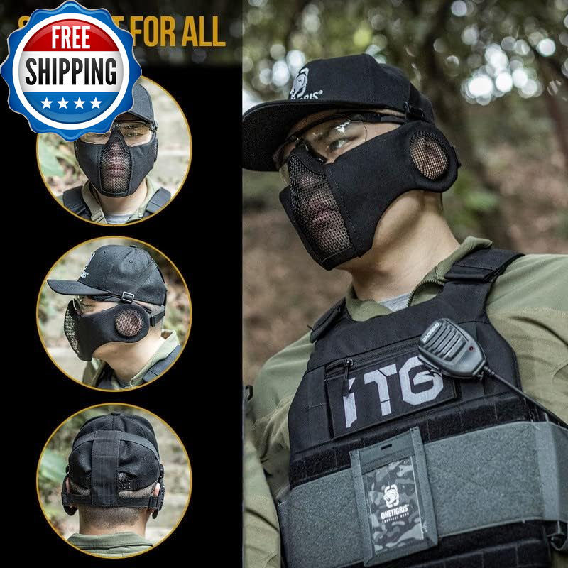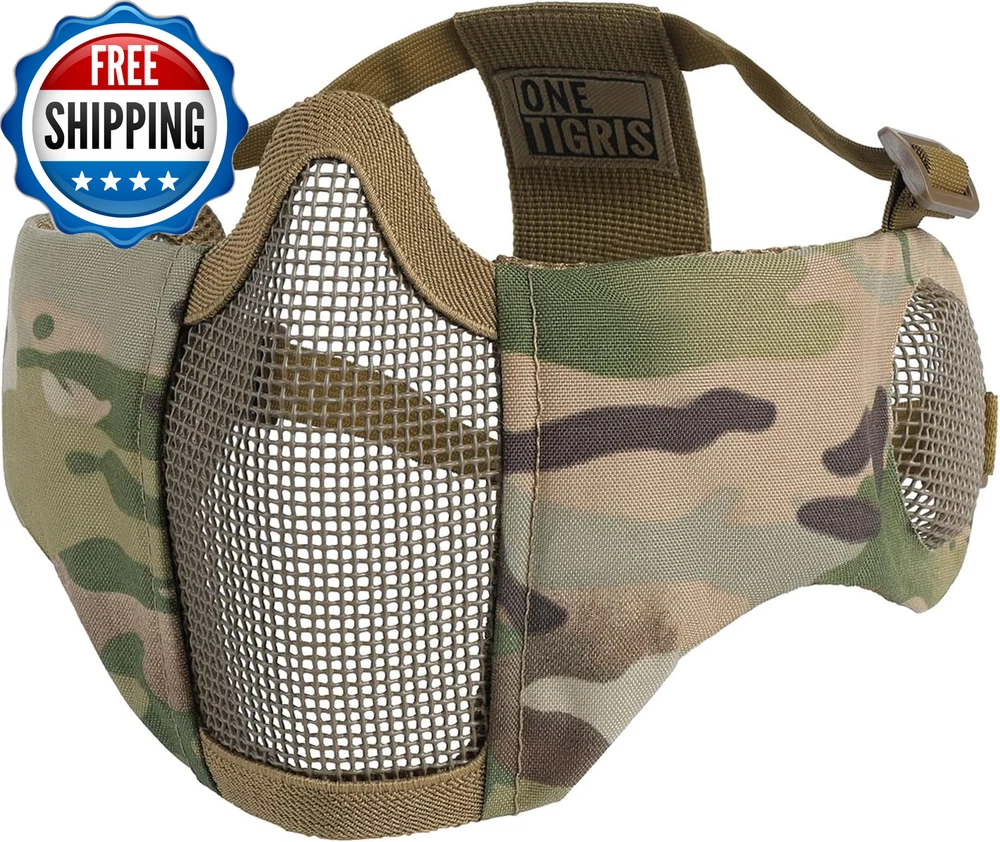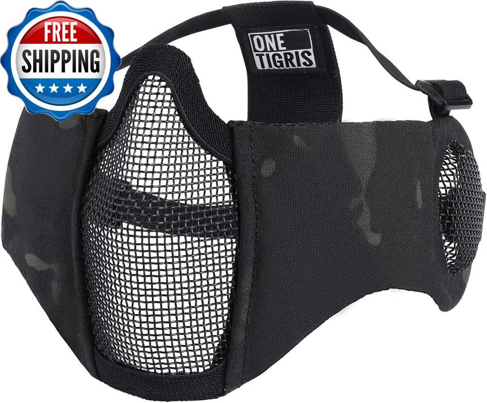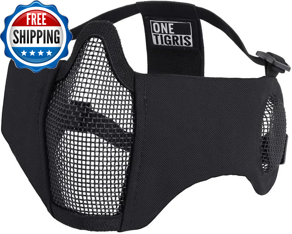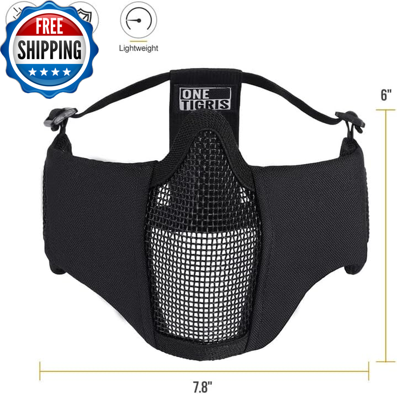 6" Foldable Half Face Airsoft Mesh Mask with Ear Protection, Military Tactical Lower Face Protective Mask OneTigris RAGE Foldable Mask: Mesh ear protector with adjustable straps, great for CQB matches Secure & Comfortable Fit: Soft padded nylon fabric cheek sides with protection for bridge of nose offering comfort and good protection Lightweight, Foldable & Portable Face Protection: No pressure points on user’s face for easy breathing and good ventilation One Size Fits Most: Twin strap support with skull cap band for a snug fit for different head sizes Strong Mesh Mask: Tested at 800FPS impact resistance at a temperature of -10°C to 42°C; 1000D Nylon for extra durability and good water/dirt-resistance Product Description Why choose OneTigris RAGE Foldable Airsoft Mesh Face Mask with Ear Cover? The video showcases the product in use. The video guides you through product setup. The video compares multiple products. The video shows the product being unpacked. Another one of our Airsoft series half-face mesh mask offering excellent ventilation and protection during game play, only this one has additional ear protection designed for close quarters battles. Tested at 800FPS impact-resistance, this mesh mask is the guy to rely on for the coming games. Easy storing Lightweight & Foldable Mask Folds down enough to fit in a cargo pocket For Someone Into Airsoft! Protective Mask for Airsoft Strong durable metallic mesh protects your face and ears from being hit by BBs. Half Face Mask for Protection Adjust the head straps to make it comfortable and secure. Airsoft Mask for Lower Face You won't have any problems wearing earbuds with this mask. Adjustable Tactical Mesh Mask Provides bridge of nose offering comfort & good protection. Ready to Be Shot in the Face Worry about a BB hit you in the ear? It will not happen again if you wear this mask with ear protectors. Looking for one mask that can fit with goggles? This mask works well with goggles and also prevents fog issues with the mesh. Explore More Ways to Protect Your Lower Face Add to Cart Add to Cart Add to Cart Add to Cart Add to Cart Customer Reviews 4.5 out of 5 stars 2,686 4.4 out of 5 stars 759 4.4 out of 5 stars 1,524 4.3 out of 5 stars 1,054 4.5 out of 5 stars 616 4.5 out of 5 stars 616 4.7 out of 5 stars 4 Price $19.99 $ 19 . 99 — $19.19 $ 19 . 19 $23.98 $ 23 . 98 $26.98 $ 26 . 98 $26.98 $ 26 . 98 — Mask Material Steel & Nylon Steel & Nylon Steel & Nylon Polyamide Steel Mesh, Nylon, PVC Patch Steel Mesh, Nylon, PVC Patch Steel Mesh, Nylon, PVC Patch Length 9.8"/25cm 9.8"/25cm 9.8"/25cm 9"/23cm 10.8"/27.5cm 10.8"/27.5cm 10.8"/27.5cm Height 5.7"/14.5cm 5"/13cm 5.7"/14.5cm 12.6"/32cm 6.3"/16cm 6.3"/16cm 6.3"/16cm Weight 5.29oz/150g 3.1oz/90g 3.3oz/94g 3.8oz/110g 5.1oz/146g 5.1oz/146g 5.1oz/146g Protection Coverage Lower Face & Ears Lower Face Lower Face Lower Face & Neck Lower Face Lower Face Lower Face Department Men Women & Teens Men Men Men Men Men Applications Airsoft/Paintball/Wargame/CS Airsoft/Paintball/Wargame/CS Airsoft/Paintball/Wargame/CS Airsoft/Paintball/Wargame/CS Airsoft/Paintball/Wargame/CS Airsoft/Paintball/Wargame/CS Airsoft/Paintball/Wargame/CS Foldable ✔ ✔ ✔ ✔ ✔ ✔ ✔ Adjustable ✔ ✔ ✔ ✔ ✔ ✔ ✔ Closure Type Elastic Warranty Description 1-Year Warranty Sport Airsoft Item Dimensions LxWxH 5 x 5 x 0.7 inches Part Number TG-ZMJ05 Color Black Included Components Tactical Mask Product Dimensions 7.8"L x 6"W Material Steel Mesh, Nylon Fabric Style Military,Portable Package Weight 0.2 Kilograms Item Weight 150 Grams Suggested Users unisex-adult Strap Type Head Strap Model Name Tactical Mask Age Range (Description) Adult Size Free Size (One Size) Item Package Dimensions L x W x H 6.02 x 5.98 x 2.48 inches Shipping Fast shipping is very important for us. Our standard US shipping service is FREE. Your order will be shipped within 2-3 business days upon full payment received. Your order will be delivered within 2-3 business days after the handling time. We only ship to the confirmed PayPal address. We reserve the right to cancel any order for any reason at any time. We are not responsible for undeliverable addresses. Returns and payment We offer a 30 days return policy from checkout winning date. We allow only PayPal as payment method FeedBack Your feedback very important to us, after you get your package and you are satisfied with our service please leave us positive feedback If you have any problem with your order / any questions please before leave any type of feedback Please visit our eBay store to check out other items for sale! Thank you for shopping at our store.