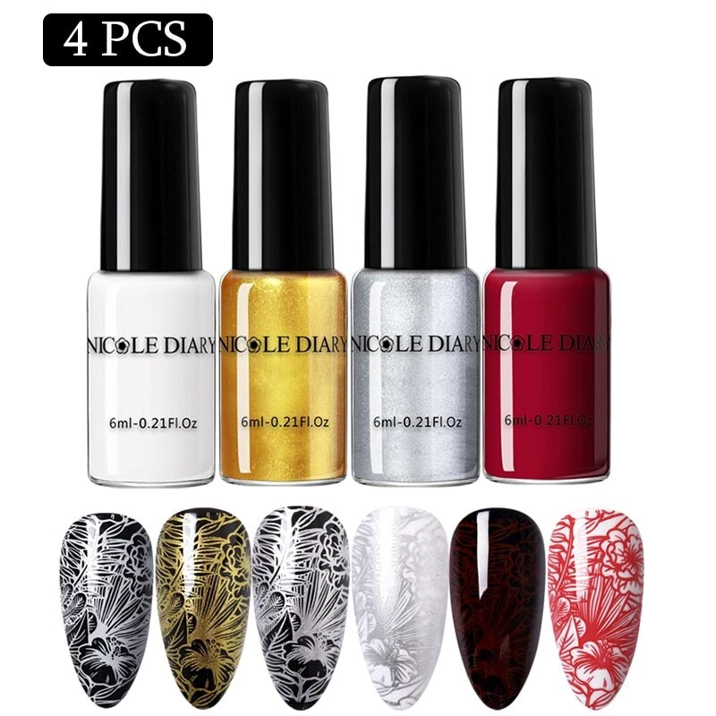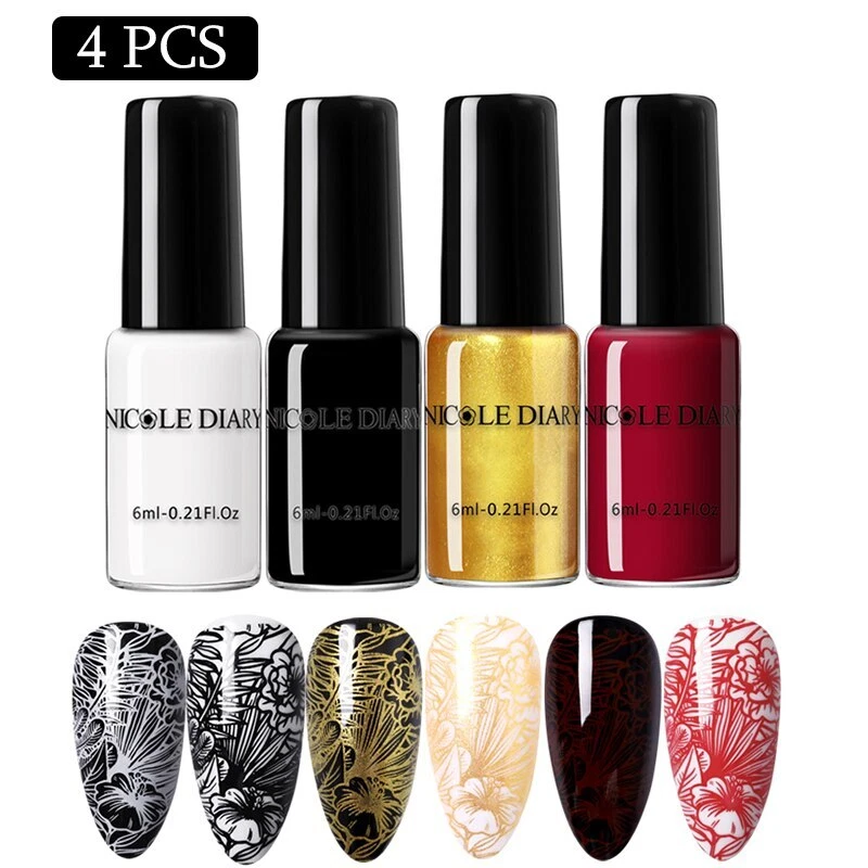 Specification: Capacity: Approx. 6ml Color: As the picture shows Package Contents: 2/4/5/6 Bottles 6ml NICOLE DIARY Stamping Polish Feature: Special nail polish for nail art stamping and printing colors. Superior Quality and brand new merchandise. Simple to use: Shake or stir very well before use. Attractive Color. Dry fast. Payment Delivery details Returns Contact Us Feedback Payment 1.We accept PayPal only. 2.Payment must be received within 7 business days of auction closing. 3.We ship to your eBay or Paypal address. Please make sure your eBay and Paypal address is correct before you pay. Delivery details We try our best to ship out same day for payment cleared before 5.00 PM (Pacific Time) , Order placed on weekend or holiday will be shipped on Monday or next working day. Below is the approximate delivery time to different countries (just estimated, not guaranteed): 7-25 working days to buyer in USA. Returns 1.We offer 30 days return policy. Please contact us within 30 days from the date you receive your order if you have any issues with the product and want to return. 2.All items must be returned in the original packaging and you must provide us with the tracking shipping number, specific reason for the return, and your eBay ID. 3.We will refund you FULL WINNING BID AMOUNT, upon receipt of the item in its original condition and packaging with all components and accessories included, AFTER BOTH Buyer and Seller cancel the eBay transaction. Or, you can choose to get a replacement. Contact Us All communication is done through EBAY MESSAGES ONLY. If any question, please feel free to contact us via "Ask seller a question" or "Contact Seller",We try our best to reply to your emails as soon as possible, due to high volume of daily incoming emails and time zone difference, we may not be able to reply your emails immediately. Please allow 1-2 business days for us to response. Feedback Feedbacks: When you receive the item and satisfied with the product, please leave us positive feedback. If for any reason you are not satisfied with your purchase from us, please contact so we can get to work and resolve this issue for you. Please don't leave neutral or negative feedback without giving us an opportunity to try and make it right. Our goal is to ensure a happy shopping experience with us. Your Positive feedback is very much appreciated!