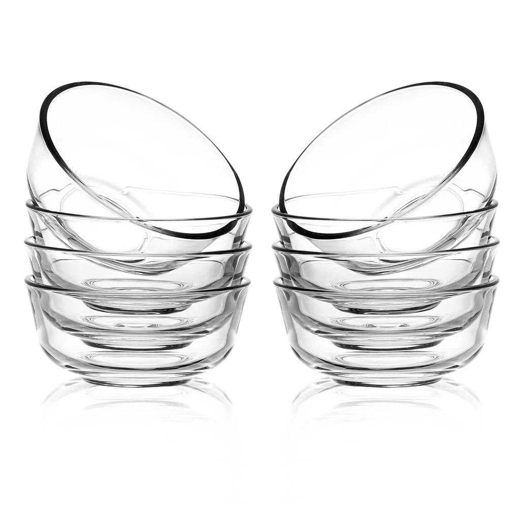 Practical handy bowls for kids and pets - It holds 8 oz top to the rim. Perfect for ice cream, dessert, fruit, meal prep, small snacks, dipping sauces, leftovers and more. Made by glass material, lead free, BPA free, Can contact food directly, Dishware safe, easy to clean up.It will not warp, stain, retain smells, or leach dangerous chemicals into food. Stylish designs, our bowls can be coordinated with your all kinds of tableware. the rice bowls can also let you put on a nice food presentation as you like. Include 6 Packs 8 oz Mini Glass Bowls, It will make your meal preparation so much easier by being able to clearly keep track of all ingredients at once. Easy to Clean & Stack: Dishwasher safe ; You can wash them with cleanser or put them into your dishwasher. Bowls stack compactly and free up enough space for other dining set in the kitchen cabinet.