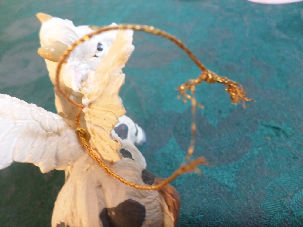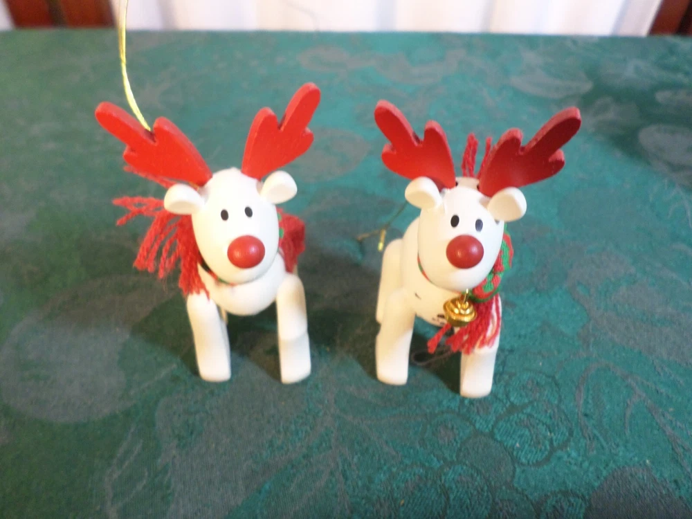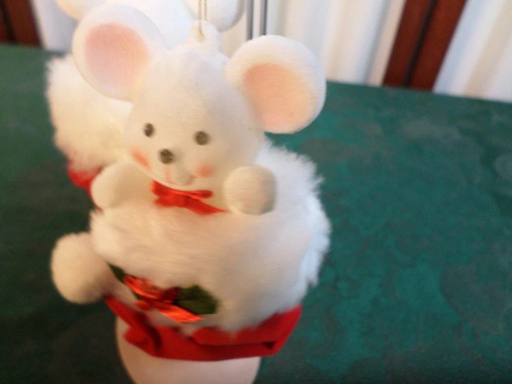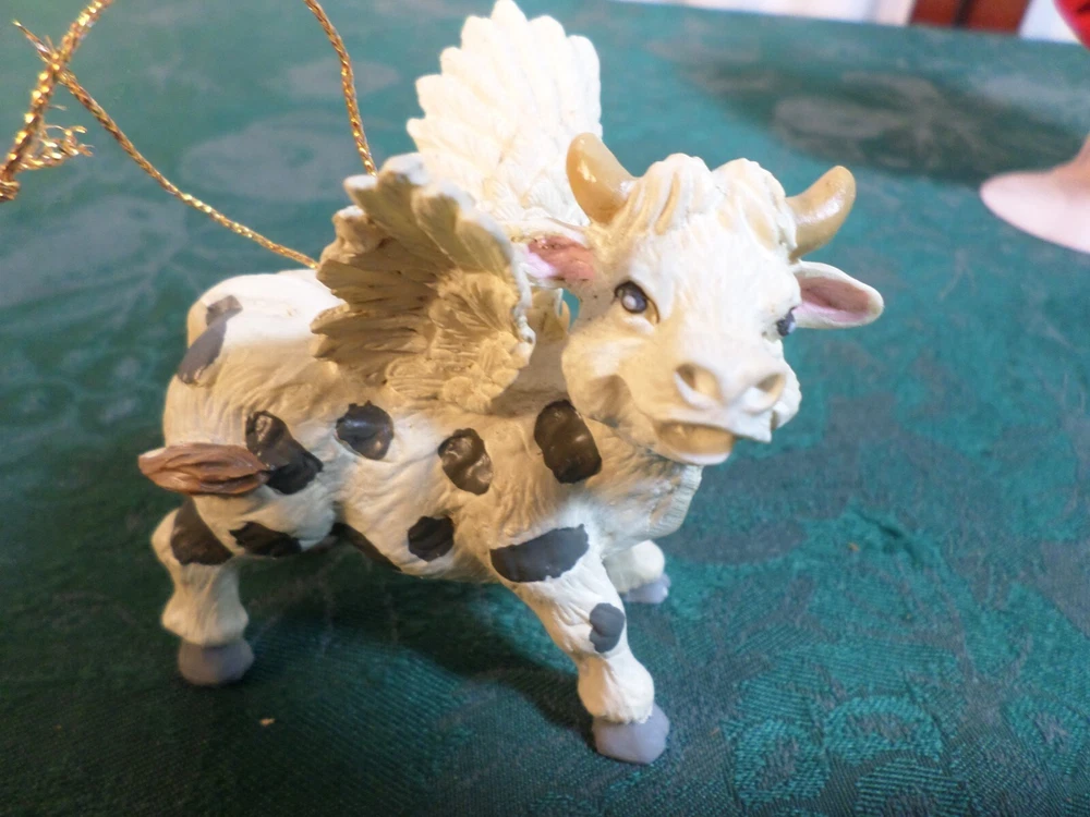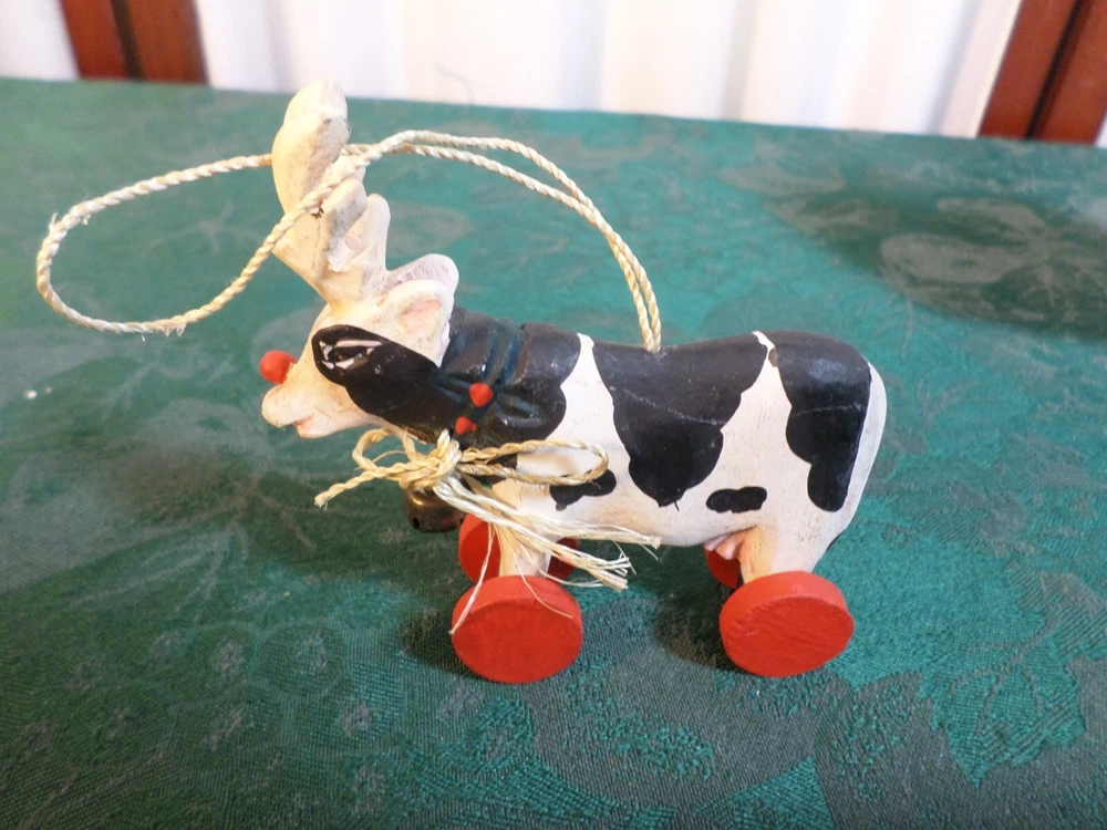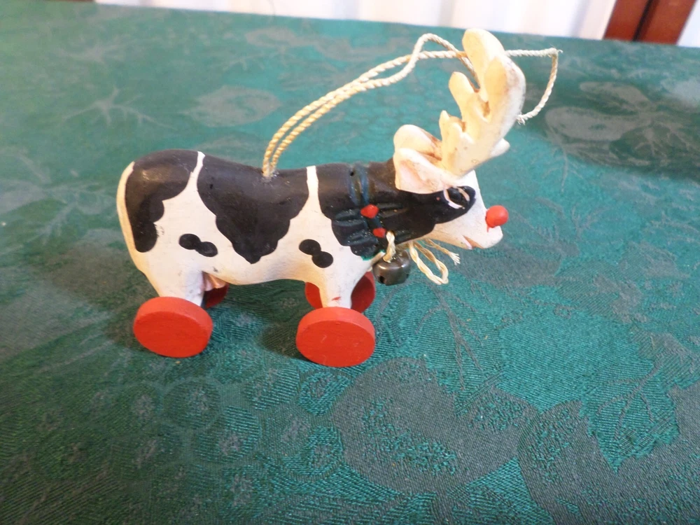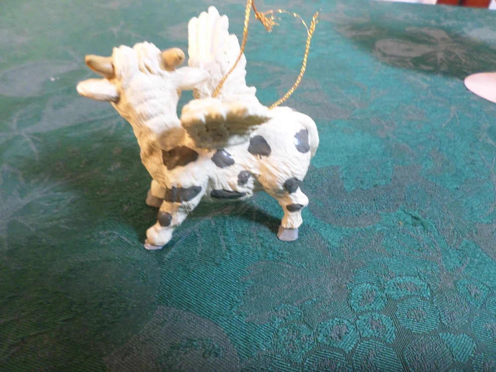 This is an adorable six piece set of animal designed ornaments. The set consist of: 2 - wooden reindeers done in white and red colors, 2 - plush mice in Santa's hat, 1 - Holstein cow with wings, and 1 - wooden Holstein cow on wheels dressed as Rudolph. They are unmarked. All being sold for one money in good condition. Stand not included. Buy more than one item and I will combine items to save on shipping charges!!!! All items are used unless otherwise stated. Therefore, they are sold strictly AS IS - AS FOUND. If you have any questions about an item, please email well in advance of the end of the auction. Be assured that I do take every caution when wrapping items. I like to wrap them how I would like to receive them myself. High bidder pays all shipping cost. Payment must be received within 5 days of auctions end. Please ask all questions before auction ends. Please visit my other auctions. Happy Bidding!!!