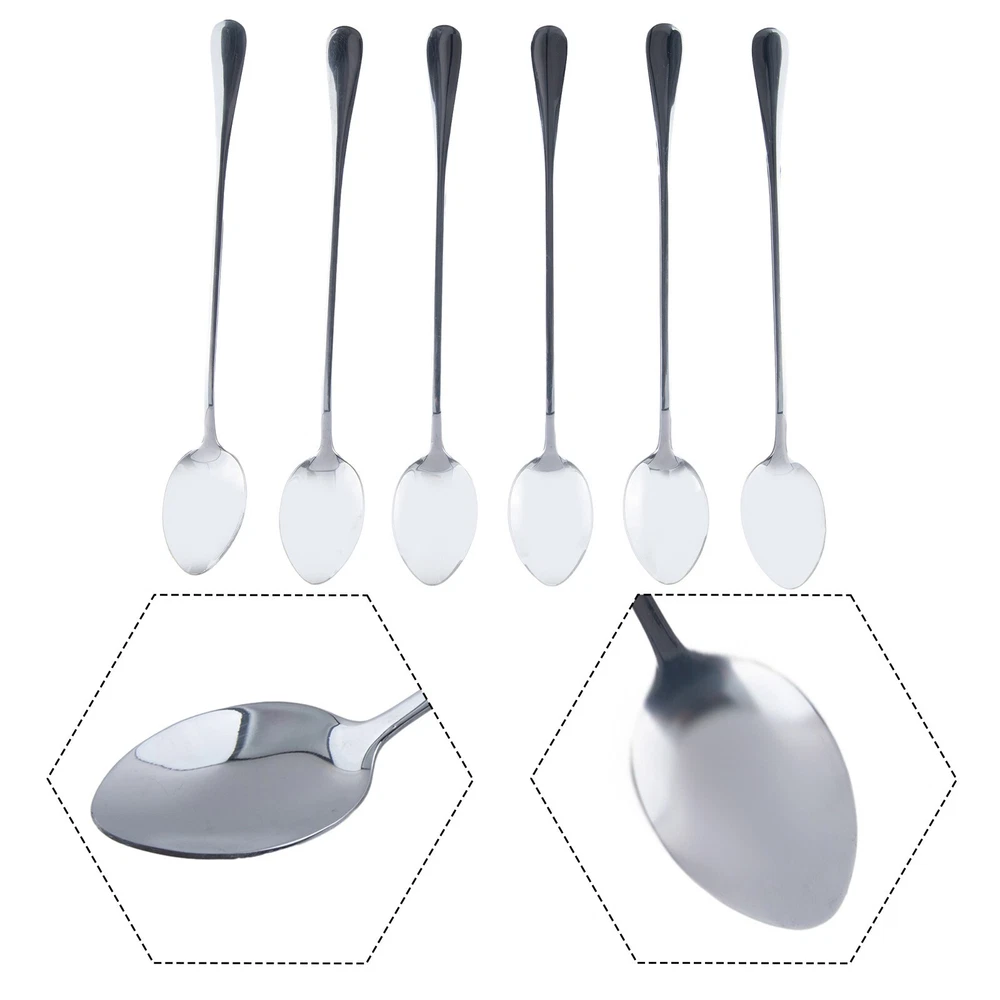 6pc Long-Handle Stainless Steel Spoon Teaspoons Cocktail Dessert Ice Cream Latte DESCRIPTION Features: * brand new and high quality. *Made of Polished high quality stainless steel *Working ends are modern, functional, and comfortable *Round the front for spoon design, Oriental style. Better mood to eat. *The spoons not just for rice and soup, but also cereal, stew, chili, ravioli, and desserts Specifications: *Material: Stainless Steel *Size: 19.5*2.8cm *Color: Silver (as picture shows) Package Contents: 6*stainless steel spoon Note: 1. The real color of the item may be slightly different from the pictures shown on website caused by many factors such as brightness of your monitor and light brightness. 2. Please allow slight manual measurement deviation for the data. POLICES Shipping Payment WARRANTY We only ship to confirmed ebay Order addresses. Please comfirm that your Order address is in line with your shipping address. Please kindly note that the c ombined shipping is not provided because the shipping fee is calculated by weight. Also, the each additional item means exactly the the same color and size. It takes about 7 -15 working days to US; about 10-30 working days to other countries. Transit time may be a little delayed because of the bad weather and customs inspection . If you do not receive your item within 30 working days since payment finished, please contact us immediately for further assistance. Payment must be completed within 5 days. If you have any problems about payment, please contact us via ebay message. We strive for 100% customer satisfaction! Positive Feedback is very important to us. If you have any questions, p lease feel free to contact us via "Ask seller a question" . We will reply your email within 24 working hours.