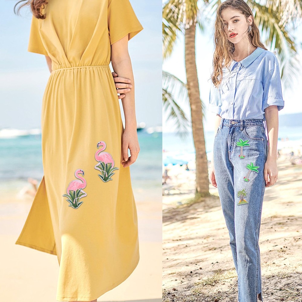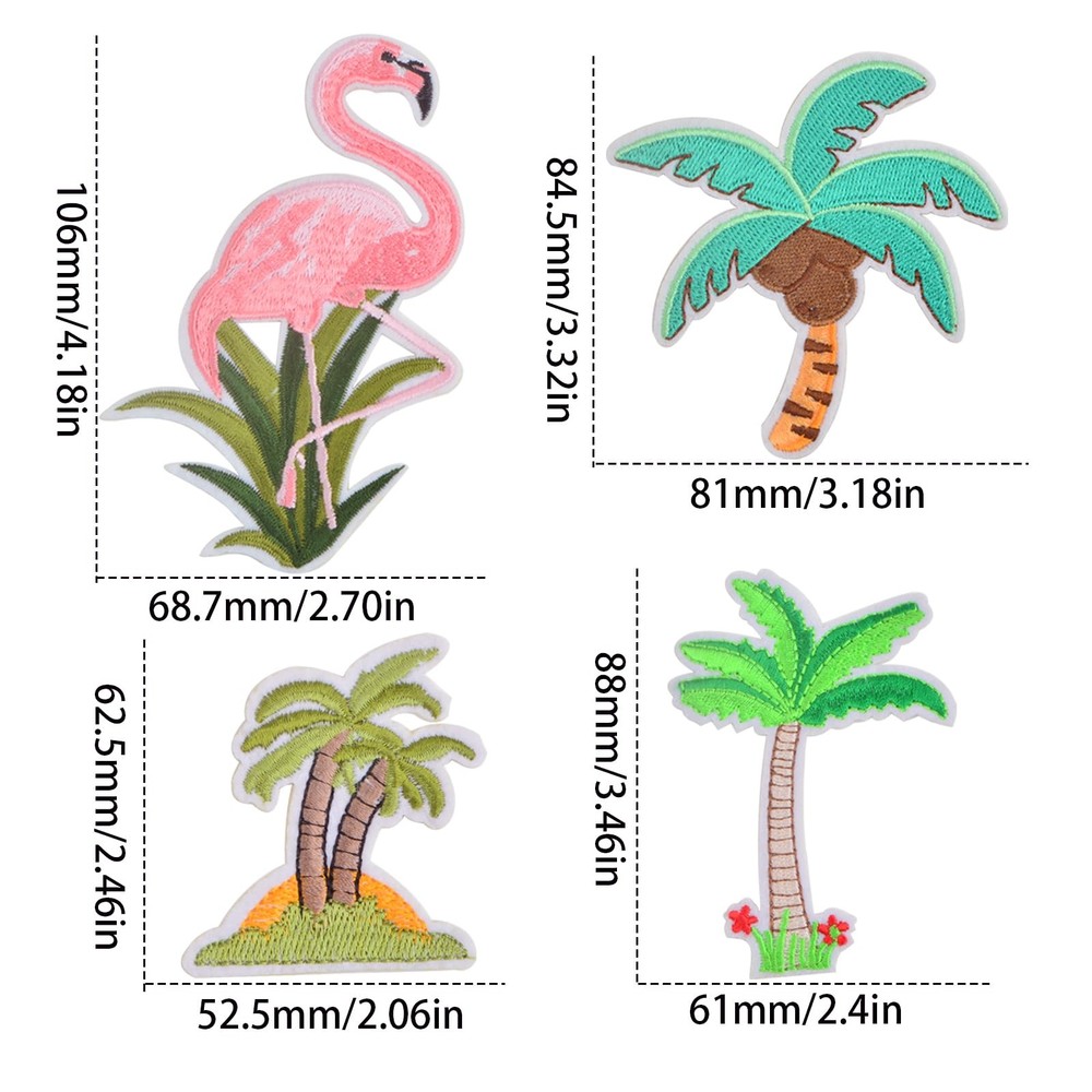 Specification: Material: cotton Color: as picture shown(mainly green and pink) Size: as picture shown Package Content: 6pcs Coconut Tree Embroidered Patches(3 styles, each style 2pcs) 1 Pair Flamingo Embroidered Patches Features: EASY TO USE: Our decorative repair patches are simple to use. Cover the patch with dry cloth/teflon, set iron to "COTTON", then iron with temperature of 100-150 degrees for about 10-30 seconds. It is recommended to sew the patch after ironing if you want them to be firm and never fall off. IDEAL DIY GIFTS: Our summer embroidered patches are nice supplies for making gifts. You can use these applique patches for clothing repair, or to customize your gifts and decor your house to show your own personal style, you also can use them to diy products and take them as gifts to family or friends. PACKAGE DETAILS: You will receive totally 6pcs coconut tree iron on patches (3 styles, each style 2pcs), and 1 pair of flamingo embroidery applique patches, enough styles will meet your decoration and replacement needs. RELIABLE MATERIAL: High quality embroidered with hot melt adhesive on the back, easily iron on or sew on; will not easily break or fall off in actual use; Smooth workmanship can also bring you a comfortable touch. COCONUT TREE AND FLAMINGO: Our patches are designed with cute coconut tree and flamingo bird patterns, perfect for diy motif clothing repair accessory decoration, embroidered cotton material, with hot melt adhesive on the back, easy to iron. REPAIR ACCESSORY DECORATION: Suitable for various clothing and can be used as decorative patches on clothes, perfect for diy clothing, embroidery, etc. The exquisite workmanship and vivid patterns make your clothes more attractive. WIDE APPLICATION: You can use these beautiful patches to cover broken holes or decorate clothing and the bright colors and special patterns make them more attractive. Suitable for jacket, jeans, shirts, hats, shoes, school bags, kid's clothing, trees or cactus lovers, diy art craft projects making, etc.; to make you special and unique.
