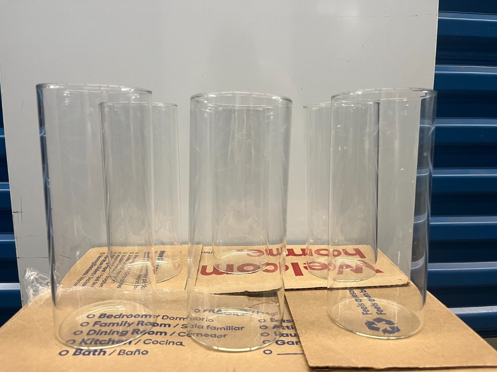 Set of 6 clear vases that can be used for flowers or other decor purposes. I personally used them as wedding center pieces to hold water with a floating candle. Only been used for one event. Material Glass Product Dimensions 3.4"L x 3.4"W x 8"H Shape Cylinder