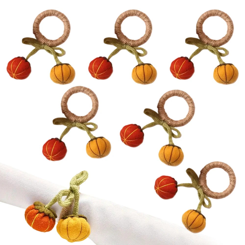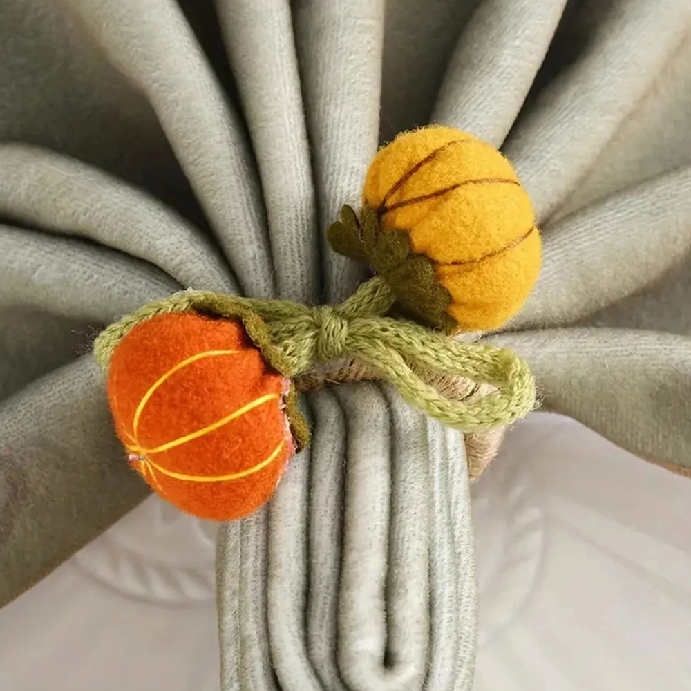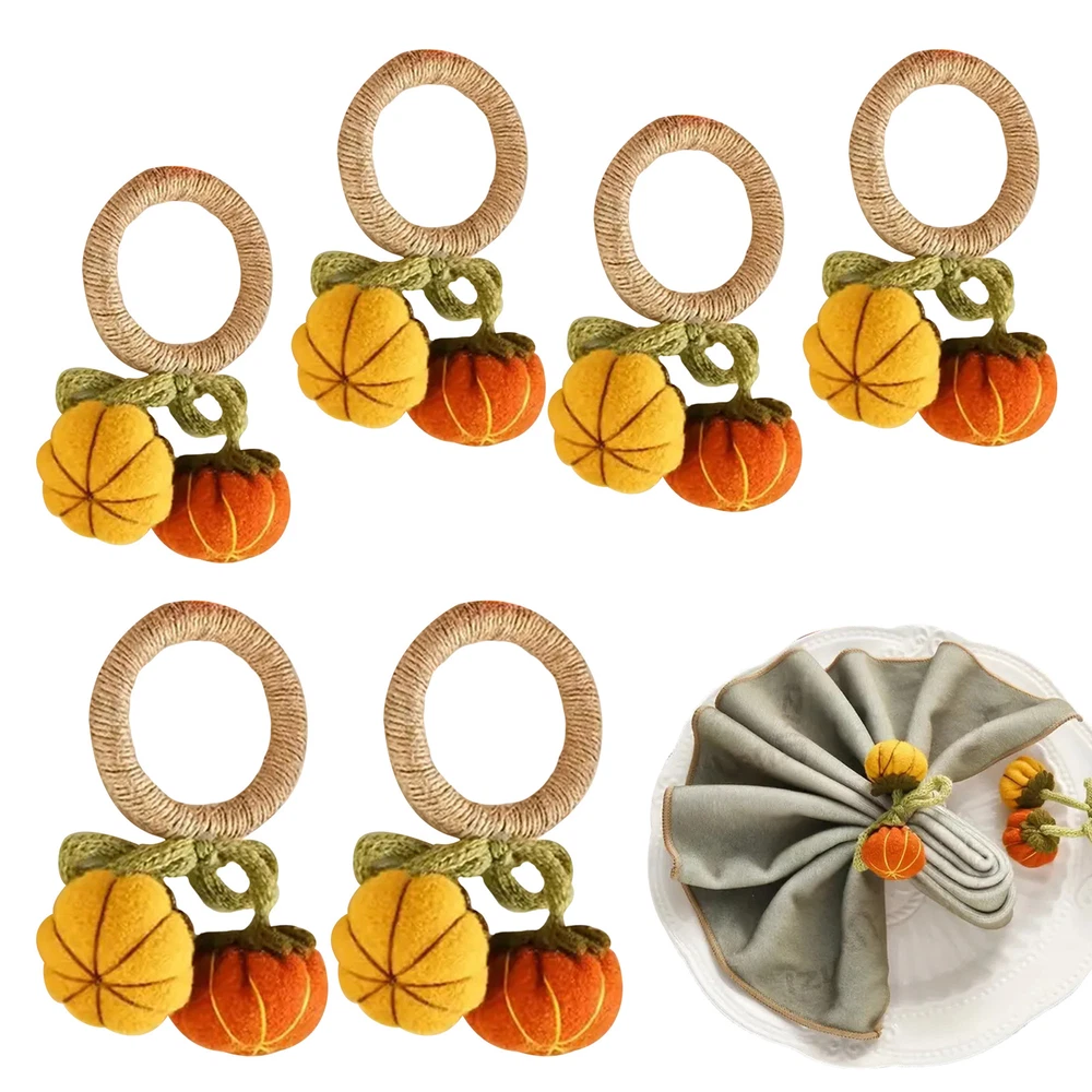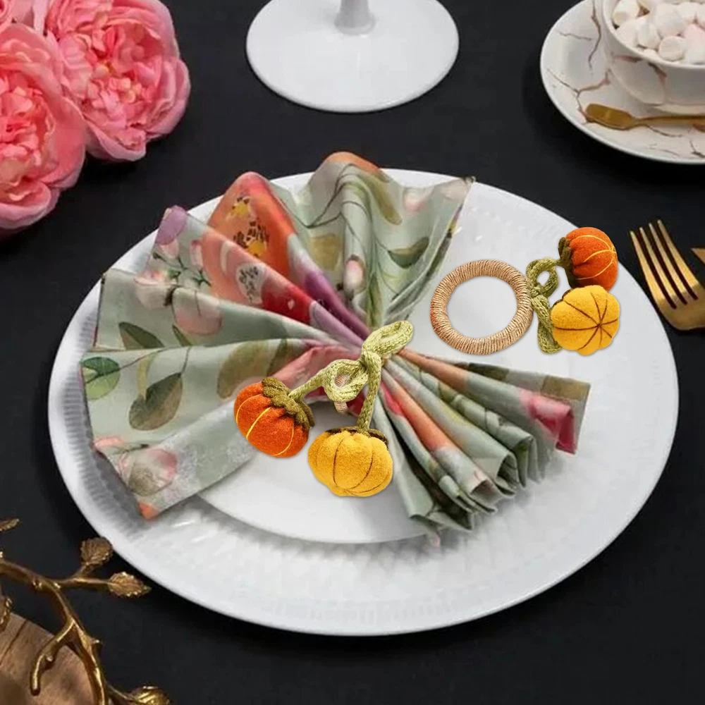 Bullet Points: Enhance Atmosphere: Delight your guests with Pumpkin Napkin Rings' unique design that adds a touch of warmth to your dining environment with charming pumpkin motifs and vivid colors Exquisite Workmanship: Finely crafted with clear details, these napkin rings feature a realistic pumpkin appearance that will complement any home decor beautifully Assured Durability: Made with the perfect quality materials, these pumpkin napkin rings are built to last and won't easily tear or break, ensuring long-lasting use and timeless appeal Wide Range of Applications: These pumpkin napkin rings are perfect for adding a festive touch to any autumn-themed wedding party or harvest gathering. They also work perfectly for enhancing Thanksgiving celebrations with their charming design Ideal Present: Add a touch of festivities to your Thanksgiving or autumn dinner with these Pumpkin Napkin Rings. They make a perfect present for family and friends, enhancing the atmosphere and making the occasion more memorable Add a touch of autumn to your dining table with these pumpkin napkin rings! The intricate pumpkin design makes them the perfect complement to any home decor. Made with high-quality materials, these napkin rings are perfect for parties and make a great present. Specifications: Weight: 13g Diameter of napkin ring: about 5cm/1.97 inches Material: knitted + pp cotton + felt + fiber Product List: 6 * Pumpkin Napkin Rings Notes: Due to different lighting and screen settings, the product color may be slightly different from the picture. Due to the difference in manual measurement, please allow a 1-3cm difference in size.
