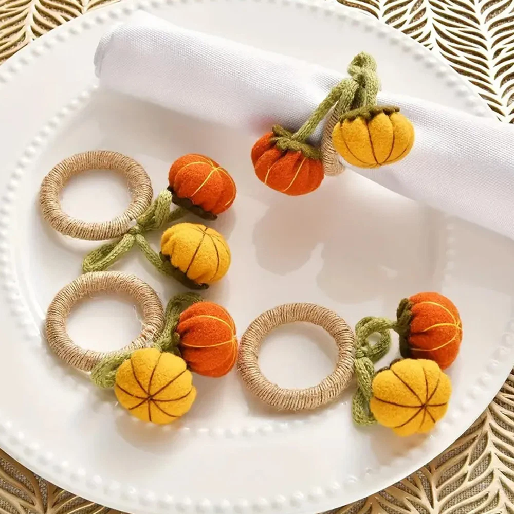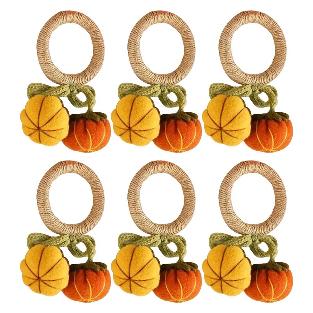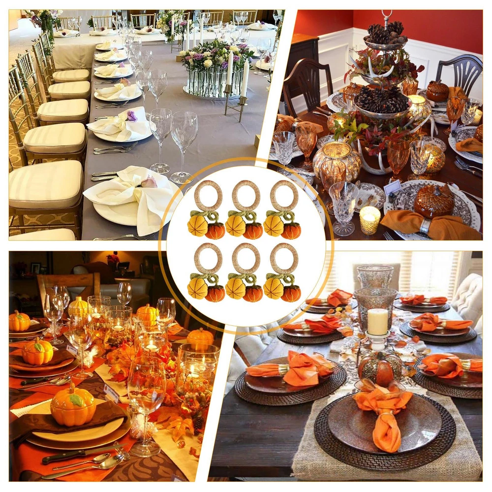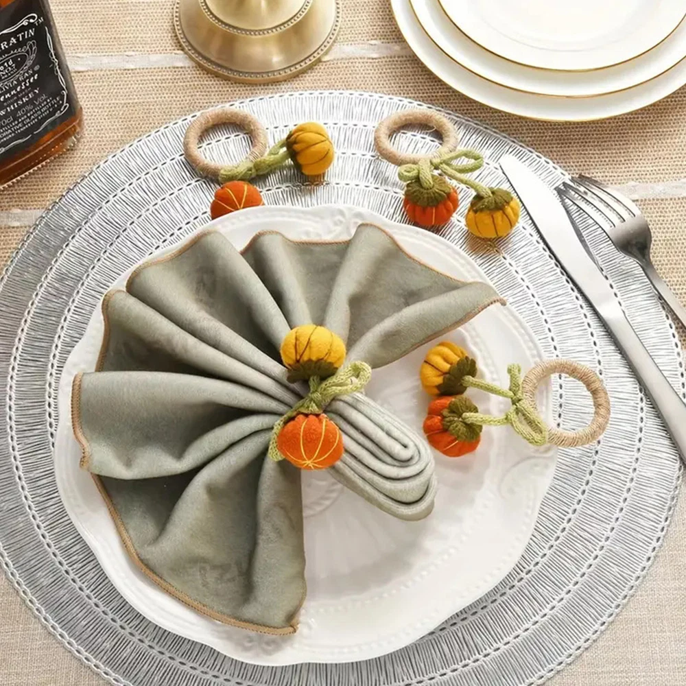 Bullet Points: Enhance Atmosphere: Delight your guests with Pumpkin Napkin Rings' unique design that adds a touch of warmth to your dining environment with charming pumpkin motifs and vivid colors Exquisite Workmanship: Finely crafted with clear details, these napkin rings feature a realistic pumpkin appearance that will complement any home decor beautifully Assured Durability: Made with the perfect quality materials, these pumpkin napkin rings are built to last and won't easily tear or break, ensuring long-lasting use and timeless appeal Wide Range of Applications: These pumpkin napkin rings are perfect for adding a festive touch to any autumn-themed wedding party or harvest gathering. They also work perfectly for enhancing Thanksgiving celebrations with their charming design Ideal Present: Add a touch of festivities to your Thanksgiving or autumn dinner with these Pumpkin Napkin Rings. They make a perfect present for family and friends, enhancing the atmosphere and making the occasion more memorable Add a touch of autumn to your dining table with these pumpkin napkin rings! The intricate pumpkin design makes them the perfect complement to any home decor. Made with high-quality materials, these napkin rings are perfect for parties and make a great present. Specifications: Weight: 13g Diameter of napkin ring: about 5cm/1.97 inches Material: knitted + pp cotton + felt + fiber Product List: 6 * Pumpkin Napkin Rings Notes: Due to different lighting and screen settings, the product color may be slightly different from the picture. Due to the difference in manual measurement, please allow a 1-3cm difference in size.