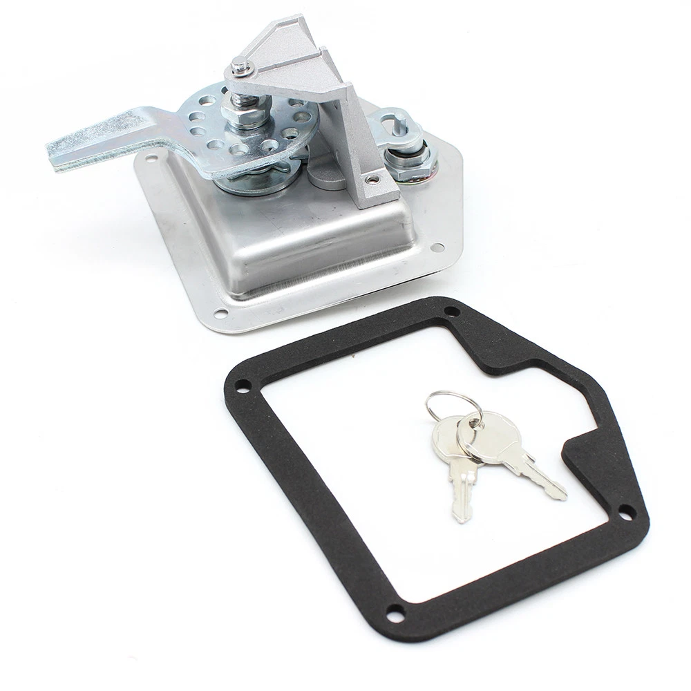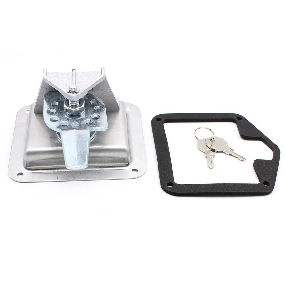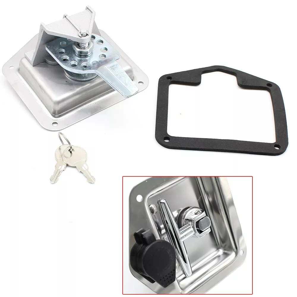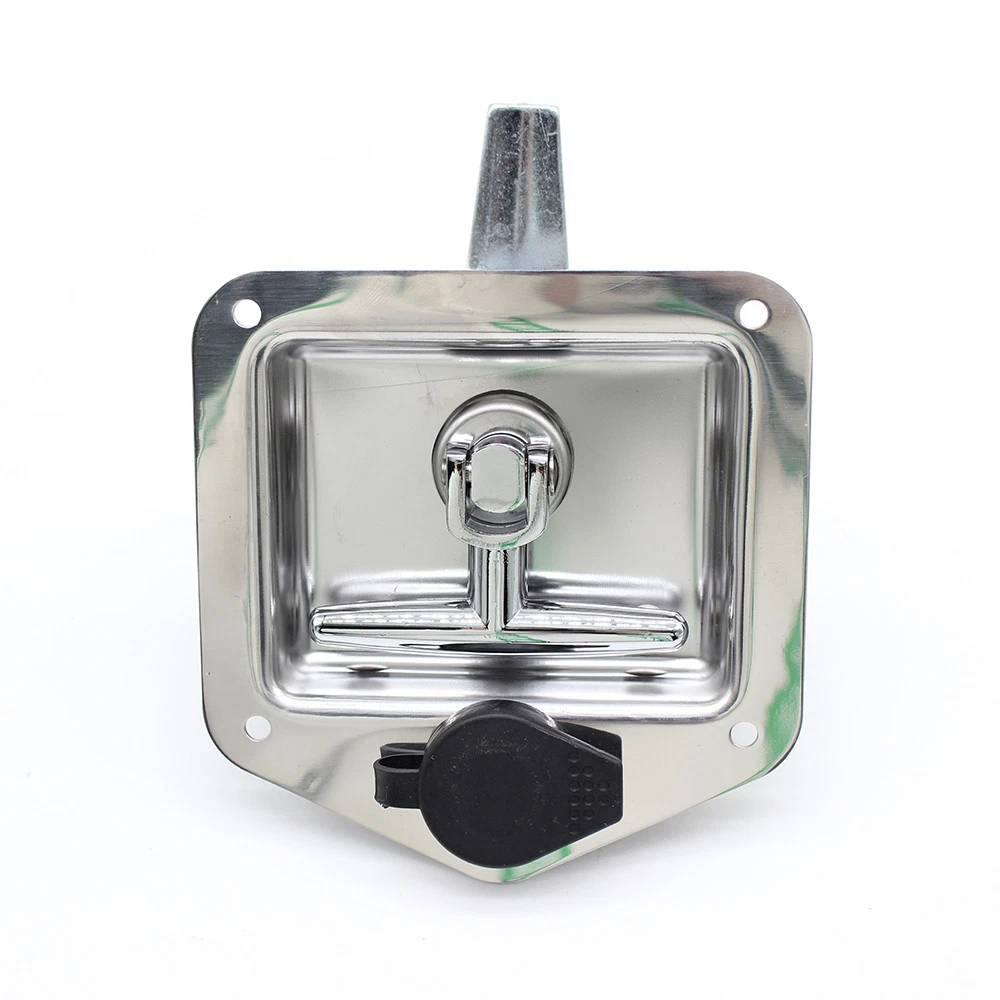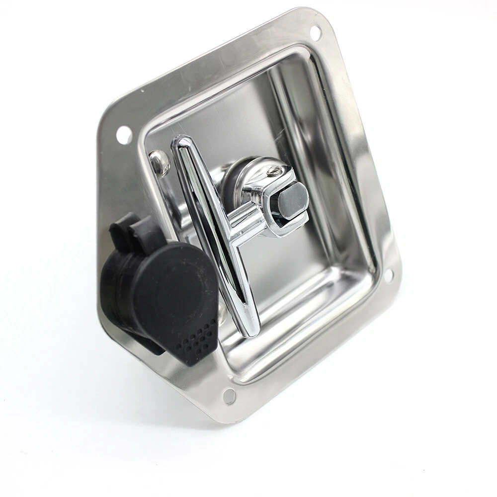 Brand: Unbranded/Generic UPC: does not apply Lighting Type: N/A Color: Silver Product Type: T HANDLE LOCK Type: Trailer Tongue Tool Box Manufacturer Part Number: Does Not Apply Feature: Adjustable depth Part Type: Accessories Country/Region of Manufacture: Unknown Exterior Part Type: Door Features: Adjustable depth bent up tongue, 4 mounting holes, flush mounting gtin13: does not apply Material: Stainless Steel Warranty: 2 Year Product Kind: Lock