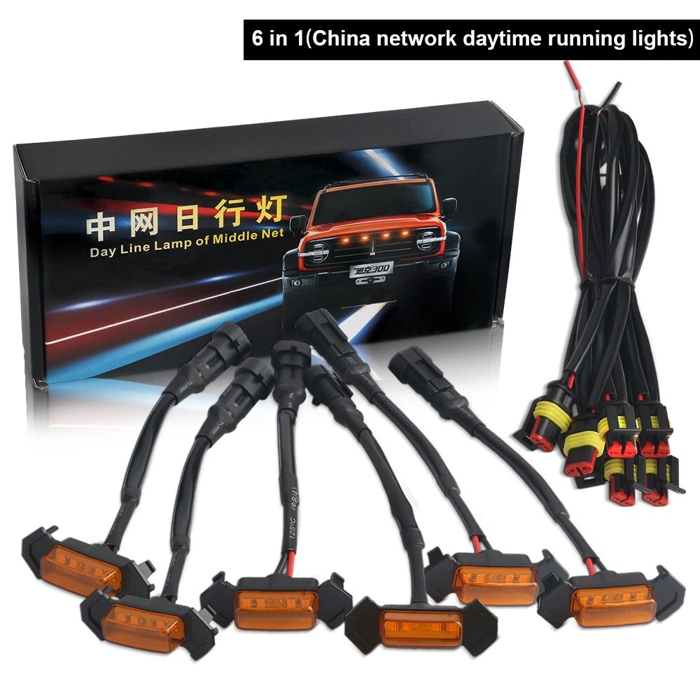 6pcs Raptor Style Amber Grille LED Light DRL For Toyota Tacoma TRD Pro 2016-2021