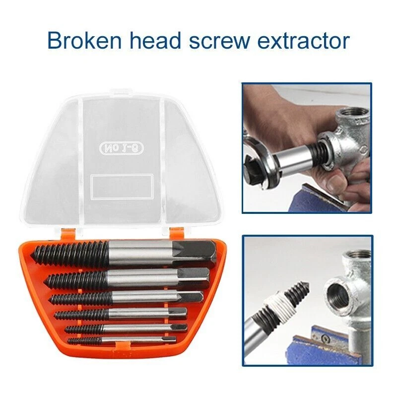Damaged Screw Extractor Get It Out Drill Bits 6 PCS Tool Set Broken Bolt Remover Premium Material: Our screw extractor is made of high quality bearing steel, surface hardening, making it more durable. With box packaging: 6 sets of screw extractors, size: 1 # / 2 # / 3 # / 4 # / 5 # / 6 #, different sizes can perfectly remove all damage, broken, rusty thread head And bolts. Our screw extract is equipped with a significant red storage box. You don't need to worry about the next time you don't find a single extractor. Simply put the box in a fixed toolbox. Widely used: It can be widely used in home maintenance, cars or mechanical maintenance. It applies to most of the broken bricks stored in the market, and has been applied to most electric hand-rotated universal chucks. Save money: Practical screwdrivers and extraction kits that can be placed in the garage or toolbox. It is a must-have repair tool for each family. When the family needs to fix some things, it can be used directly instead of going to an expensive repair shop. Warm Tips: It is recommended that you use electric manual rotation during use, and then perform at a low speed during use until the break screw is removed. Specifications: Name: Broken Bolt Extractor Material: High Carbon Steel Purchase Options: 6Pcs Applicable To: Removing All Kinds Of Broken Head Bolts And Screws; For Home, Office, Etc. Maintenance. Package Includes: 6Pcs:1#/2#/3#/4#/5#/6#