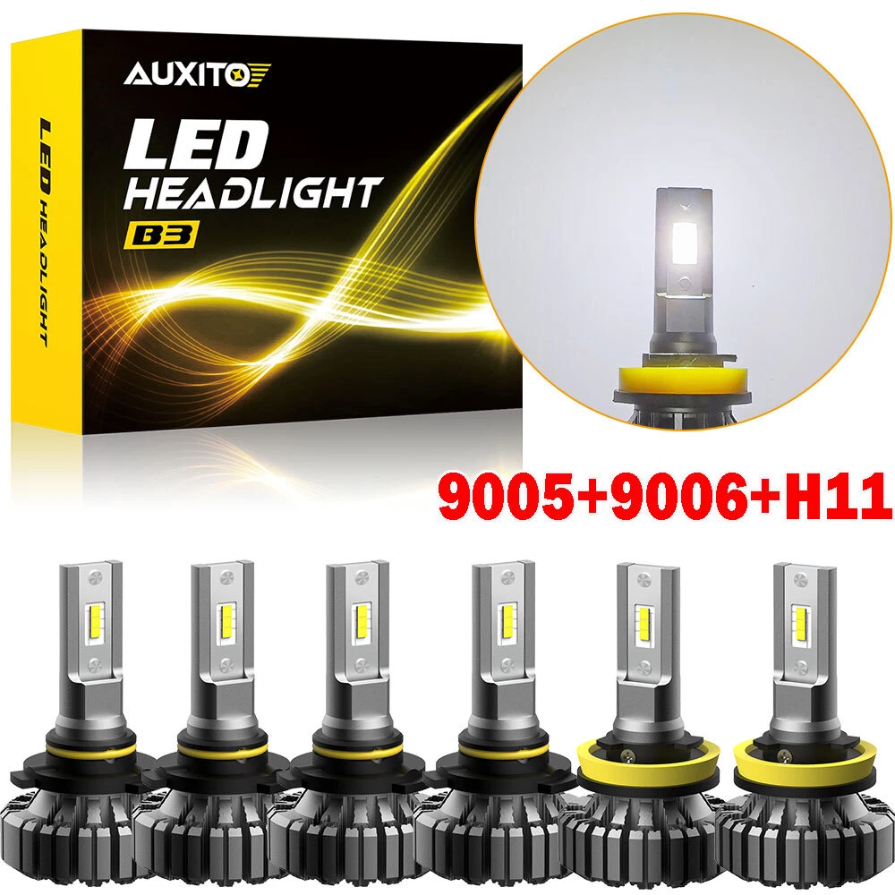Features: -Lower power consumption, More lighting effect 36W/pair, 24000LM/pair. The B3 series was upgraded from CSP Y19 chip to CSP Y22 chips on each side to provide more lighting effects in lower power consumption. It can be 300% brighter than your factory halogen bulb and more lighting effect in 36 wattages (per set). -360° adjustable extremely beam pattern 6x 9005 9006 LED H11 Headlight High Low Beam Bulbs 6500K Head Fog Lights EOOH Features: -Lower power consumption, More lighting effect 36W/pair, 24000LM/pair. The B3 series was upgraded from CSP Y19 chip to CSP Y22 chips on each side to provide more lighting effects in lower power consumption. It can be 300% brighter than your factory halogen bulb and more lighting effect in 36 wattages (per set). -360° adjustable extremely beam pattern The mounting collar of the bulb can be softly adjusted to fit different headlight housing with different angles. The light pattern could be easily adjusted and looks just like a halogen one but is brighter and clearer in an LED platform. The beam pattern is set correctly by default but it's free to adjust by rotating the back of the cooling fan. There are zero dark spots and the pattern is focused to near perfection. -Noiseless & Efficient Cooling System AUXITO B3 series without fans at the bottom of led bulbs, which provides you a quiet driving environment and does not affecting the heat dissipation of the lights. Whole aviation aluminum body, unique hollow-carved heat sink design with Intelligent IC make sure the LED conversion kits last longer. Specifications: Model: 9005/HB3/9145/9140 & 9006/HB4 & H11/H8/H9 Voltage: DC 9V-30V Color Temperature: 6500K Lifespan: 30,000 hours Waterproof Rate: IP67 Operating Temperature: -40??~+105?? Warranty: 2 years warranty Package Included: 2x H11 LED HeadLights Bulbs (Can be used as fog lights) 2x 9005 LED HeadLights Bulbs (Can be used as fog lights) 2x 9006 LED HeadLights Bulbs (Can be used as fog lights) Well Packaged in Retail Box Item Specifics Features : CANbus Compatible Bulb Fitment Code : H8/HB3 (9005)/HB4 (9006) Manufacturer Warranty : 2 Years Lifetime : 30,000hours OE/OEM Part Number : AUXITOLED Voltage : 12V-24V Fitment Type : Direct Replacement Lighting Technology : LED Suitable For : Headlight Lumens : 6500 lm To Fit : Headlight Model : AUXITO/9005/9006/H11/HEADLIGHT It also fits many other cars : As long as your bulb type is the same with this Interchange Part Number : 9005/HB3/9145/9140 & 9006/HB4 & H11/H8/H9 Color Temperature : 6500K Light Color : Cold White Number of Bulbs : 6 Placement on Vehicle : Front, Left, Right Waterproof Rating : IP67 Waterproof Brand : AUXITO Color : White Technology : LED Bulb Life Hours : Up to 30,000 Hours Type : LED Conversion Kit Model : AUXITO/9005/9006/H11/HEADLIGHT Payment (1) Instant PayPal payment is the preferred method of payment. (2) We also accept payment via PayPal, DebitCard, Visa, MasterCard, Discover. (3) We will only ship to the confirmed PayPal shipping address given with the payment. (4) If you want to ship to other address, please change your PayPal shipping address before you make payment. (5) To avoid initiating an unpaid item claim, please pay within 7 days. Shipping (1) We will ship your item(s) within 24 hours. (2) We ship this item to US usually via USPS first class mail. It usually takes 3-6 working days to deliver. Returns (1) We offer free return & money back guarantee. If you are not satisfied with your purchase for any reasons, you can return the item for refund or replacement/exchange. All returns must include the original packaging. (Please refer to our return policy for details.) (2) If you don't return goods within 60 days from date of purchase, your right to cancel will be revoked. Any items damaged because of incorrect installation will not be refunded. Please contact us for return or troubleshooting help prior to returning any products. (3) Unauthorized reselling of AUXITO products is strictly prohibited and we can't honor the warranty if purchasing from the unauthorized reseller. Contact Us [Our office hours are MONDAY - Saturday 9:00PM - 6:00PM PST, but we will response you once we get your message .There will be some delay on respons if you send message or E-Mail on Sundy.] (1).Negative feedback will not help resolve any problems you have, please contact us via eBay messages before leaving negative feedback, our customer service will make best effort to help you with the issues. (2).We maintain high standards of excellenceand strive for 100% customer satisfaction! Feedback is very important to us. We request that you contact us immediately BEFORE you give us neutral or negative feedback, so that we can satisfactorily address your concerns. FAQ Why swith to LED? LEDs not only give your vehicle a clean, modern look but, with proper use, will outlast any halogen bulb and HID bulb! Low energy draw, high lumen output, and instant on/off LED technology out shines stock bulbs in every way. Which bulbs are used in my vehicle? Check Sylvania automotive lamp replacemnt guide, you can select the year, make, and model of your vehicle, then select the application you want to replace or upgrade from stock. What does CAN Bus mean? CAN Bus means Controller Area Network Bus. This system monitors your vehicle and reports operating conditions. CAN Bus systems are commonly found in European vehicles such as BMW, Audi, Mercedes, Volkswagen, Porsche, and in many American vehicles. While most late model American vehicles have CAN Bus systems, it is always good to check with your vehicle dealer to see which system your vehicle has before purchasing electrical products. When do you need Warning Canceller? Some vehicles with cmplex internal computers(such as Audi,BMW,Jaguar,Mercedes,etc.) might report on-dash errors or flickering on the headlights. The warning canceller fixes the dashboard warning and flickering effect. Bulb Out Dashboard Error: On some vehicles, the dashboard will report as if you h