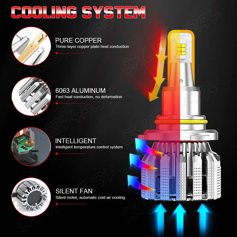 Product Parameters: Light source: 3570 Material: Aviation Aluminum Working Voltage: 9-23V Color temperature: 6000K Lumen: 8000LM Life: 50000 hours Working environment: -40℃~80℃ Waterproof grade: IP67 Product Performance: 1)SUPER BRIGHT 3570 LED CHIP 0.5mm thinnest LED spacing,the shorter the distance the better spotlight,super focused beam design,no dark spot. 2)ROTATABLE DESIGN Removable collar ring,you can now adjust the beam angle to a perfect one.Fit for 98% headlamp covers on market 3)COOLING SYSTEM,FOUR WAYS HEAT DISSIPATION Copper heat conduction;Evaporation from aviation aluminum;Polyhedral grid;Built-in turbo fan,silent and high speed. 4)IP67 WATERPROOF DESIGN For the most extreme conditions,with explosion-proof,shockproof,hign temperature hign pressure and other charateristics. 5)Small outer diameter, easy to install, high brightness, very concentrated, and fast heat dissipation. 6)Wider and further illumination areas than halogen lamp,300% brighter than traditional halogen lamps. 7)White light source, easy to accept by human eyes, will not feel tired Package Included: 2x LED 9005/HB3 headlight bulbs high beam 2x LED 9006/HB4 headlight bulbs low beam 2x LED 5202/H16 foglight bulbs New and old packaging will be shipped randomly Notice: 1.The product must be installed by professionals. Please disconnect the car battery before installation. Please check the wiring after installation. 2.Please reserve enough space in the headlight housing for installtion and heat dissipation. All our products are manufactured under the strictest quality control. If the project is not functioning properly, please contact us by email first. If you have any questions, please contact us in time.
