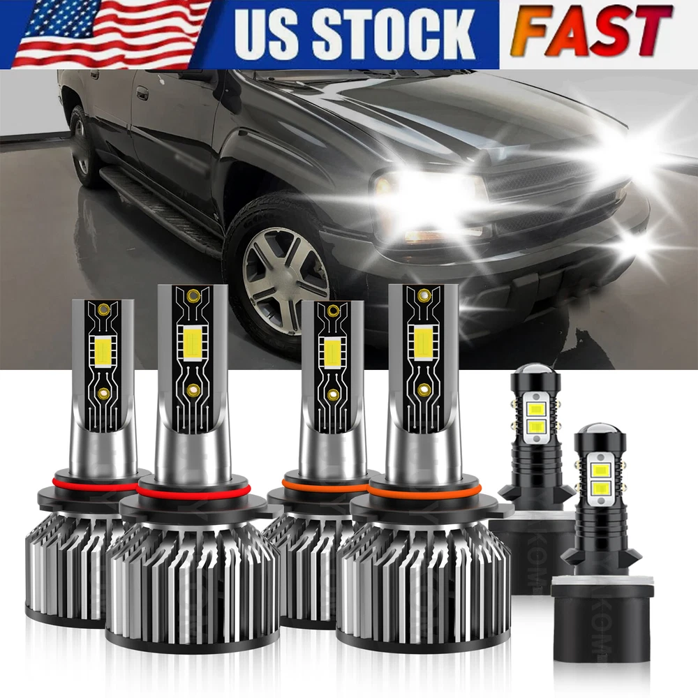 6x LED Headlight Hi/Low Beam+Fog Light Bulbs For Chevy Trailblazer EXT 2002-2006