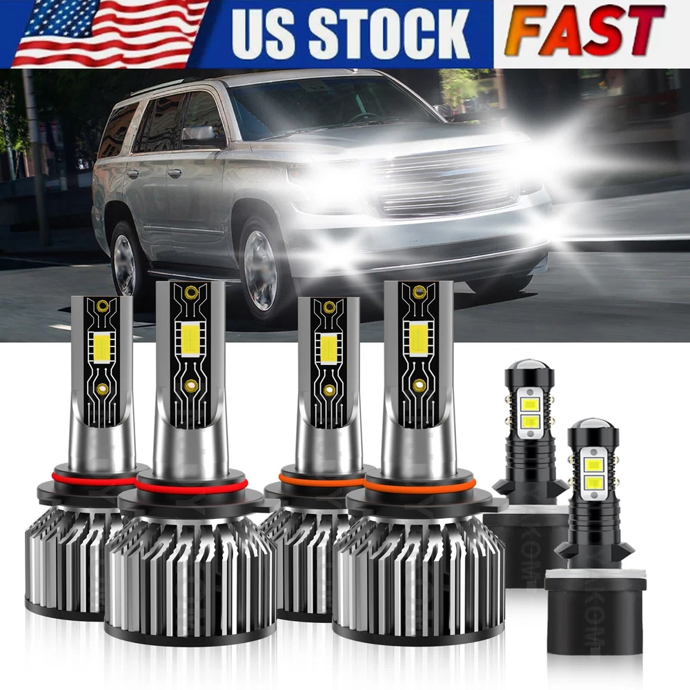 6x LED Headlight High Low+Fog light Bulbs kit For Chevrolet Tahoe 2000-2006