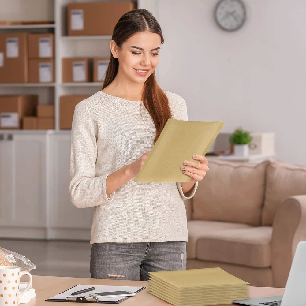These kraft bubble mailers are fantastic—sturdy, reliable, and perfect for shipping small items. The self-sealing adhesive works great in any weather, and the bubble padding keeps contents safe. The smooth surface makes labeling easy, and the natural brown color gives them a clean, professional look. Highly recommend for anyone needing durable, affordable shipping envelopes!