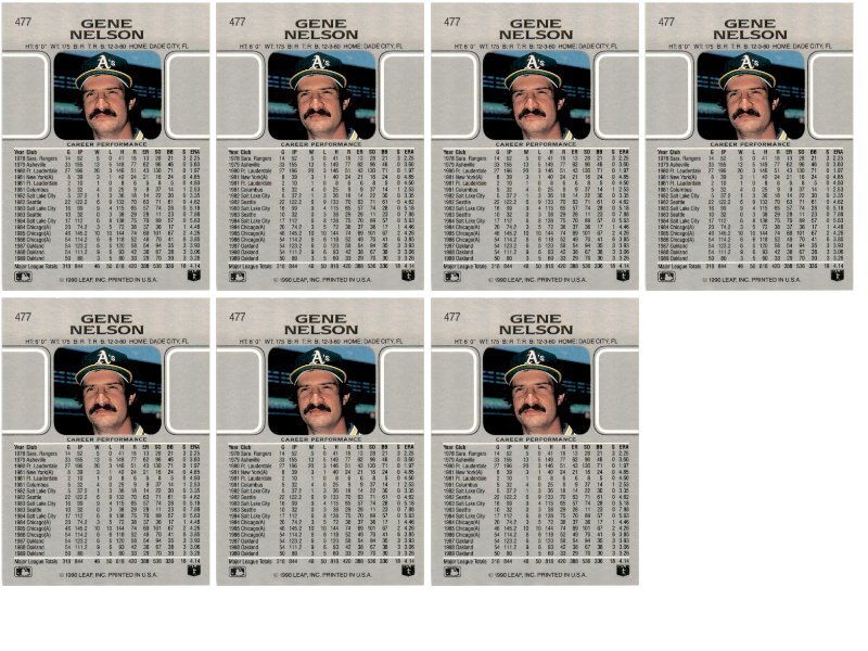 (7) 1990 Leaf #477 Gene Nelson Oakland Athletics Card Lot Condition: NM-MT